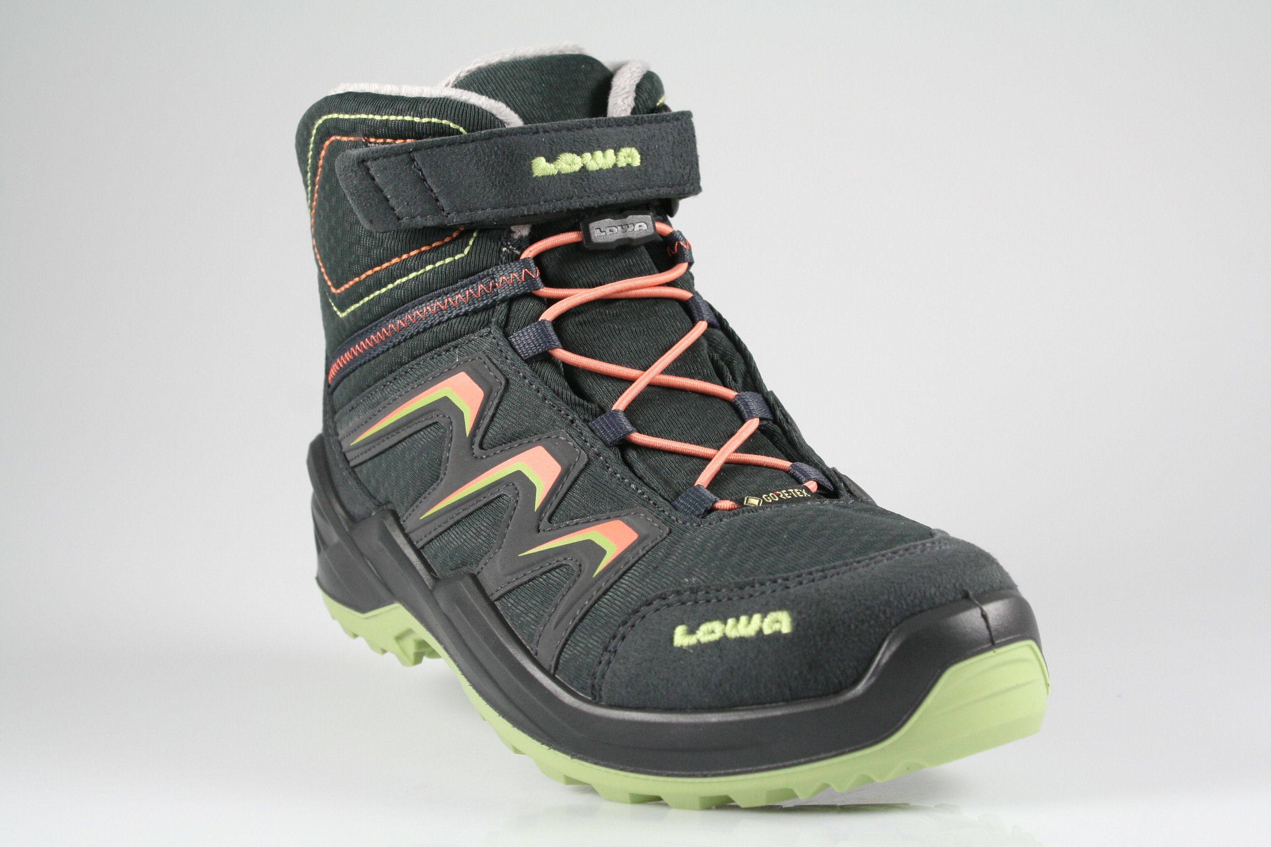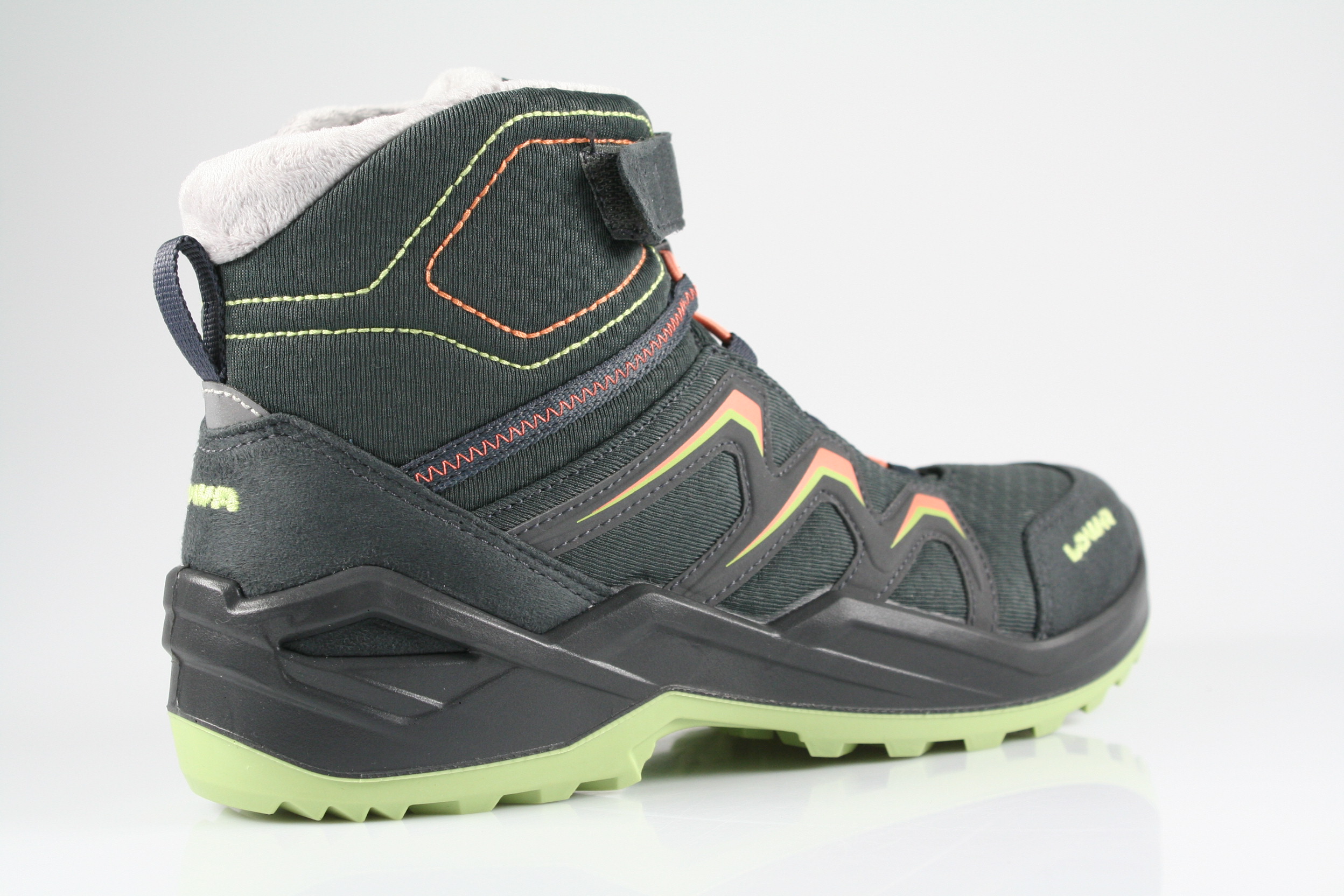 Typ: Boots; Farbe "graphit/mint"; Ausstattung:; - Obermaterial: Leder, Synthetik; - Warmfutter; - herausnehmbares Fußbett; - leichte Laufsohle; - gepolsterter Schaftrand; - Klettverschluss zur Weitenregulierung; - wasserfest durch "GoreTex"-Membrane