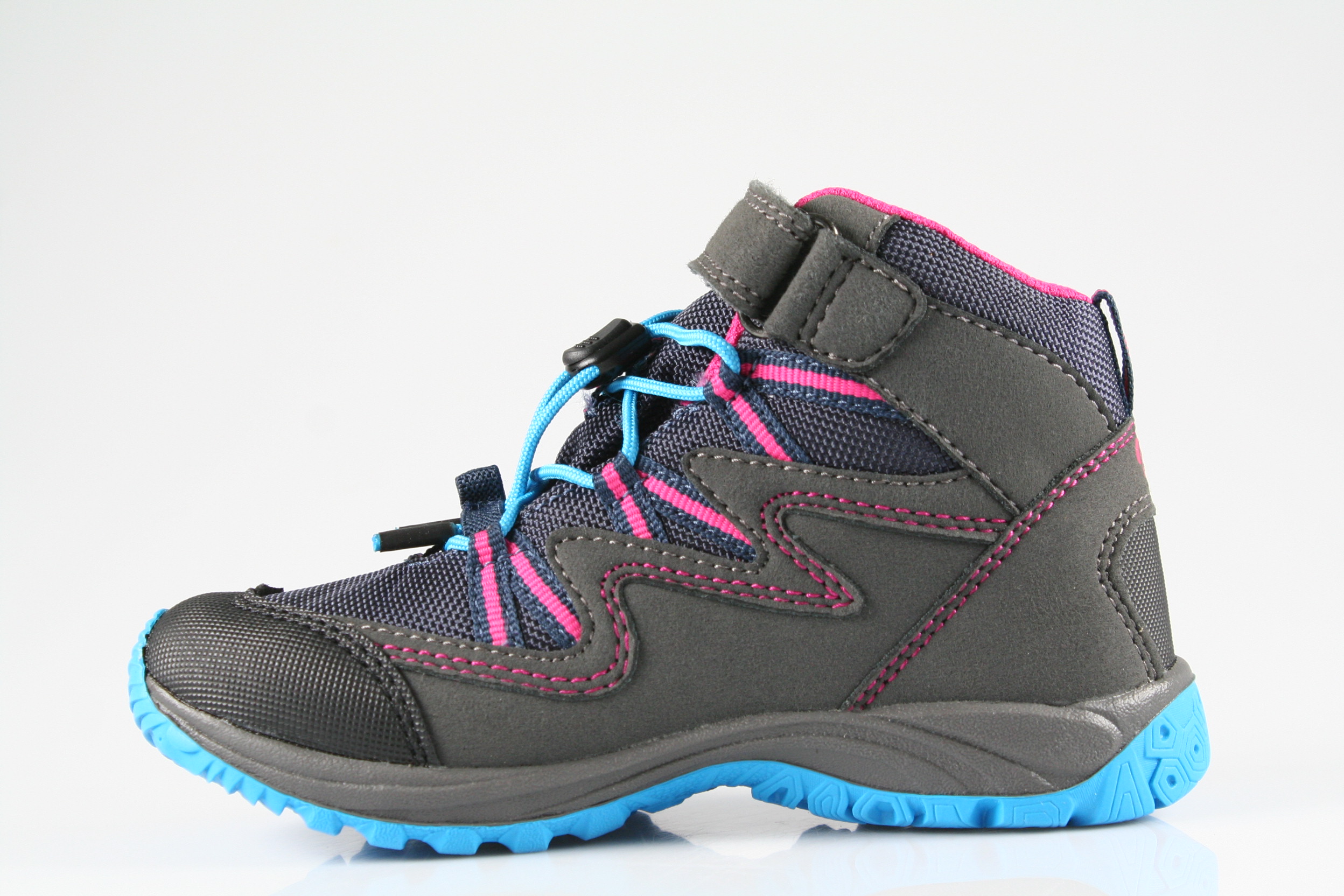 Typ: Boots; Farbe "grau/türkis/pink"; Ausstattung:; - Obermaterial: Synthetik; - herausnehmbares Fußbett; - flexible Laufsohle; - gepolsterter Schaftrand; - Klettverschluss und Gummizug zur Weitenregulierung; - wasserfest durch "ComforTex"-Membrane