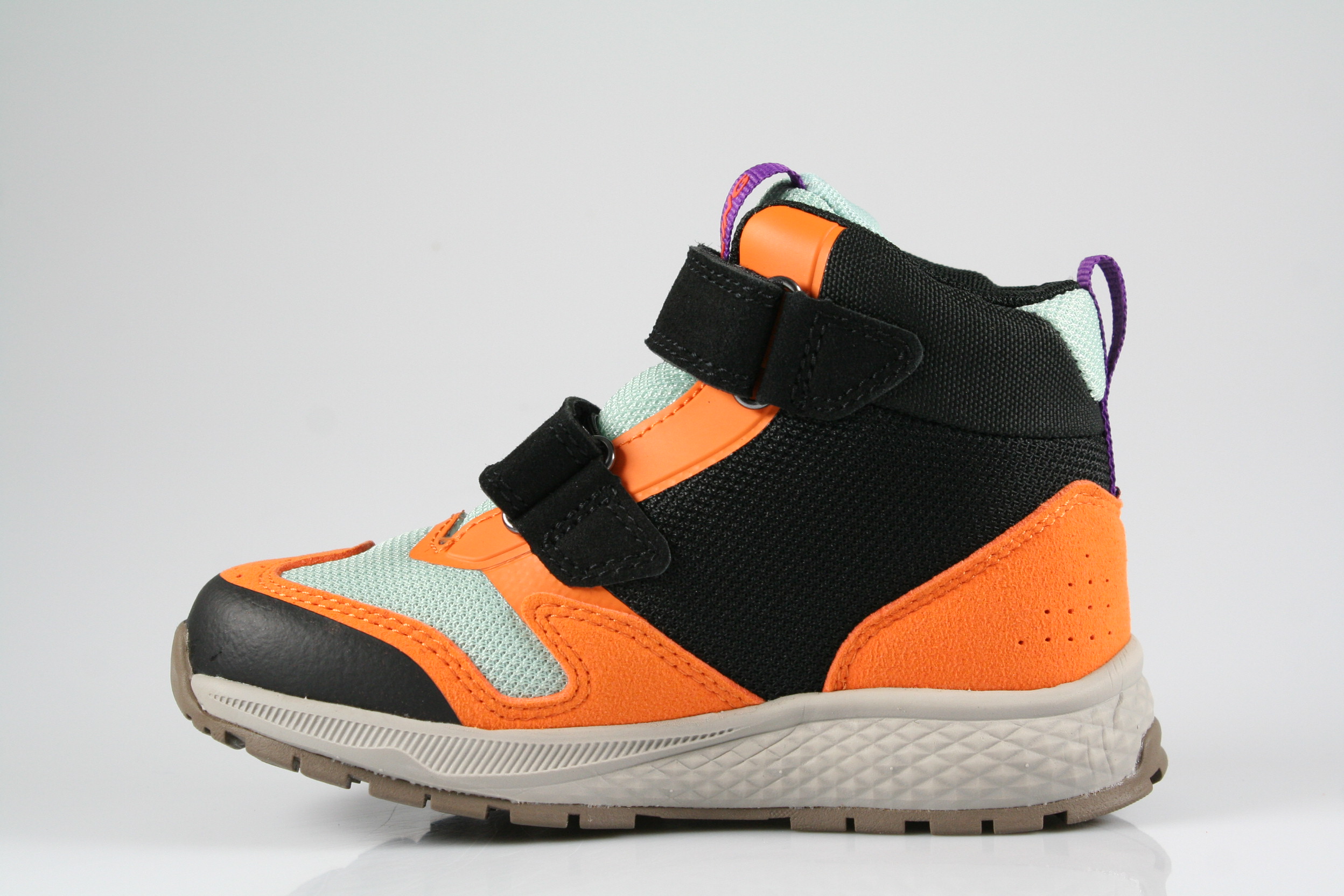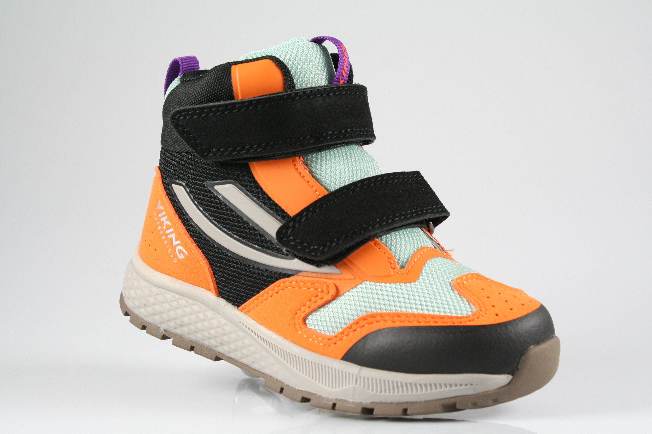 Typ: Boots; Farbe "black/orange"; Ausstattung:; - Obermaterial: Synthetik, Mesh; - herausnhembares Fußbett; - leichte Laufsohle; - gepolsterter Schaftrand; - Klettverschluss zur Weitenregulierung; - wasserfest