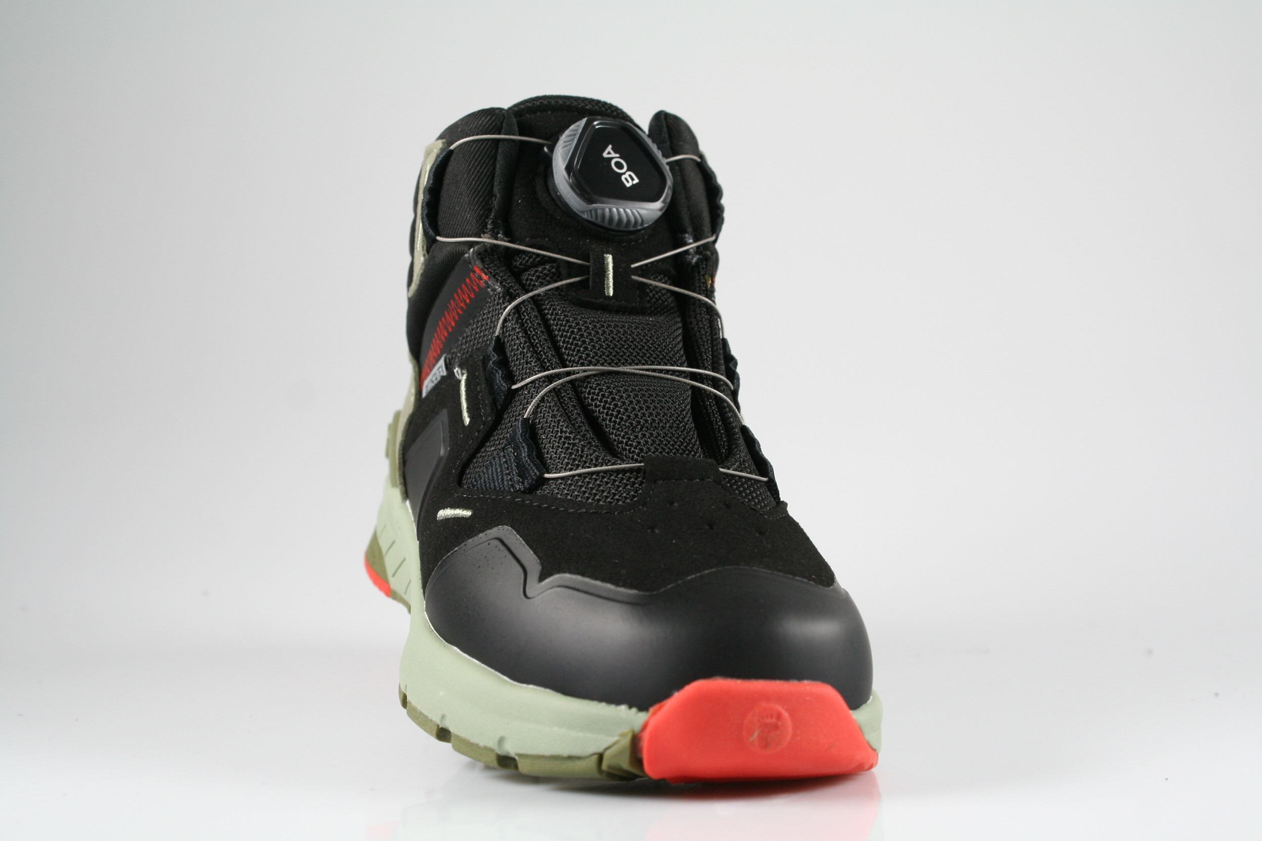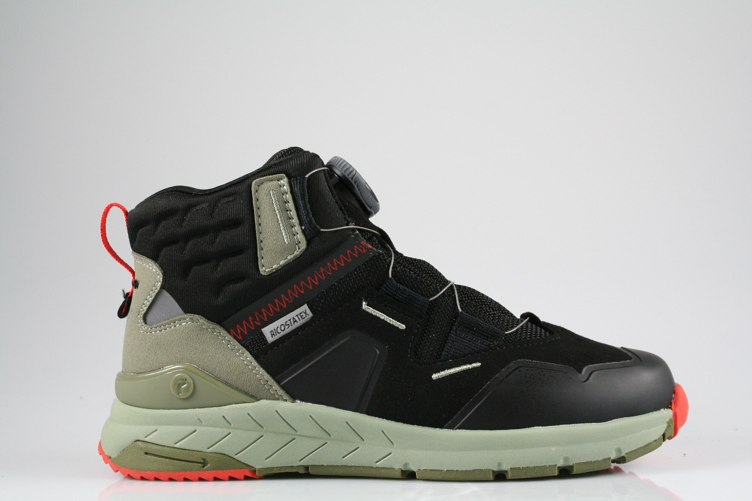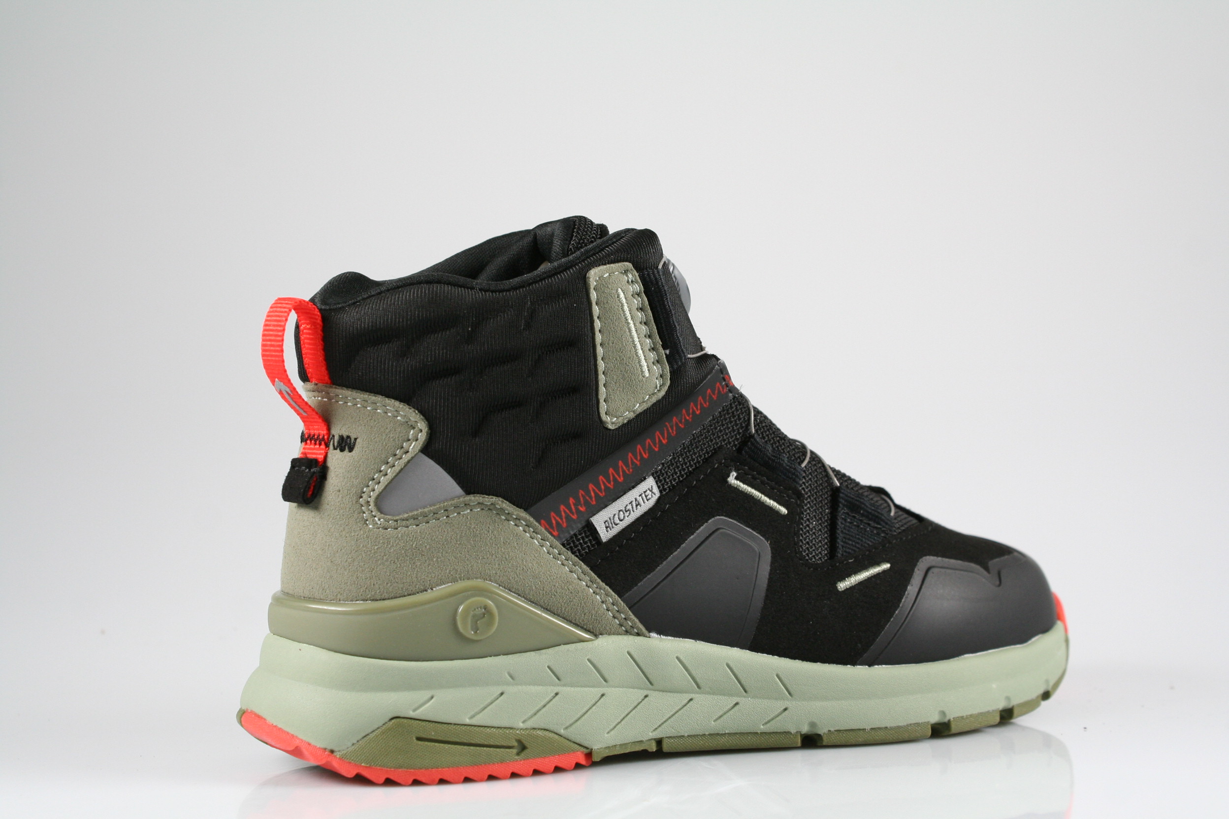 Typ: Boots; Farbe: "schwarz/rot"; Ausstattung:; - Obermaterial: HighTech; - atmungsaktives Futter; - herausnehmbares Fußbett; - leichte, flexible Laufsohle; - gepolsterter Schaftrand; - BOA-Drehverschluss; - wasserfest durch "Ricosta-Tex"-Membrane; - Modell "Shock"; - Weite "mittel"