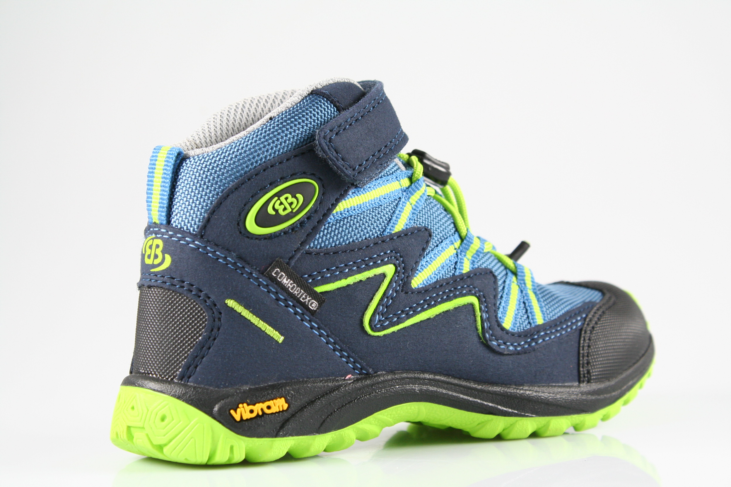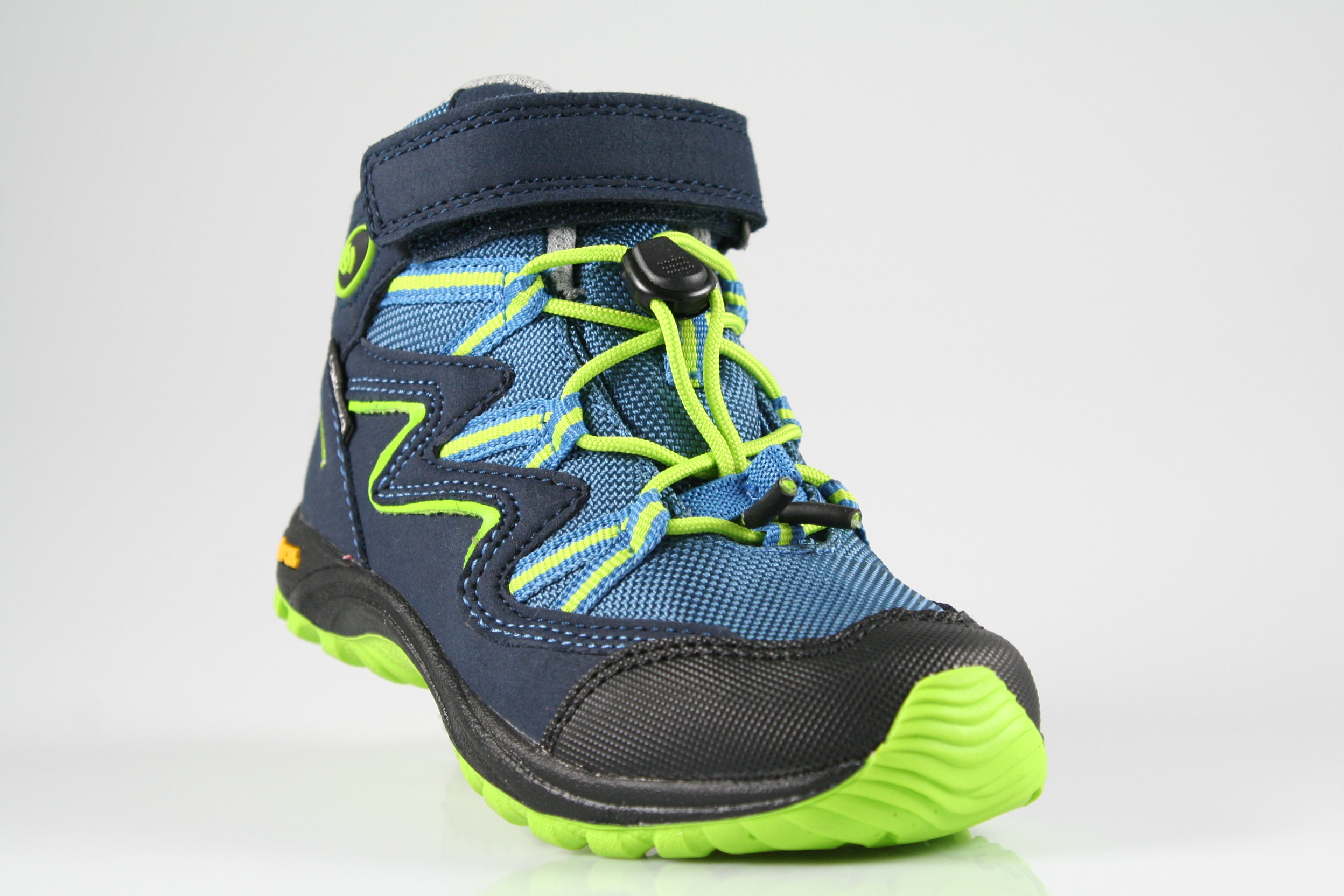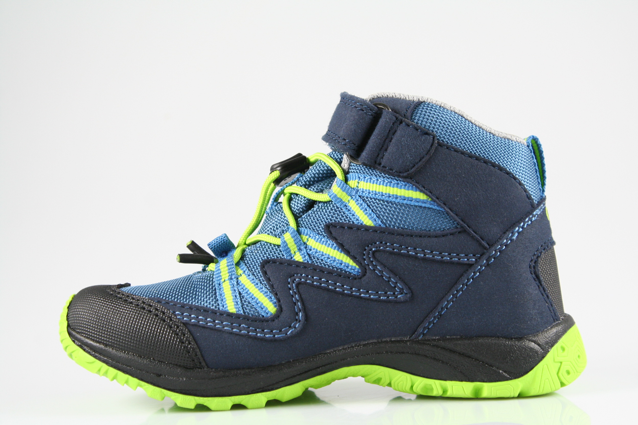 Typ: Boots; Farbe "marine/blau/lemon"; Ausstattung:; - Obermaterial: Synthetik; - herausnehmbares Fußbett; - leichte Laufsohle; - gepolsterter Schaftrand; - Klettverschluss und Gummizug zur Weitenregulierung; - wasserfest durch "ComforTex"-Membrane