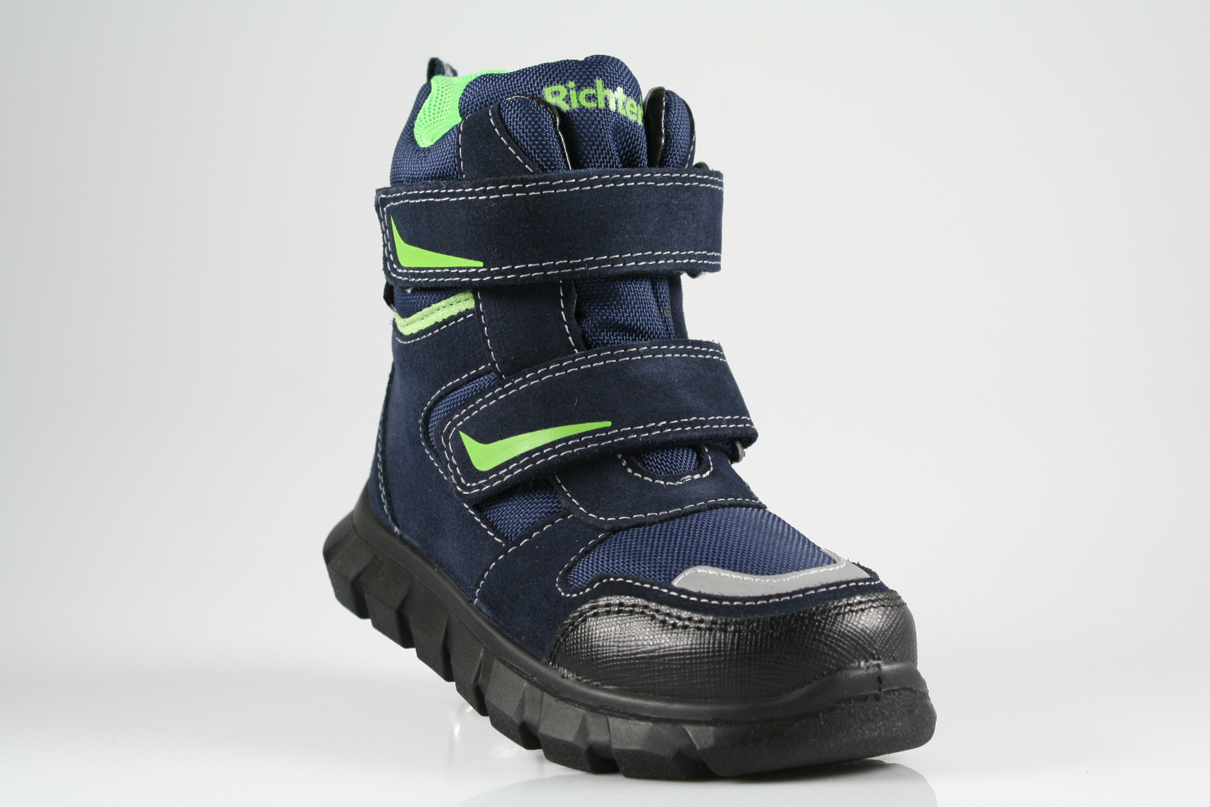 Typ: Boots; Farbe "atlantic/apple/black"; Ausstattung:; - Obermaterial: Velourleder, Mesh; - Warmfutter; - weiches Fußbett; - leichte Laufsohle; - gepolsterter Schaftrand; - Klettverschluss zur Weitenregulierung; - wasserfest durch "SympaTex"-Membrane