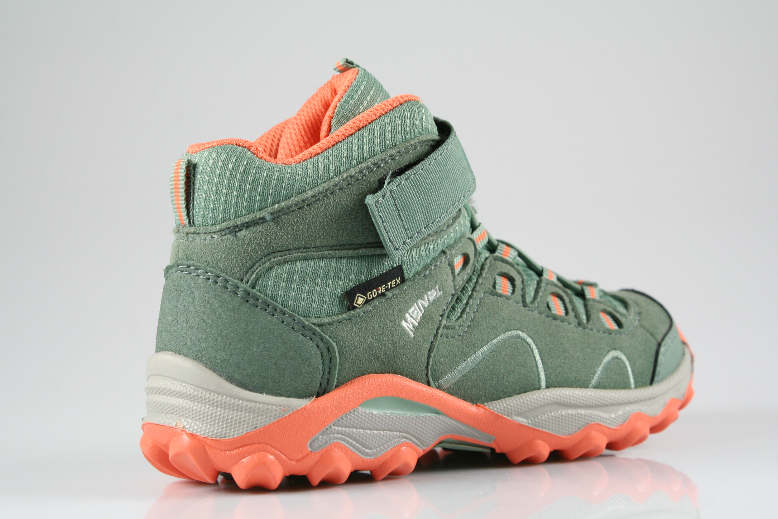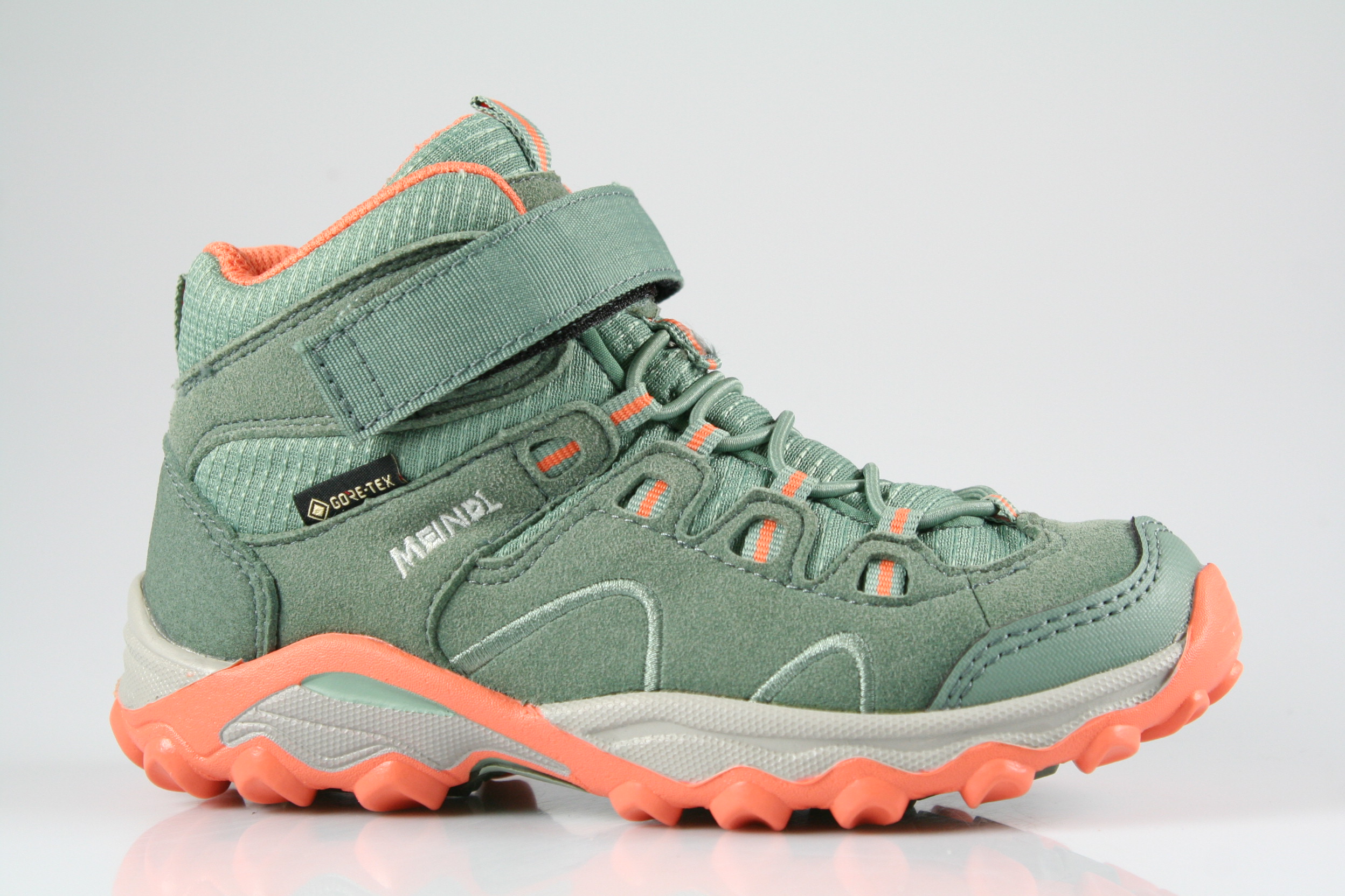 Typ: Boots; Farbe "linde/orange"; Ausstattung:; - Obermaterial: Velourleder, Mesh; - herausnehmbares Fußbett; - flexible Laufsohle; - gepolsterter Schaftrand; - Klettverschluss zur Weitenregulierung; - wasserfest durch "GoreTex"-Membrane