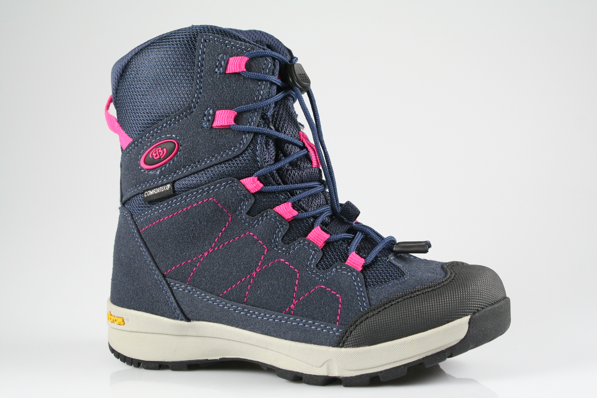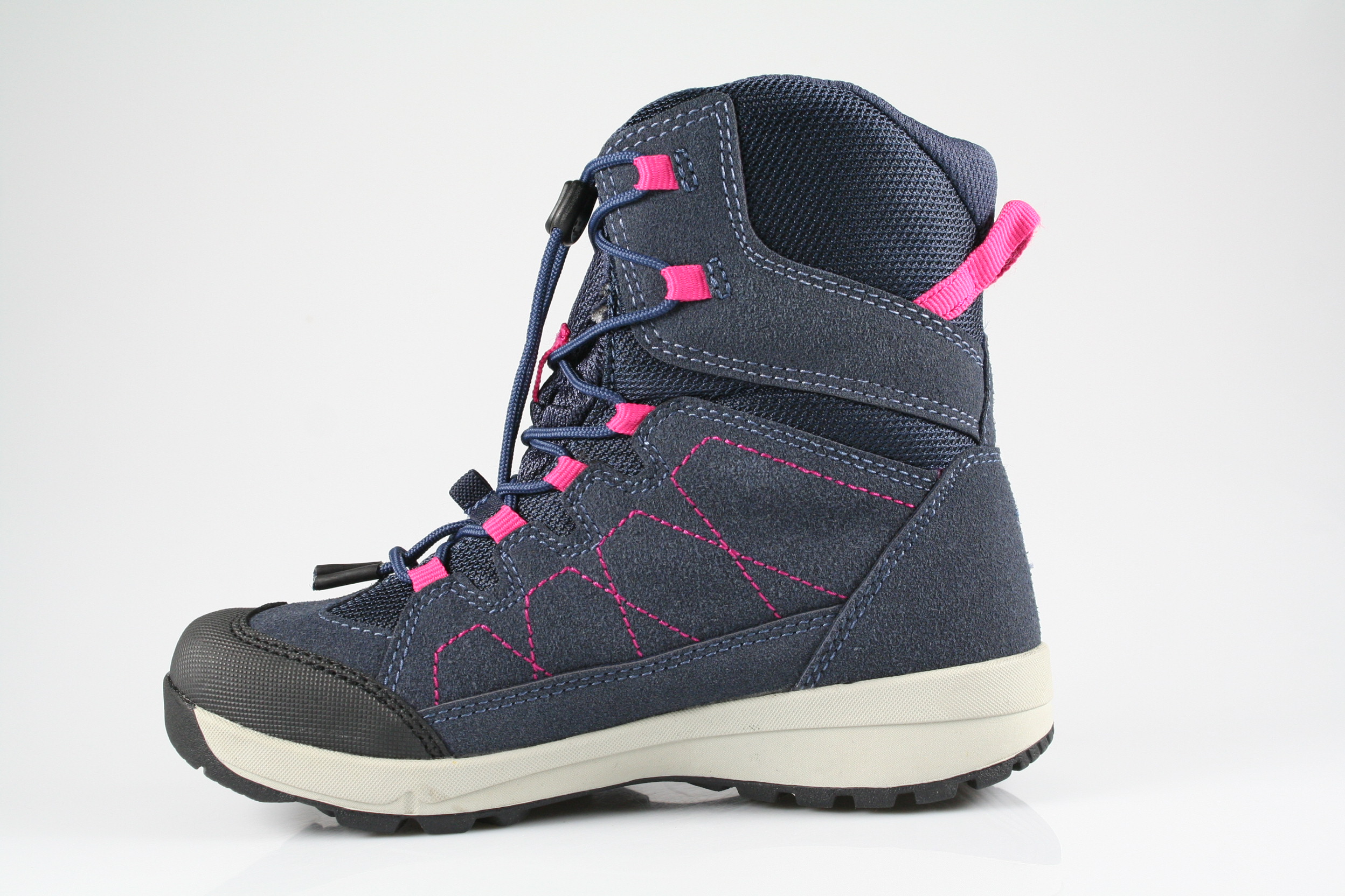 Typ: Boots; Farbe "marine/pink"; Ausstattung:; - Obermaterial: Synthetik; - Warmfutter; - herausnehmbares Fußbett; - leichte Laufsohle; - gepolsterter Schaftrand; - Gummizug zur Weitenregulierung; - wasserfest durch "ComforTex"-Membrane
