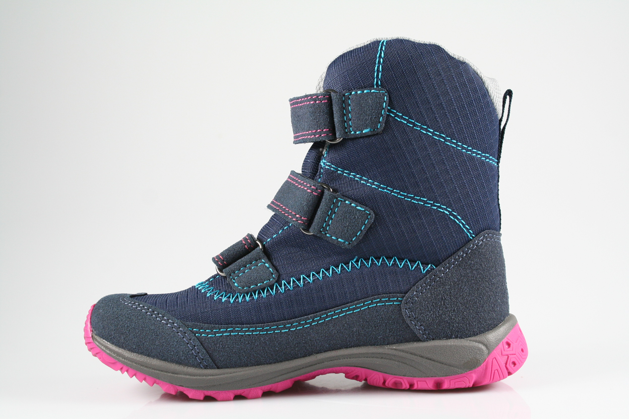 Typ: Boots; Farbe "marine/pink/türkis"; Ausstattung:; - Obermaterial: Leder, Synthetik; - Warmfutter; - herausnehmbares Fußbett; - superleichte Laufsohle; - wasserfest durch "Comfortex"-Membrane; - gepolsterter Schaftrand; - Klettverschluss