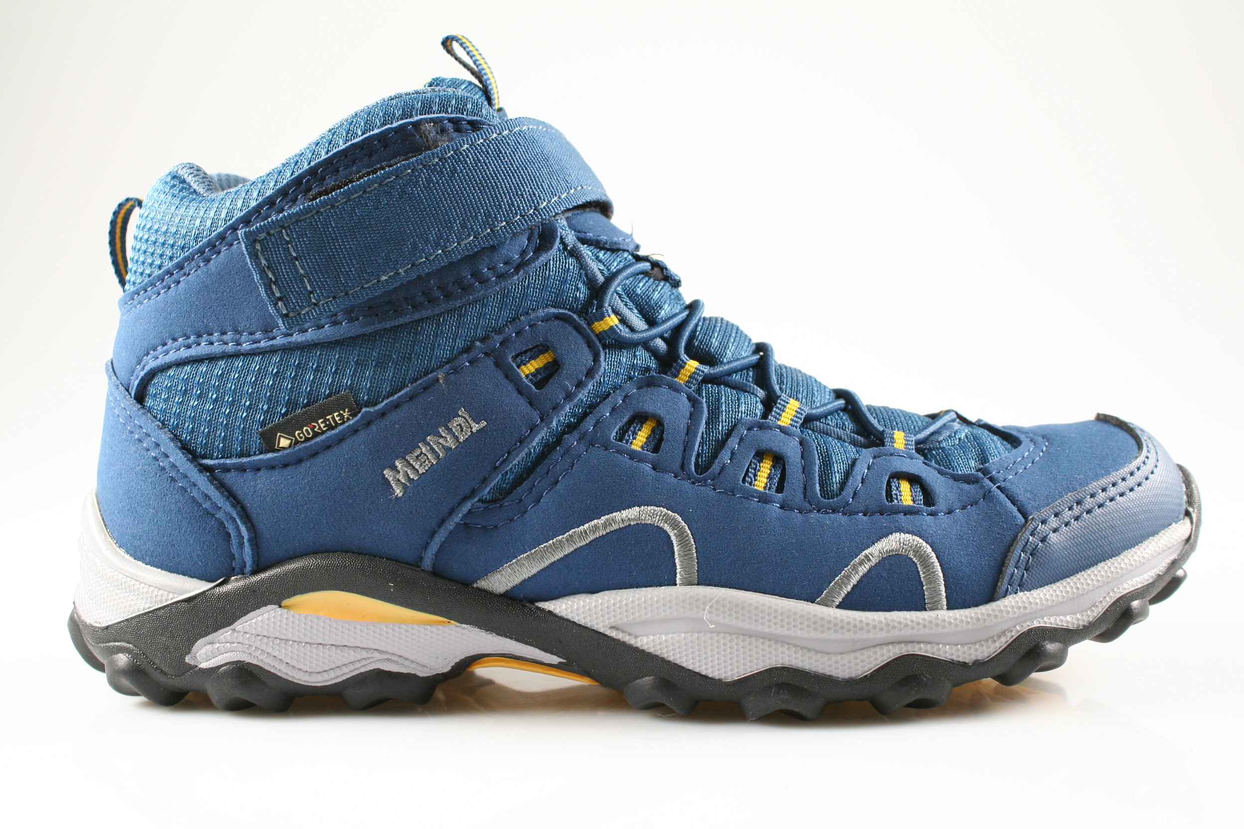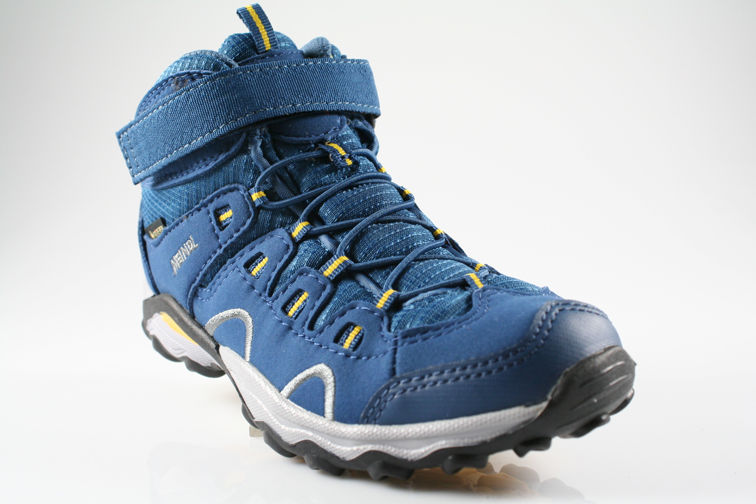 Typ: Boots; Farbe "octane/mais"; Ausstattung:; - Obermaterial: Velourleder, Mesh; - Funktionsfutter; - herausnehmbares Fußbett; - flexible Laufsohle; - gepolsterter Schaftrand; - Klettverschluss zur Weitenregulierung; - wasserfest durch "GoreTex"-Membrane