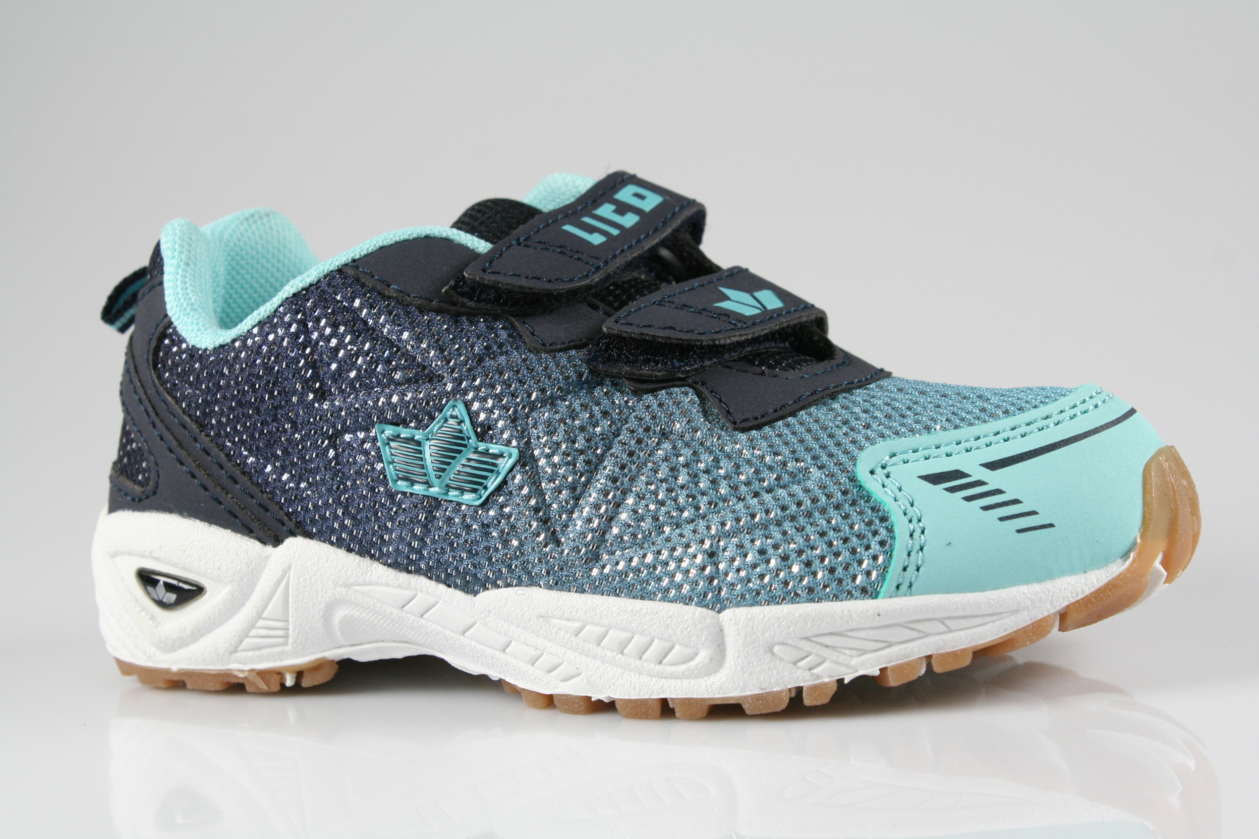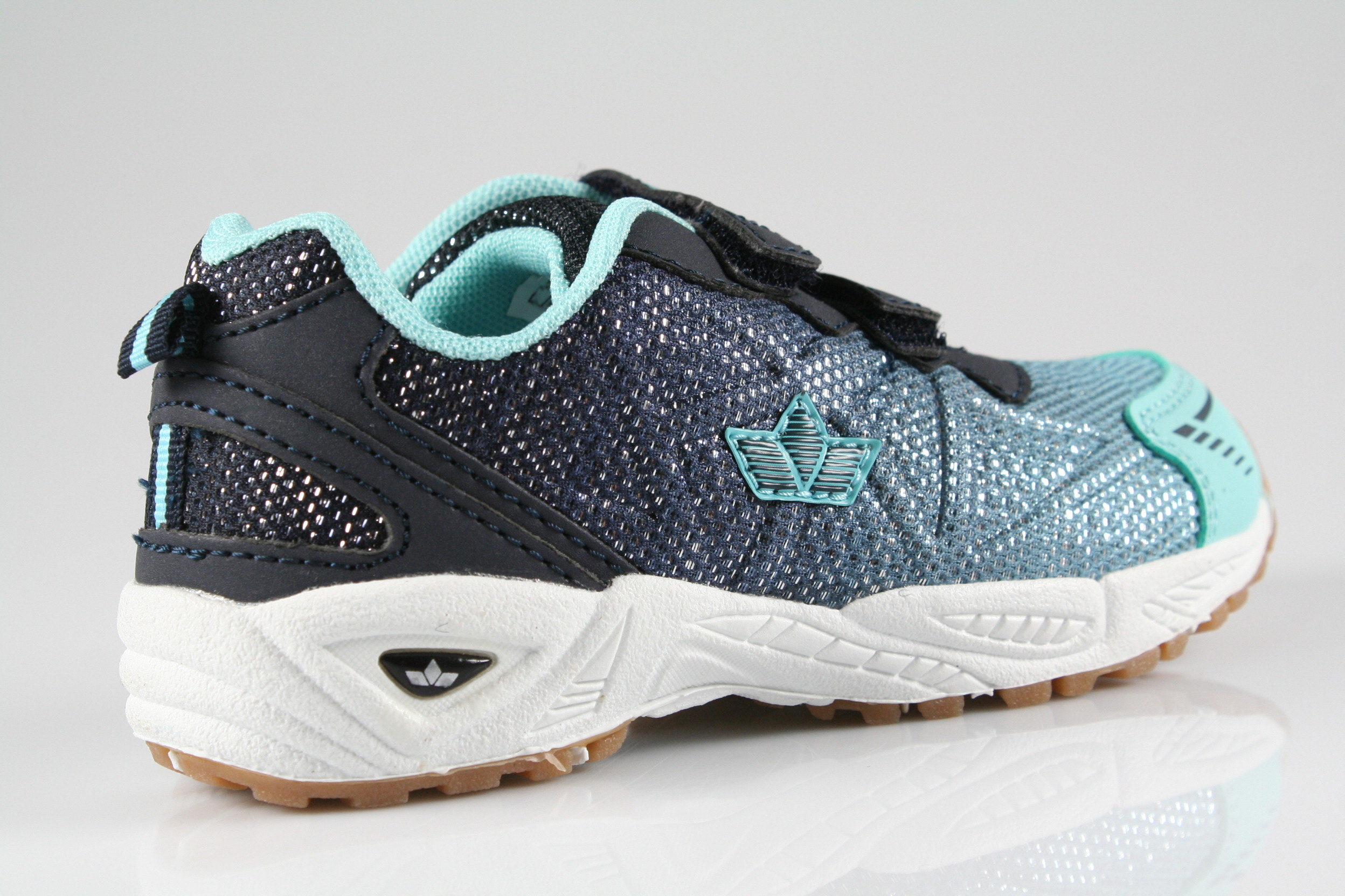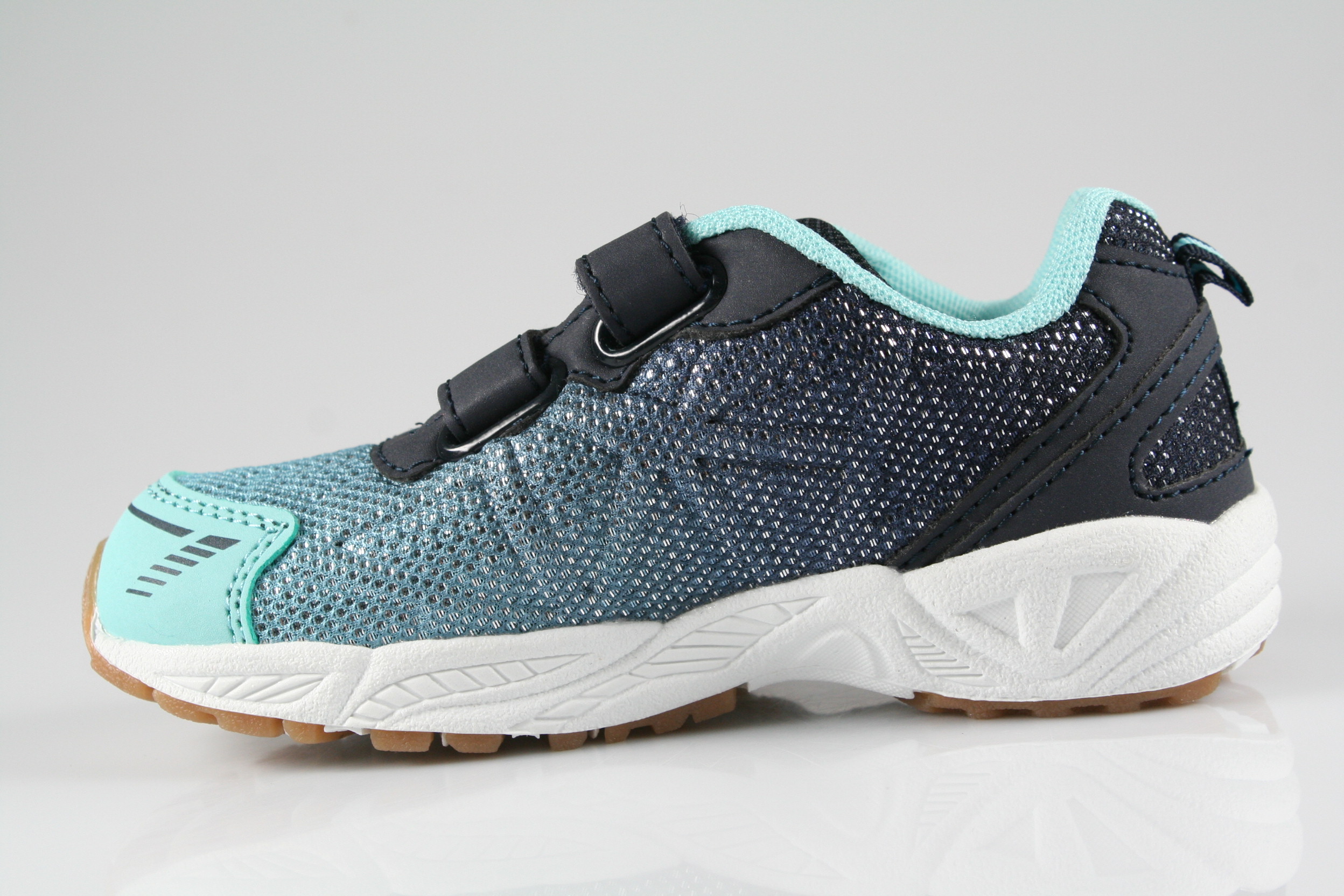 Typ: Turnschuh; Farbe "marine/türkis"; Ausstattung:; - Obermaterial: Synthetik; - atmungsaktives Futter; - herausnehmbares Fußbett; - rutschfeste Gummisohle; - gepolsterter Schaftrand; - Doppelklette zur Weitenregulierung