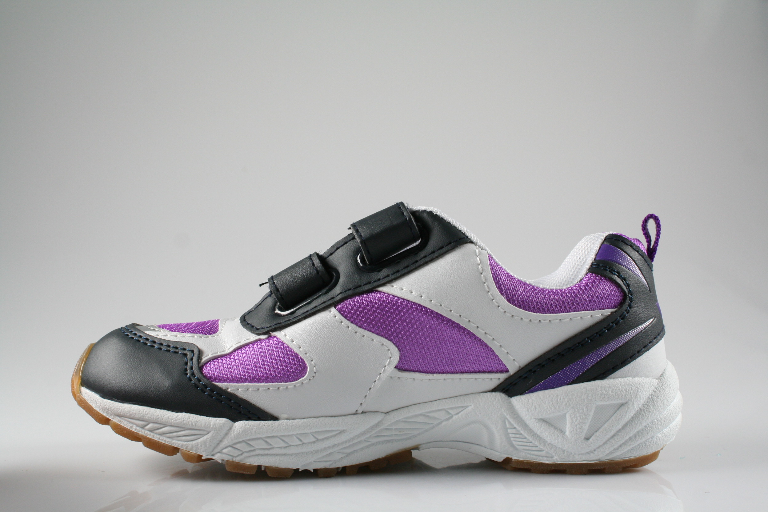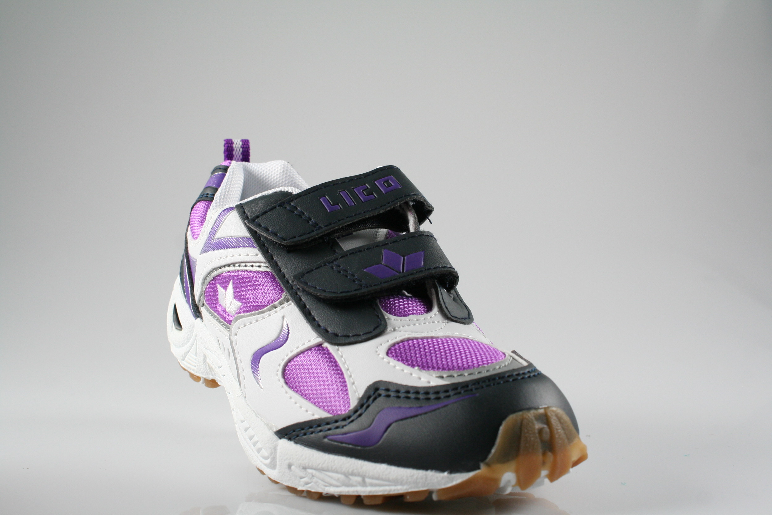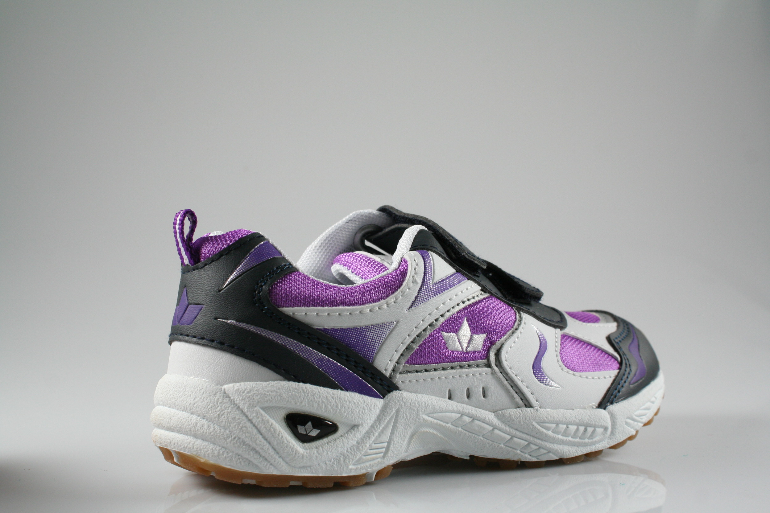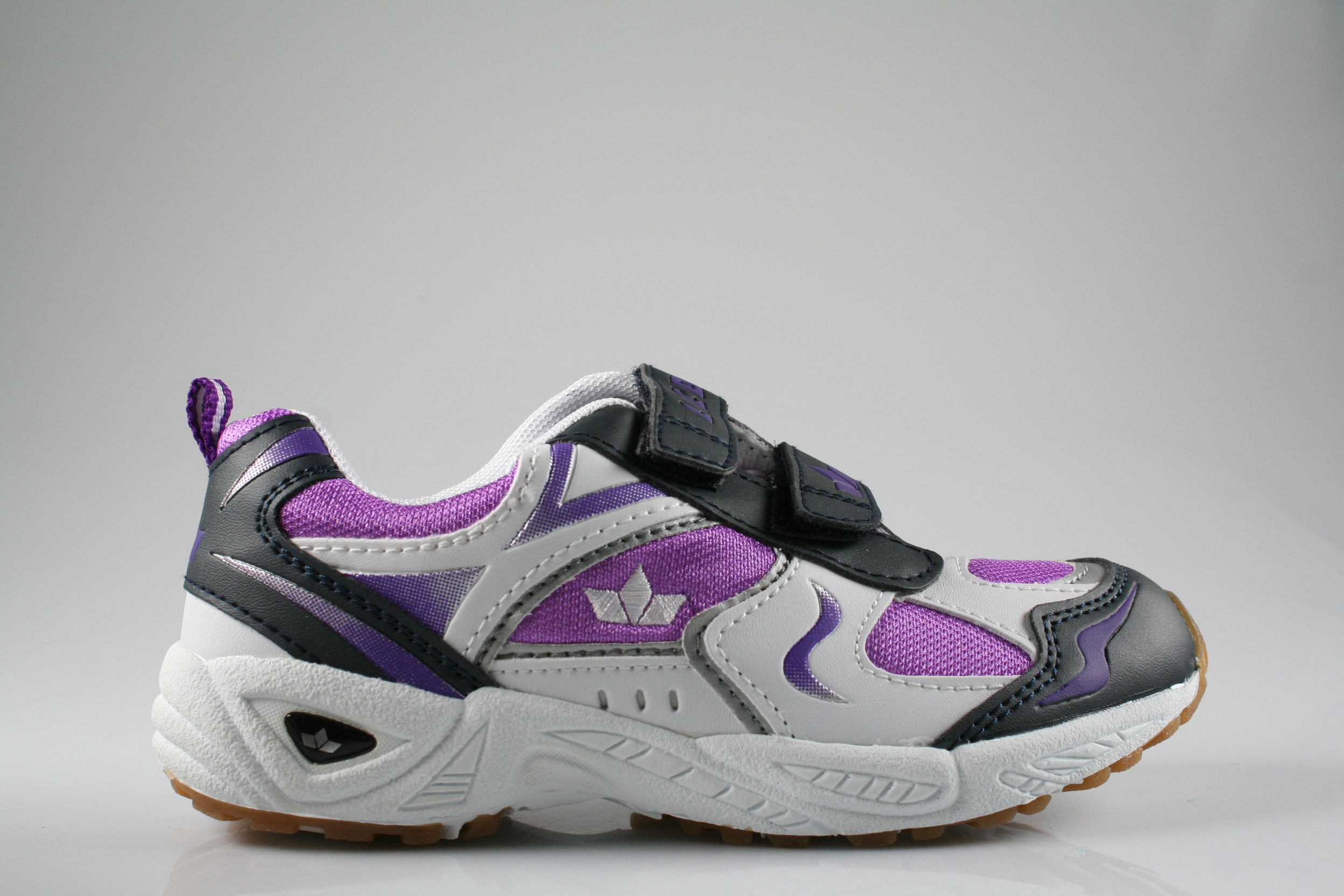 Typ: Hallenturnschuh; Farbe: "weiss/lila/marine"; Ausstattung:; - Obermaterial: pflegeleichtes Synthetik; - herausnehmbare Decksohle; - Doppelklette; - flexible Laufsohle; - Modell "Bob V"