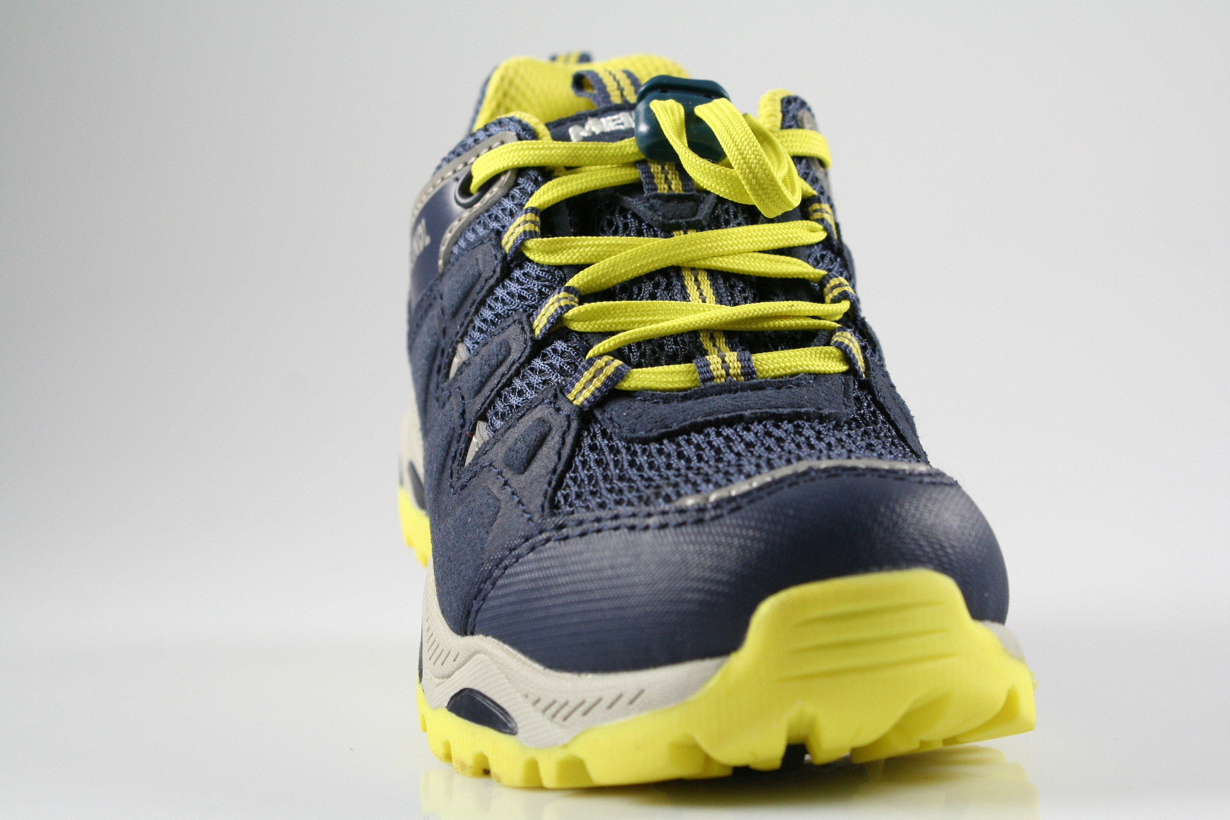 Typ: Halbschuh Outdoor; Farbe: "marine/gelb"; Ausstattung:; - Obermaterial: Leder, Synthetik/Mesh; - atmungsaktives Futter; - herausnehmbares Fußbett; - robuste Laufsohle mit Profil; - gummierte Vorderkappe; - gepolsterter Schaftrand; - Schnürsenkel mit Stopper;