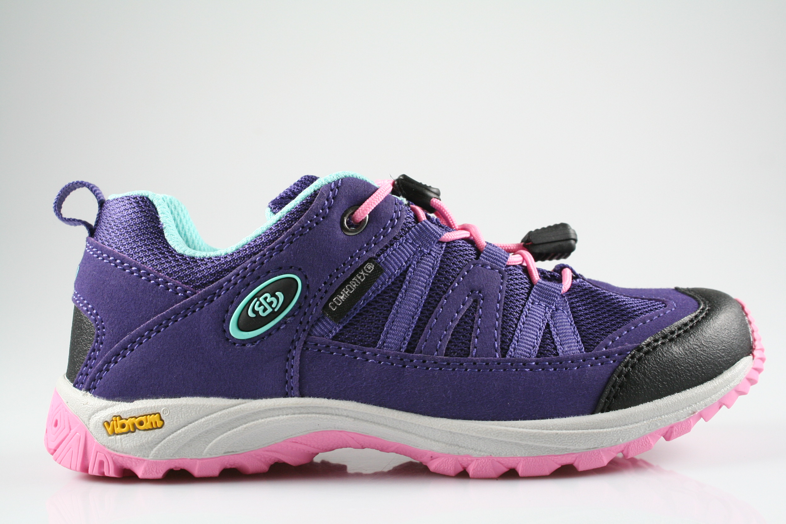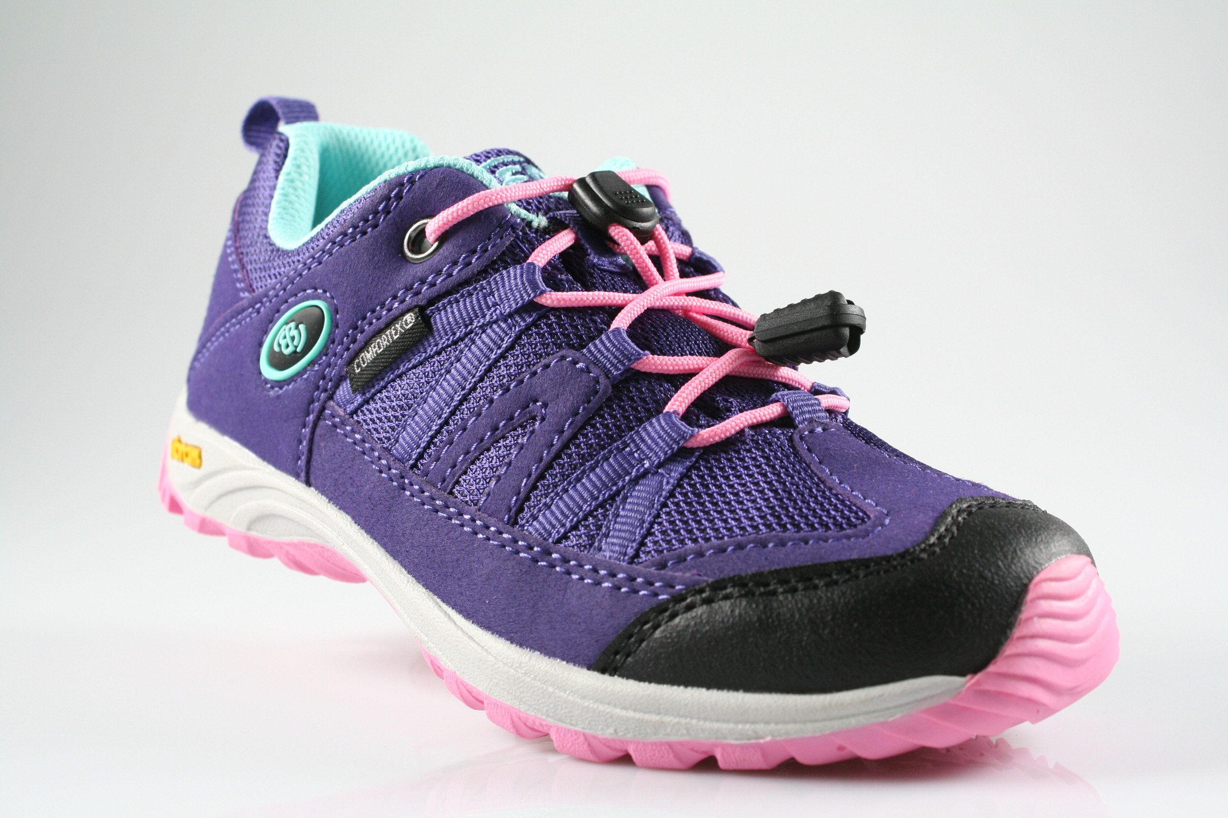 Typ: Halbschuh; Farbe "lila/rosa/türkis"; Ausstattung:; - Obermaterial: Synthetik; - herausnehmbares Fußbett; - leichte Laufsohle; - gepolsterter Schaftrand; - Gummizug zur Weitenregulierung; - wasserfest durch "ComforTex"-Membrane
