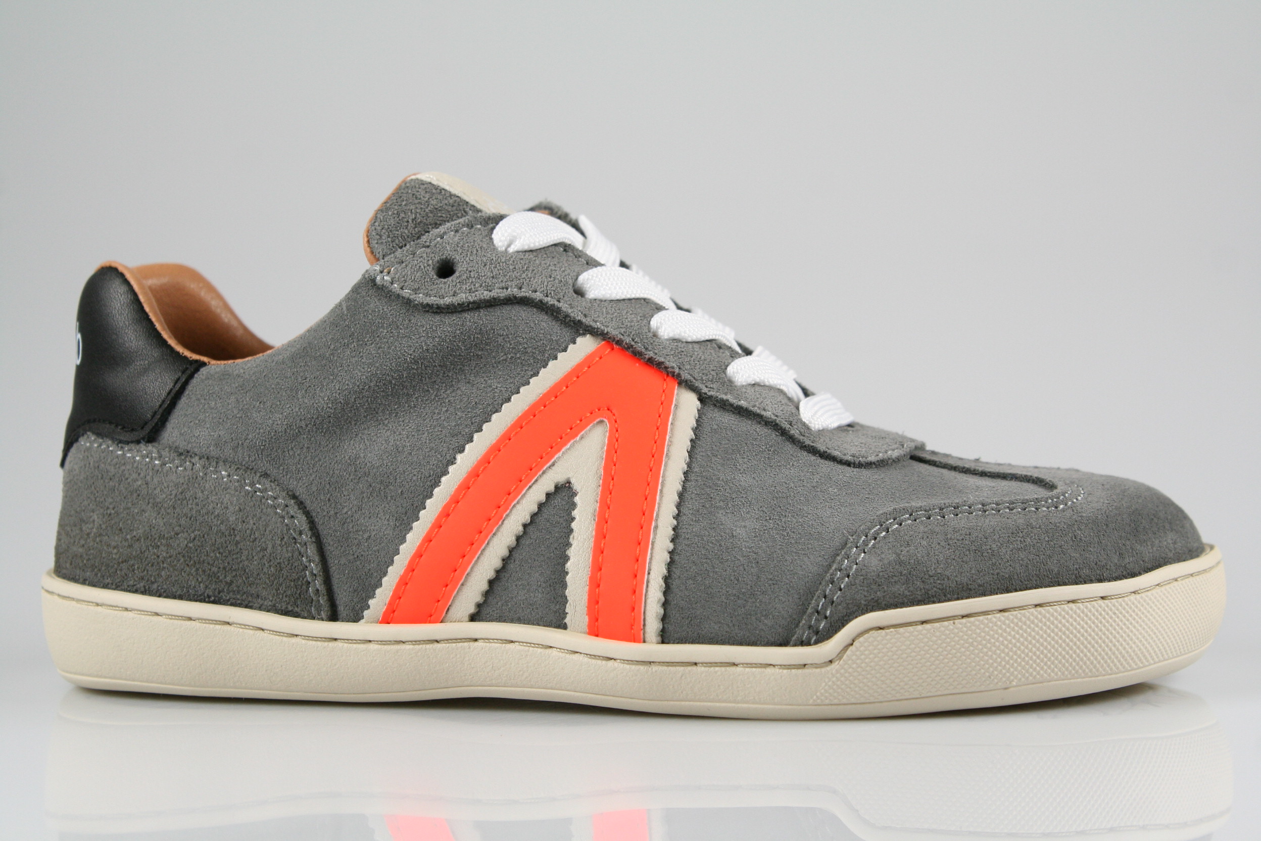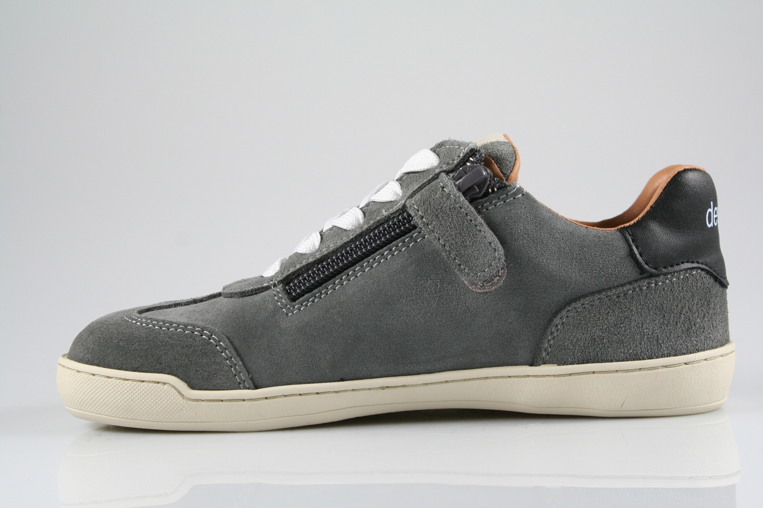 Typ: Halbschuh, Barfußschuh; Farbe "grey"; Ausstattung:; - Obermaterial: Velourleder; - herausnehmbare Decksohle; - flexible Laufsohle; - gepolsterter Schaftrand; - Schnürsenkel und Reißverschluss zur Weitenregulierung
