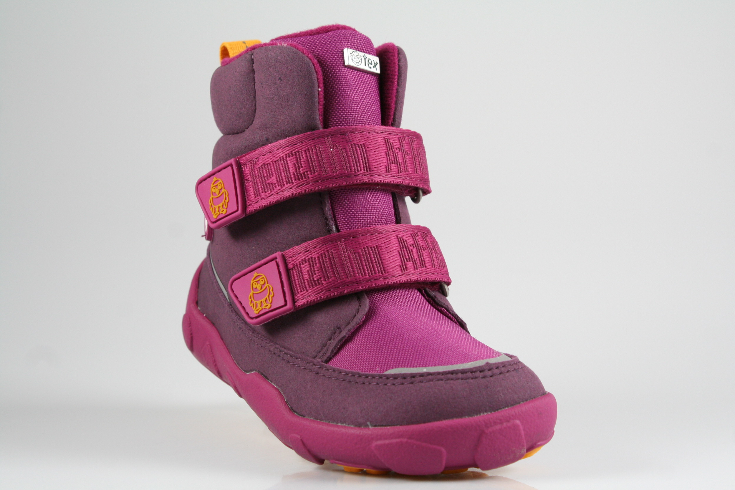 Typ: Boots, Barfußschuh; Farbe "berry"; Ausstattung:; - Obermaterial: Textil; - Warmfutter; - weiche Decksohle; - leichte Laufsohle; - gepolsterter Schaftrand; - Klettverschluss zur Weitenregulierung; - wasserfest durch "Tex"-Membrane