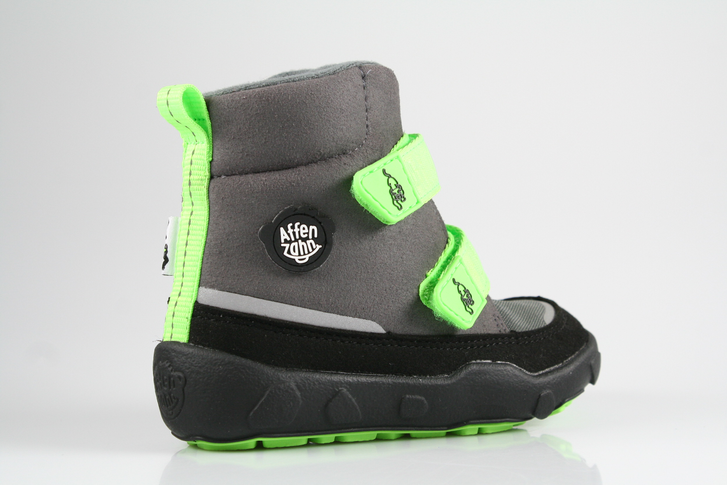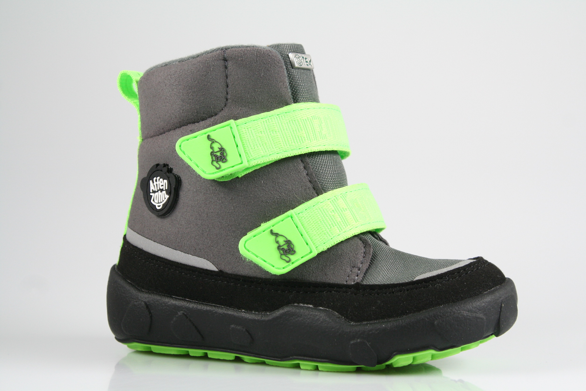 Typ: Boots, Barfußschuh; Farbe "grey"; Ausstattung:; - Obermaterial: Textil; - Warmfutter; - weiche Decksohle; - leichte Laufsohle; - gepolsterter Schaftrand; - Klettverschluss zur Weitenregulierung; - wasserfest durch "Tex"-Membrane