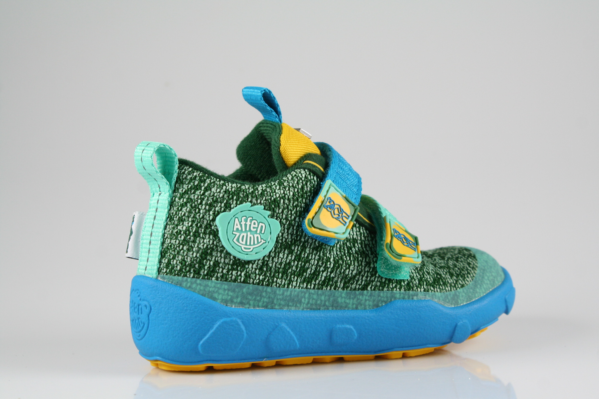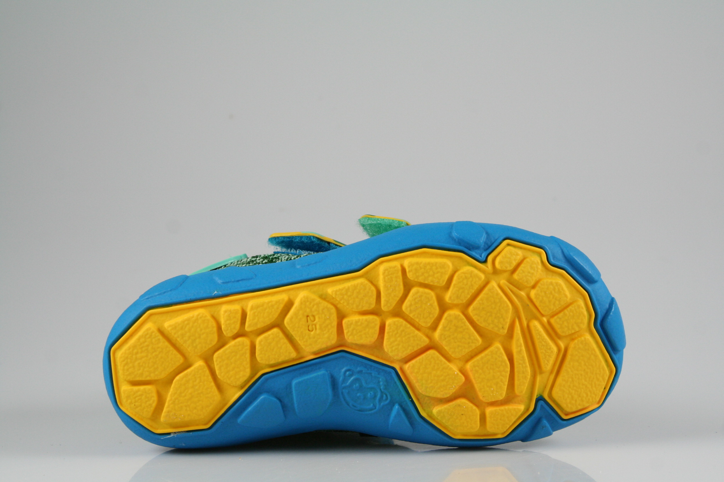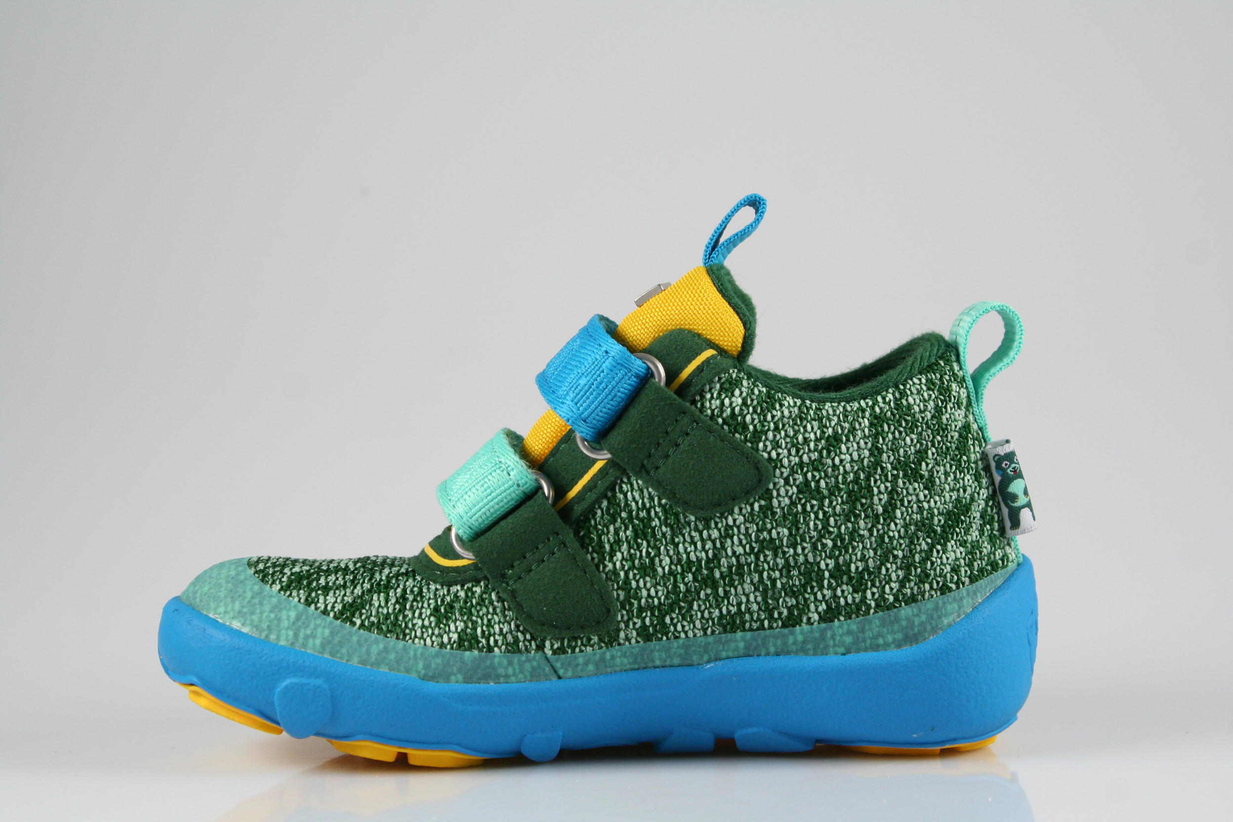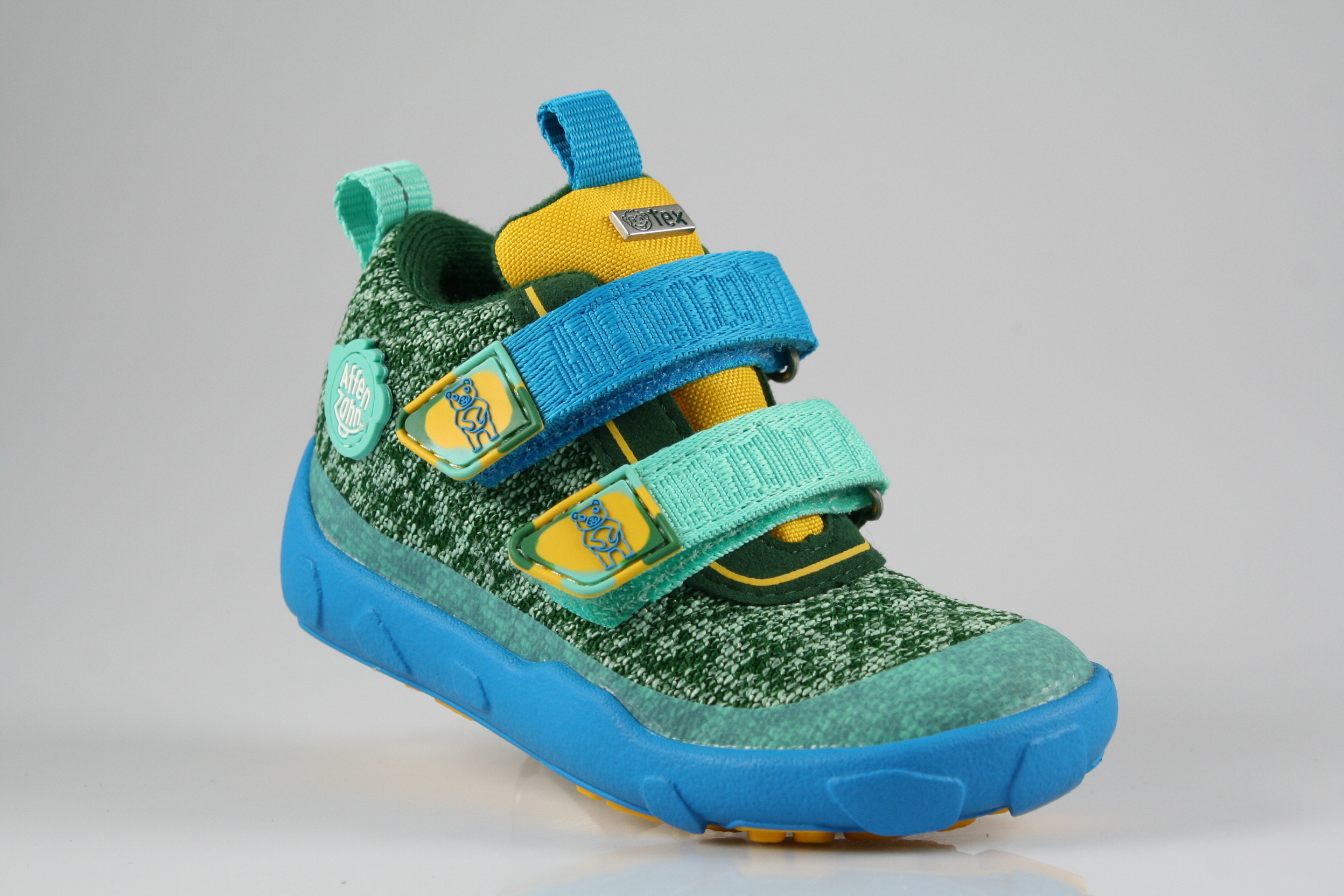 Typ: Barfußschuh; Farbe "green"; Ausstattung:; - Obermaterial: Synthetik, Mesh; - weiche Decksohle; - flexible Laufsohle; - gepolsterter Schaftrand; - Klettverschluss zur Weitenregulierung; - wasserfest durch "Tex"-Membrane