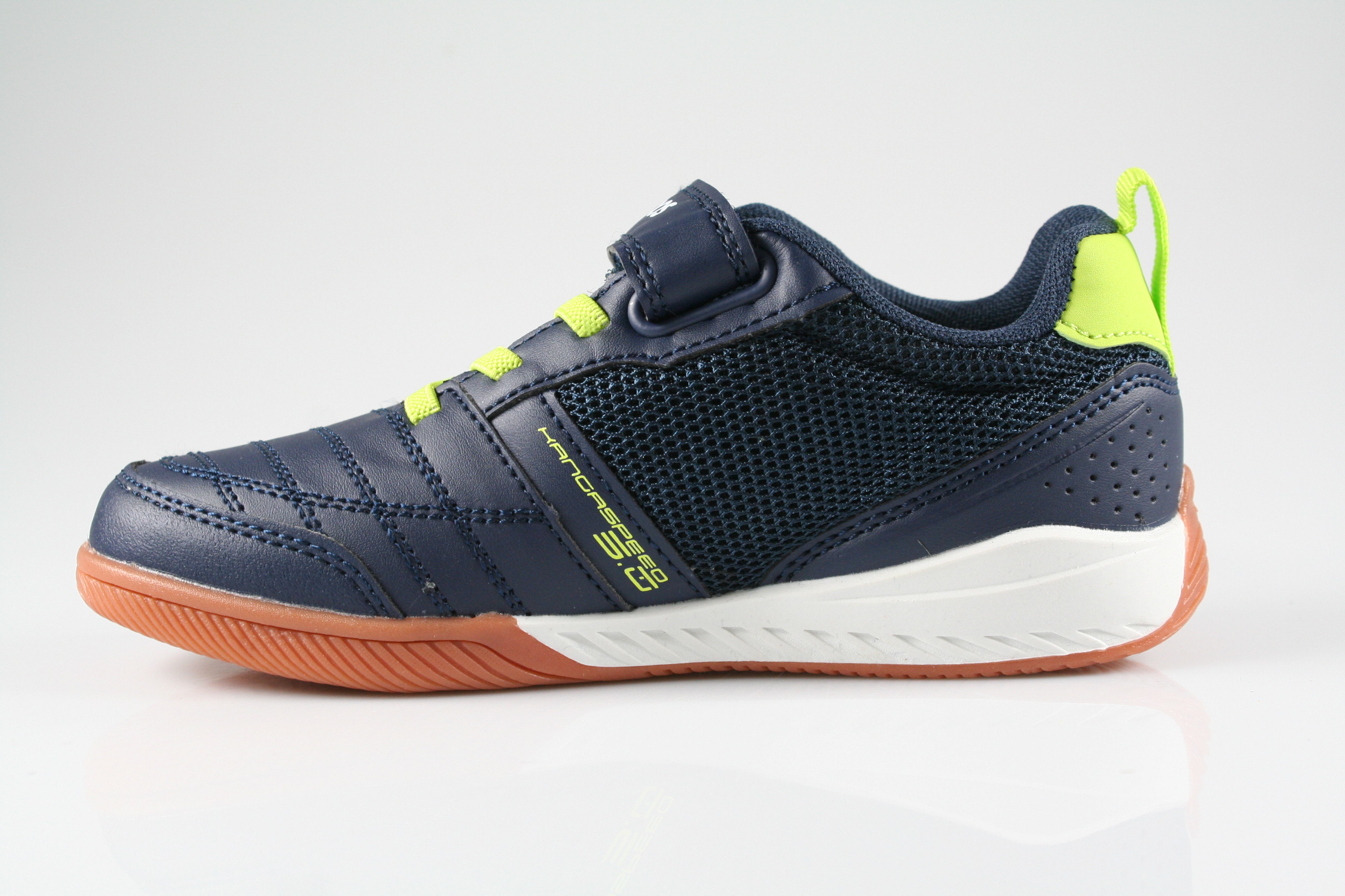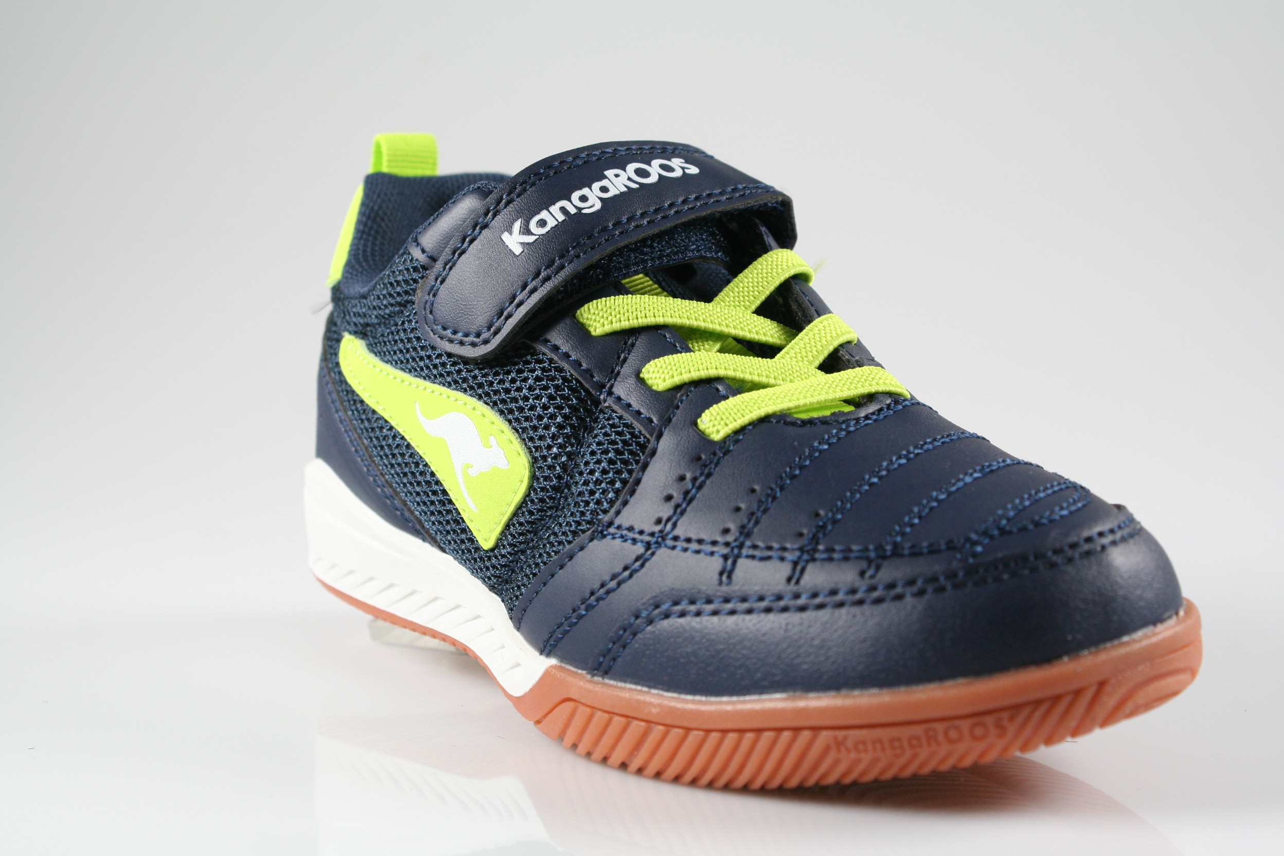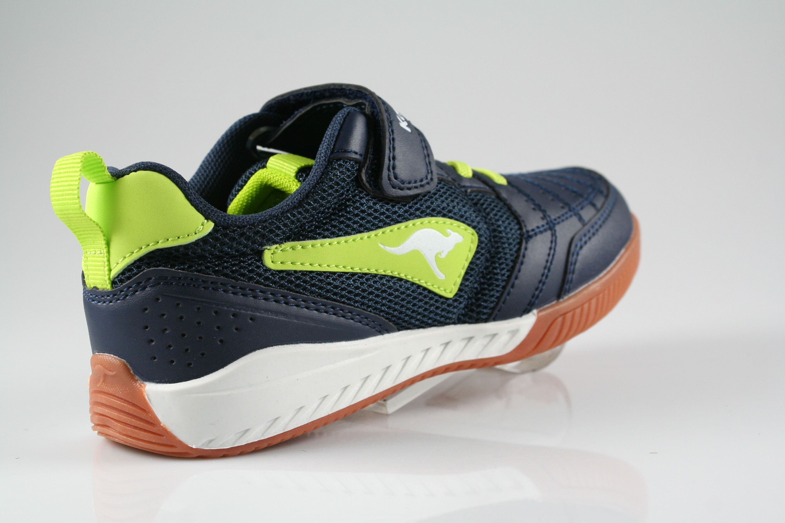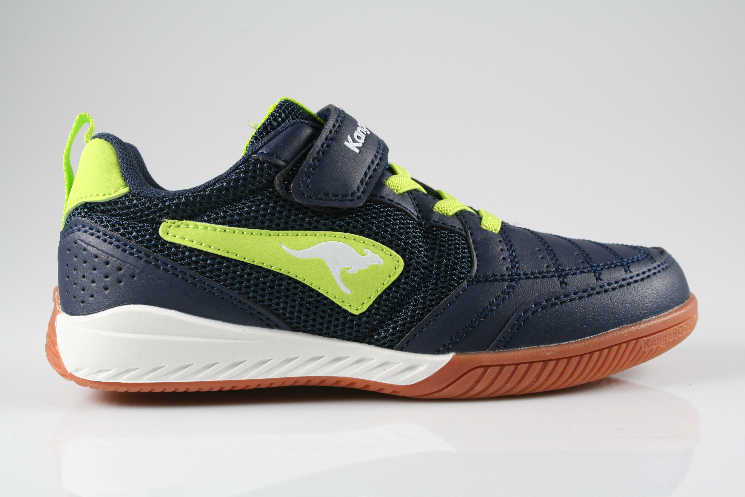 Typ: Turnschuh; Farbe: "Dark Navy / Lime"; Art.Nr.: 18910 000 4054; Ausstattung:; - Obermaterial: Synthetik; - herausnehmbares Fußbett; - non marking Sohle / Hallensport geeignet; - gepolsterter Schaftrand; - Klette zur Weitenregulierung