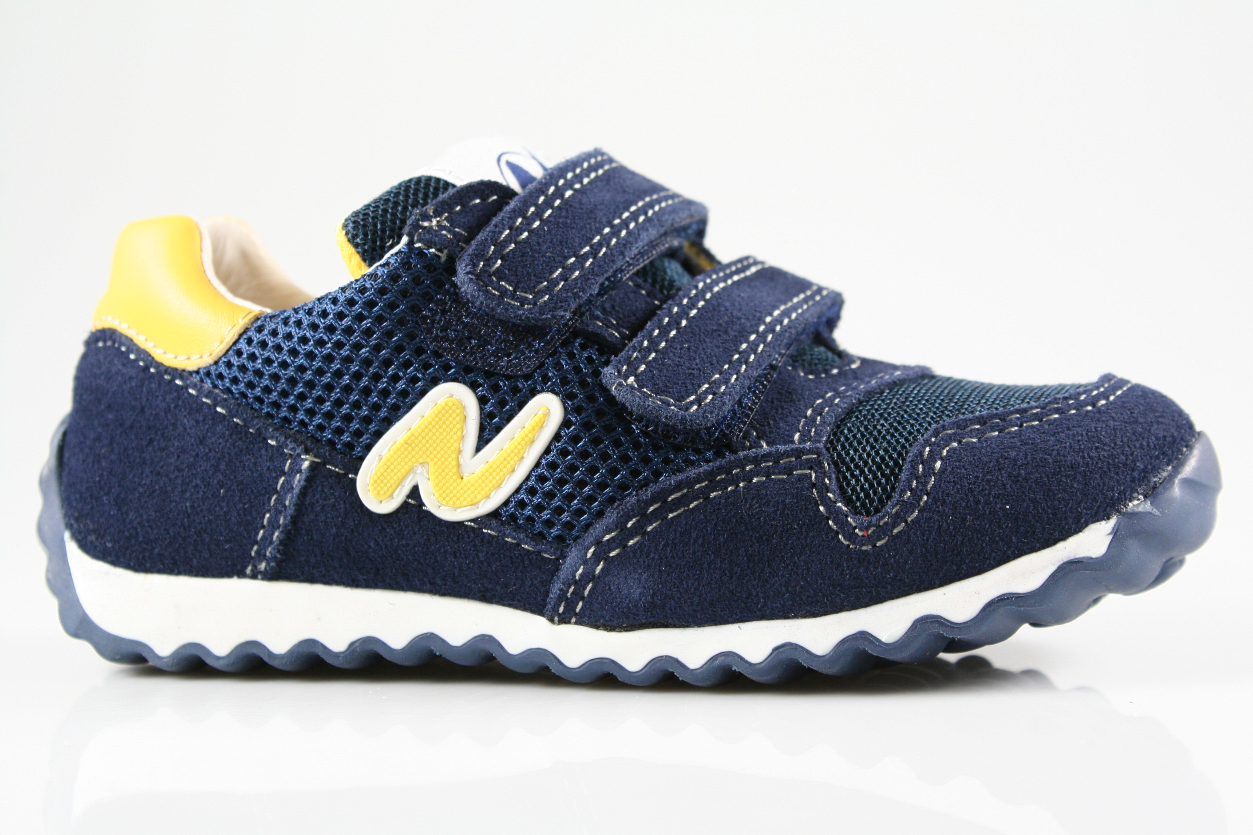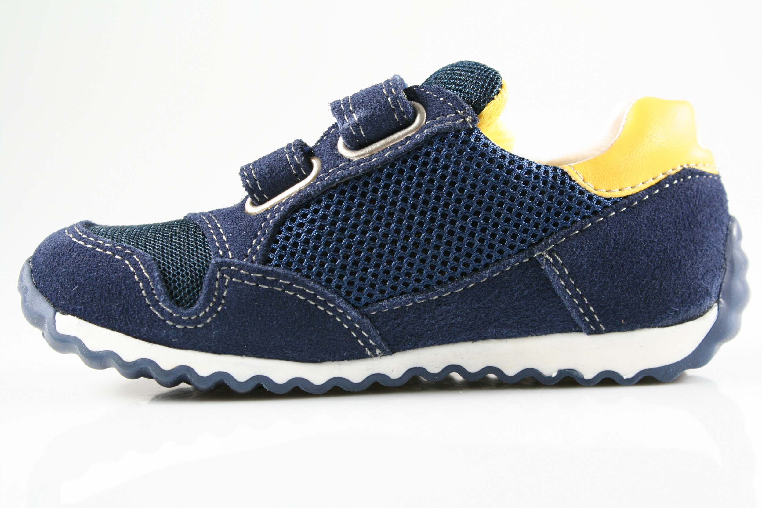 Typ: Halbschuh; Farbe: "navy-yellow"; Ausstattung:; - Obermaterial: Velourleder/Netz; - Lederfutter; - herausnehmbares Lederfußbett; - flexible Laufsohle ; - gepolsterter Schaftrand; - Doppelklette