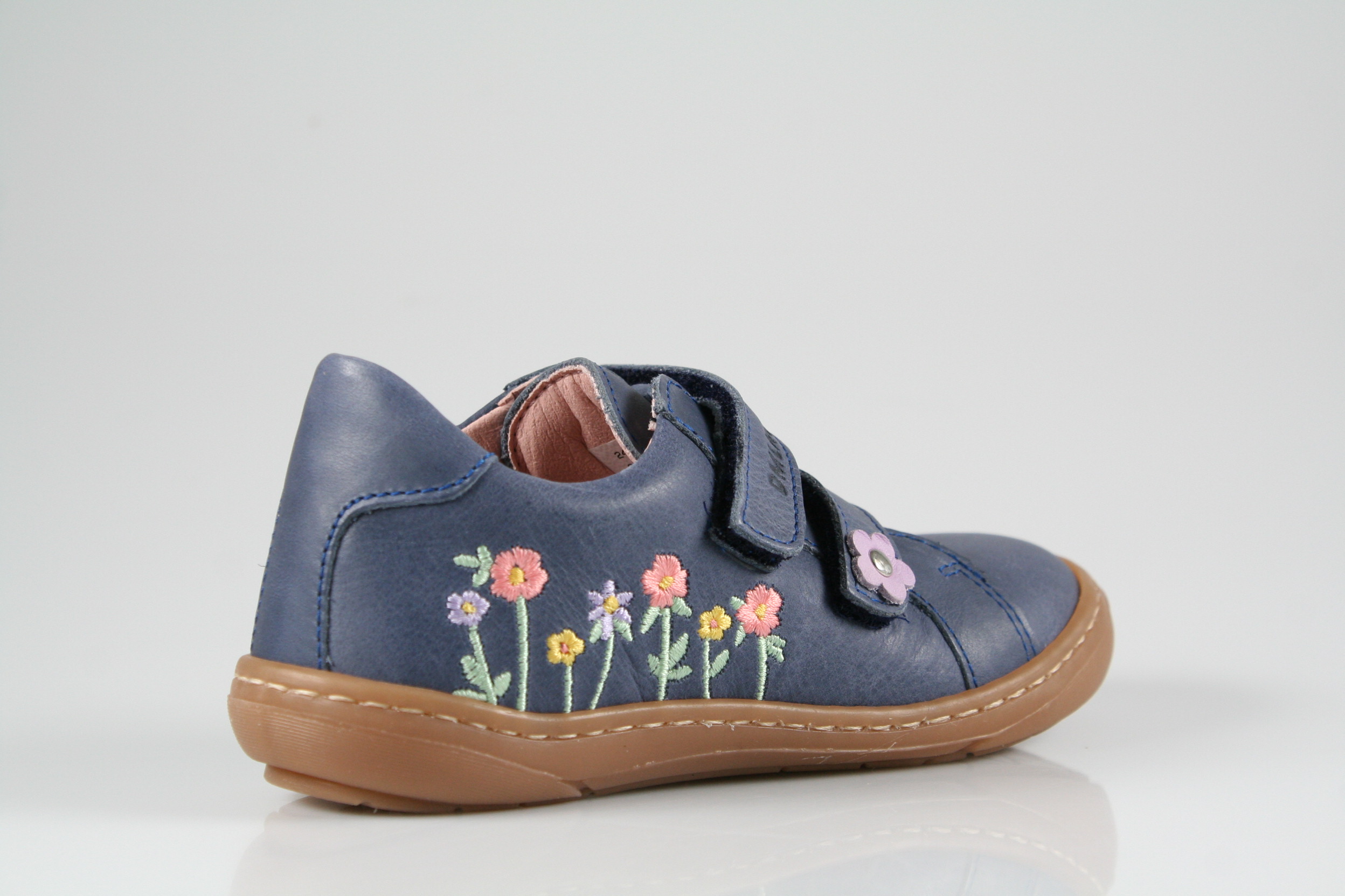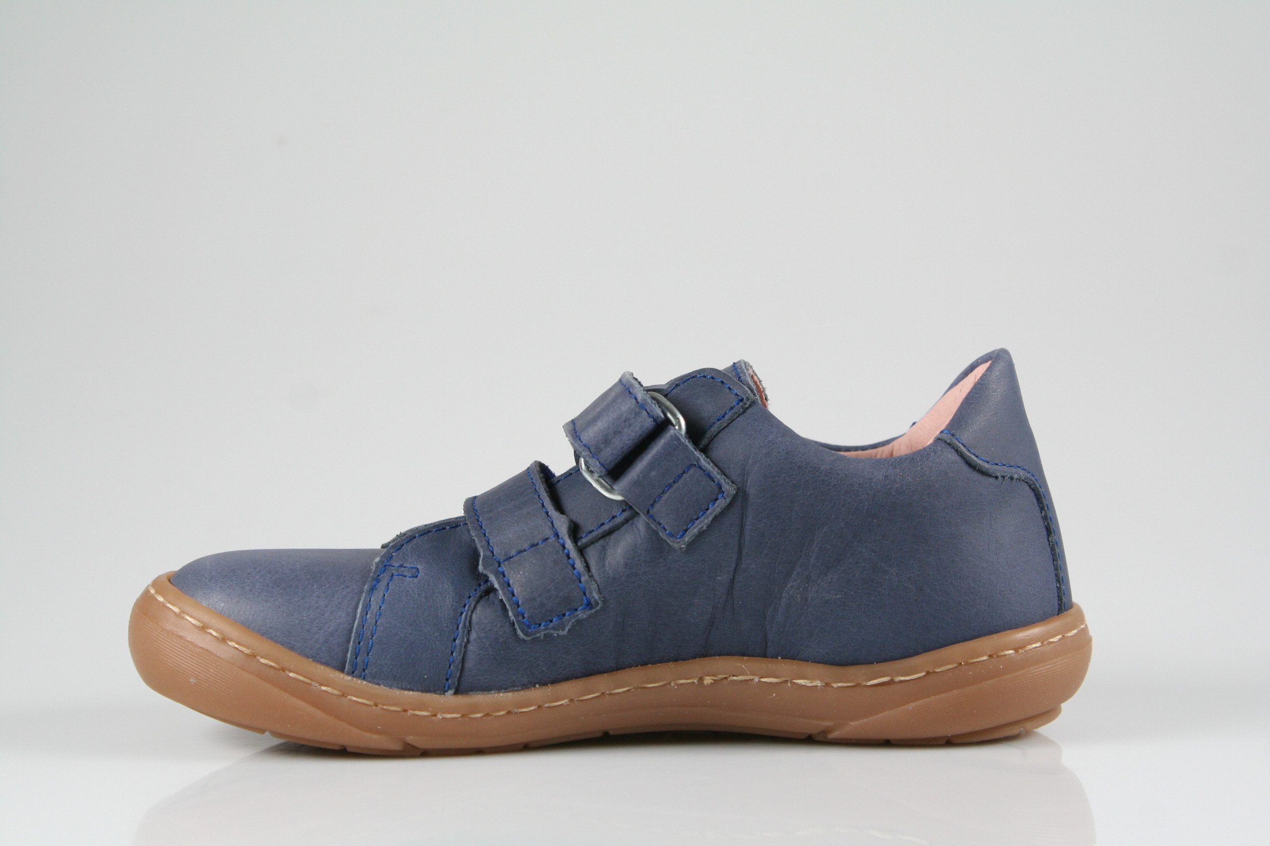 Typ: Halbschuh; Farbe "jeans"; Ausstattung:; - Obermaterial: Glattleder; - herausnehmbares Fußbett ; - flexible und leichte Laufsohle; - gepolsterter Schaftrand; - Klettverschluss zur Weitenregulierung; - Weite "schmal"