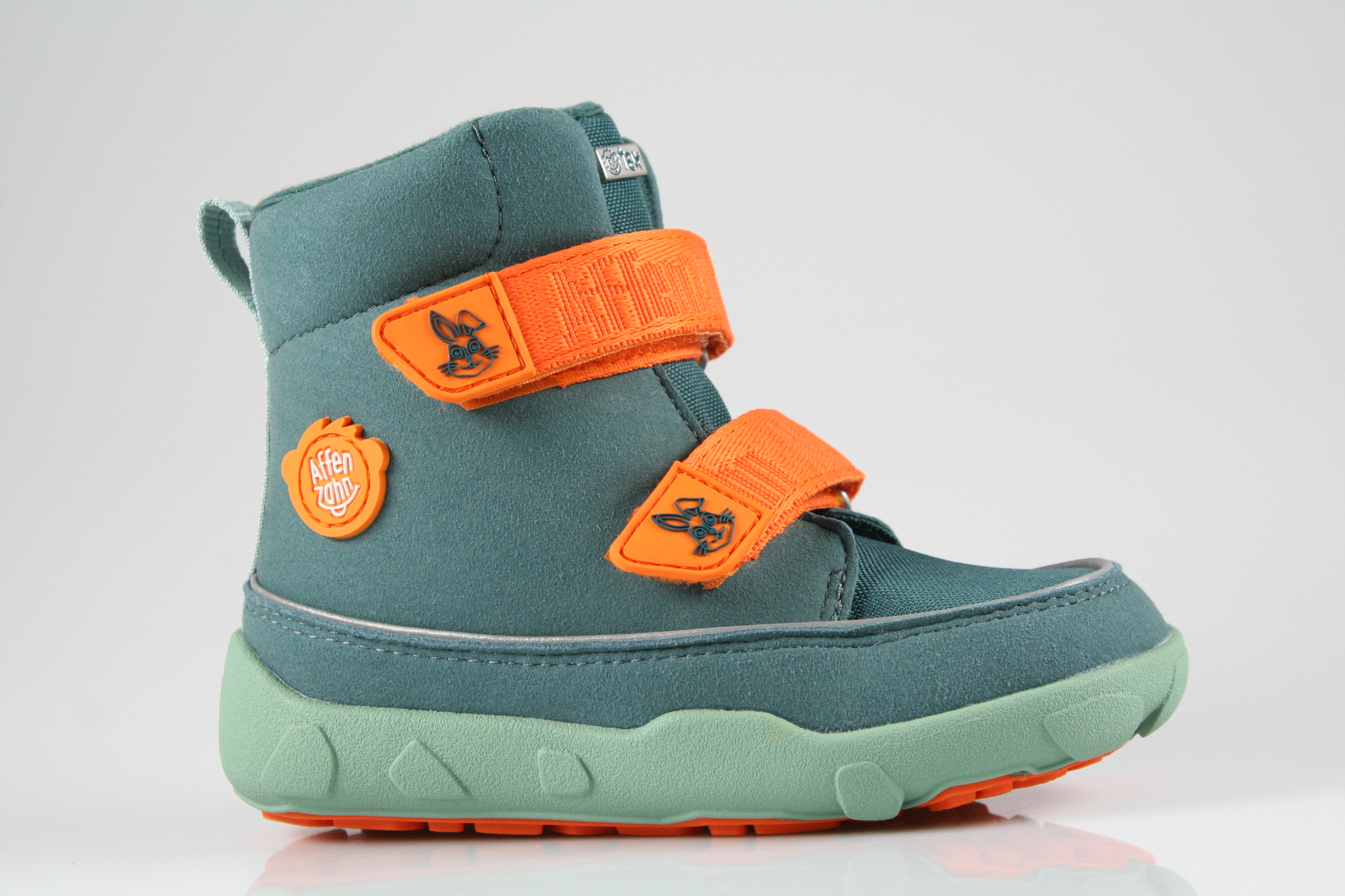 Typ: Boots; Farbe "petrol"; Ausstattung:; - Obermaterial: Synthetik; - Warmfutter; - weiche Decksohle; - leichte Laufsohle; - gepolsterter Schaftrand; - Klettverschluss zur Weitenregulierung; - wasserfest durch "Tex"-Membrane