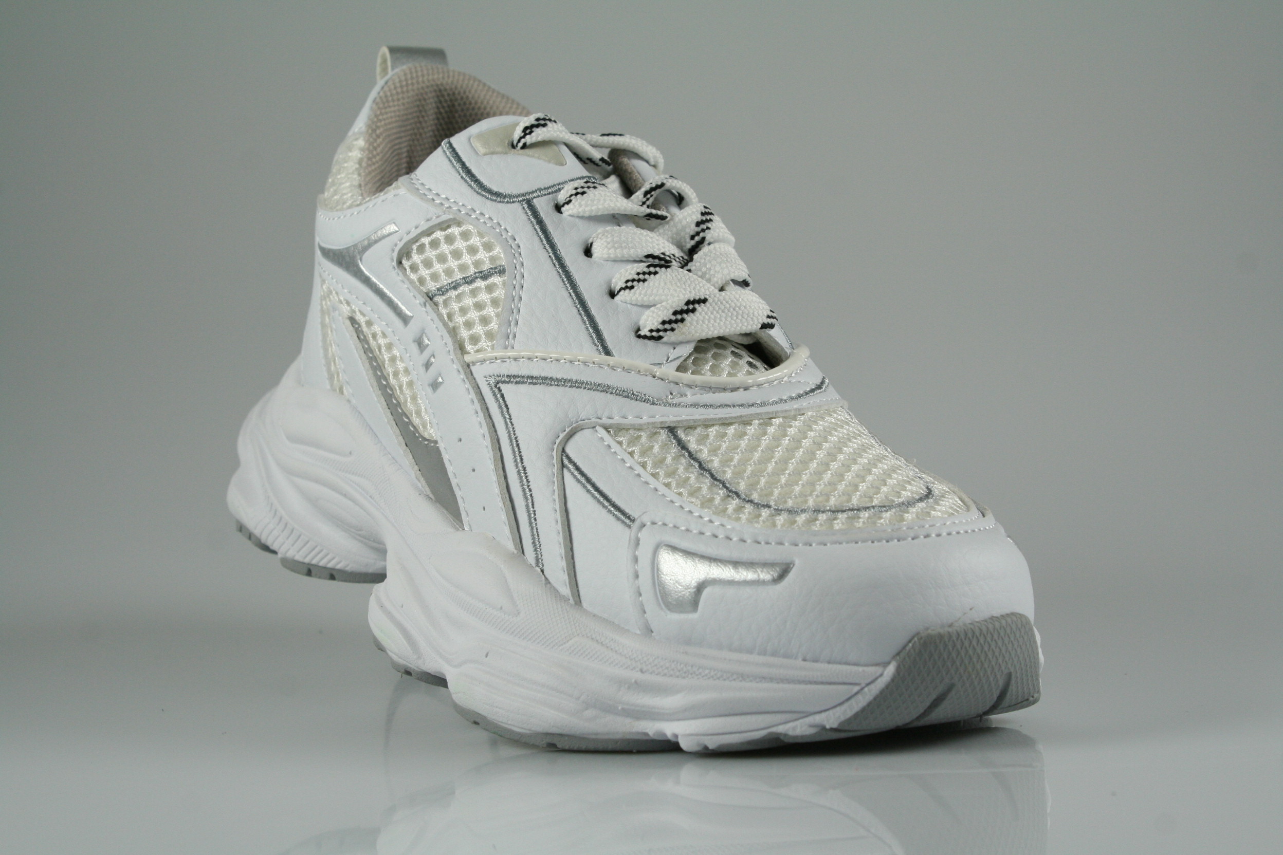 Typ: Halbschuh; Farbe "white silver"; Ausstattung:; - Obermaterial: Leder, Mesh; - herausnehmbares Fußbett; - leichte Laufsohle; - gepolsterter Schaftrand; - Schnürsenkel zur Weitenregulierung