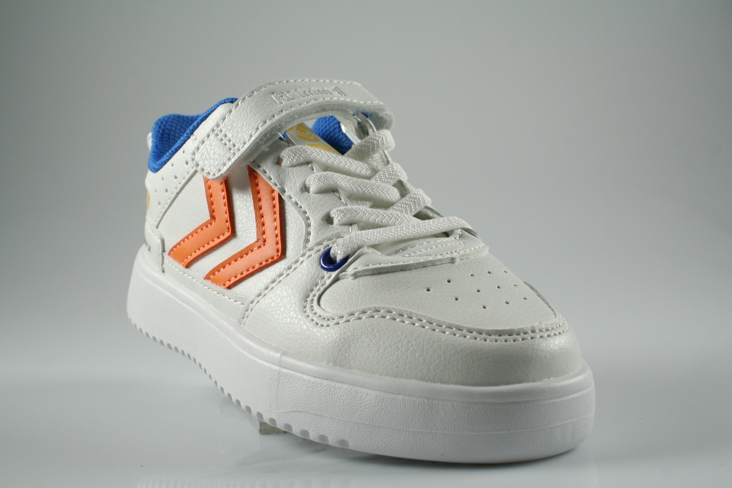 Typ: Halbschuh; Farbe "white/orange"; Ausstattung:; - Obermaterial: Synthetik; - weiches Fußbett; - leichte Laufsohle; - gepolsterter Schaftrand; - Klettverschluss zur Weitenregulierung