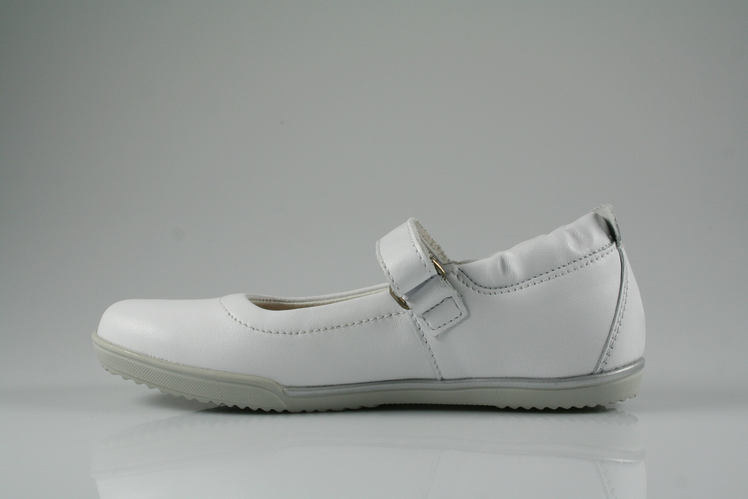 Typ: Ballerinas/Kommunionsschuhe; Farbe: "odissea weiß"; Ausstattung:; - Obermaterial: Glattleder; - Lederdecksohle; - superleichte Laufsohle; - Klettverschluss zur Weitenregulierung; - Weite M