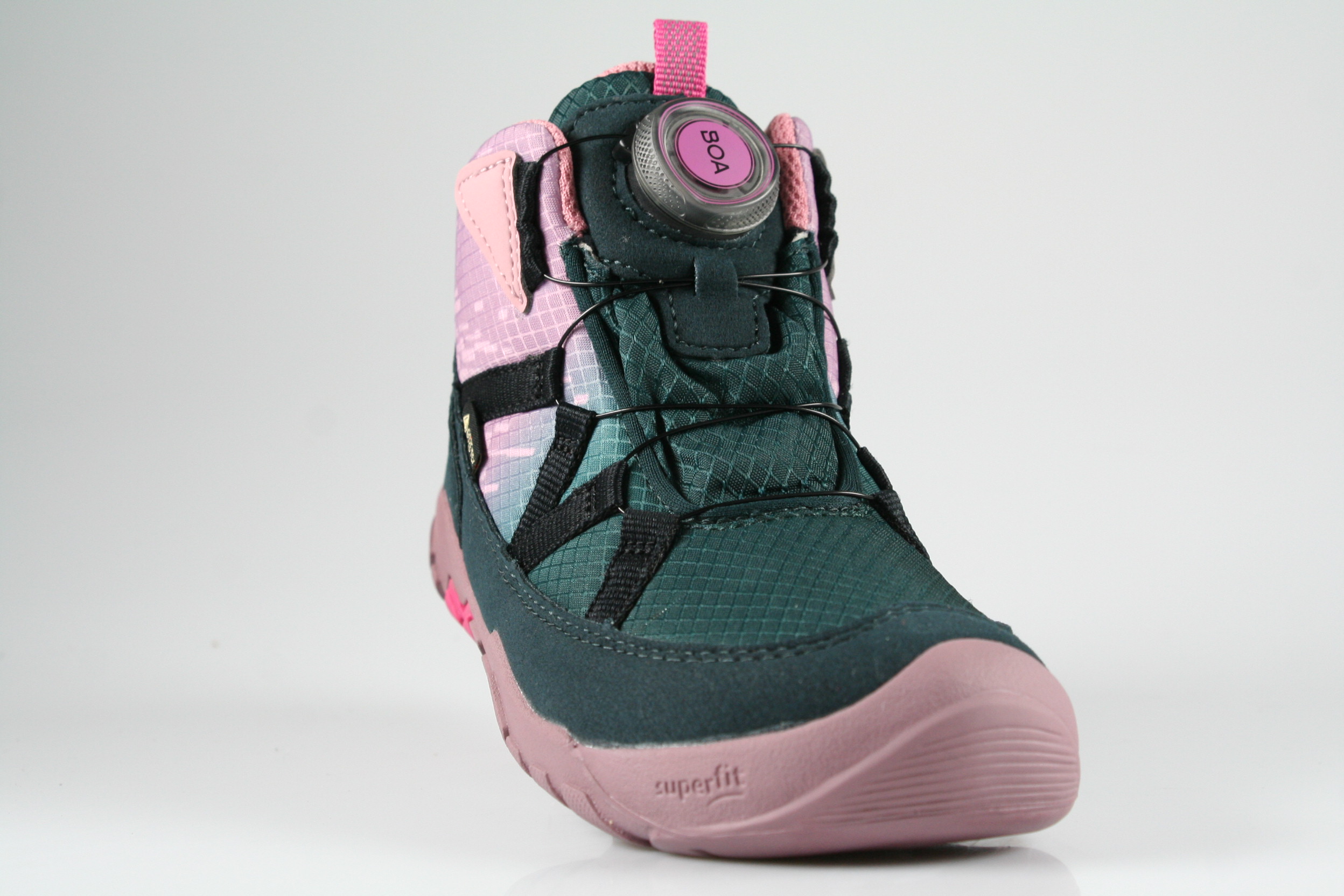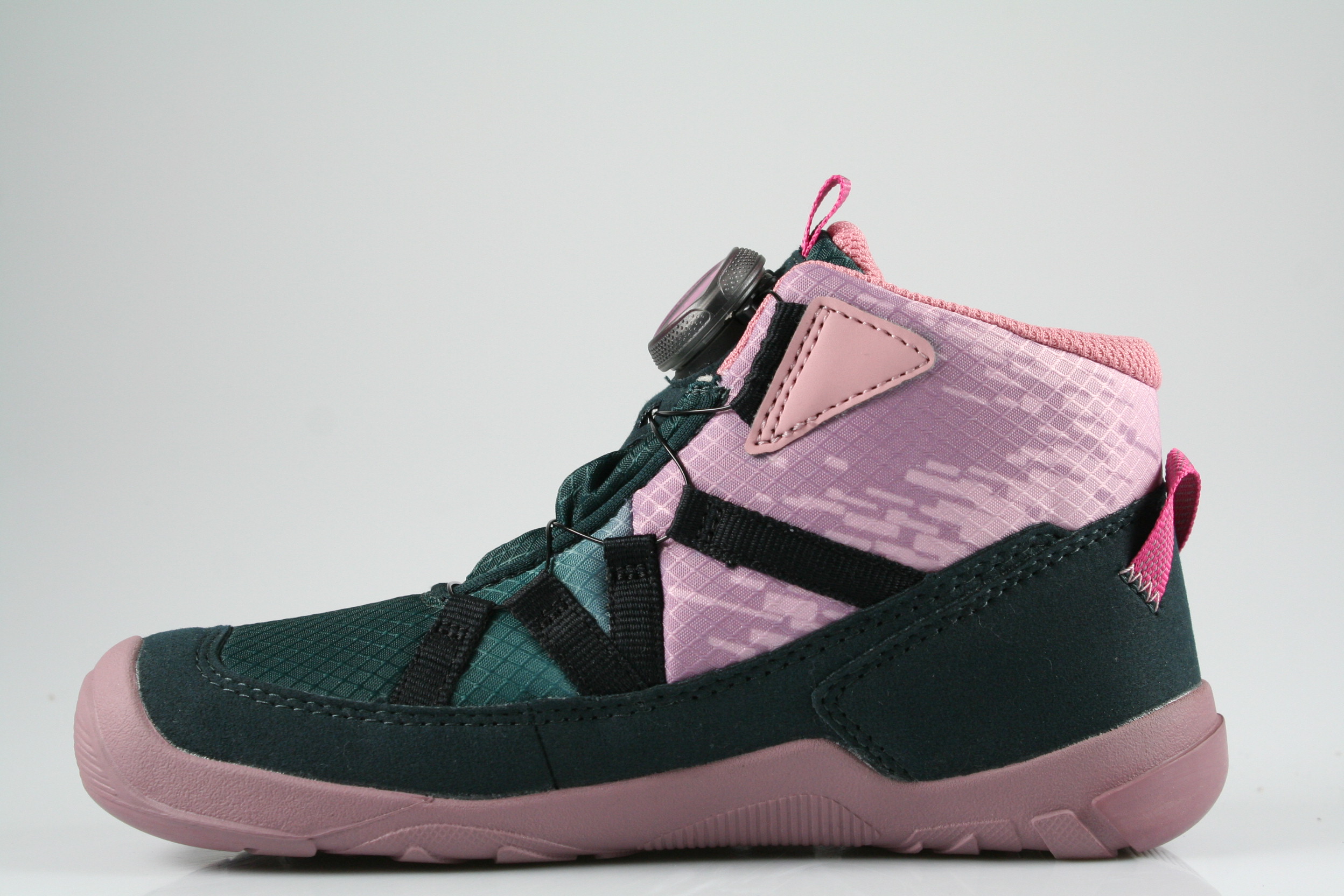 Typ: Barfuß-Boots; Farbe: grün/rosa; Ausstattung:; - Obermaterial: HighTech/kombiniert; - atmungsaktives Futter; - leichte, flexible Laufsohle; - gepolsterter Schaftrand; - Gummizug und Klettverschluss; - wasserfest durch "Gore-Tex"-Membrane; - Weite "M"