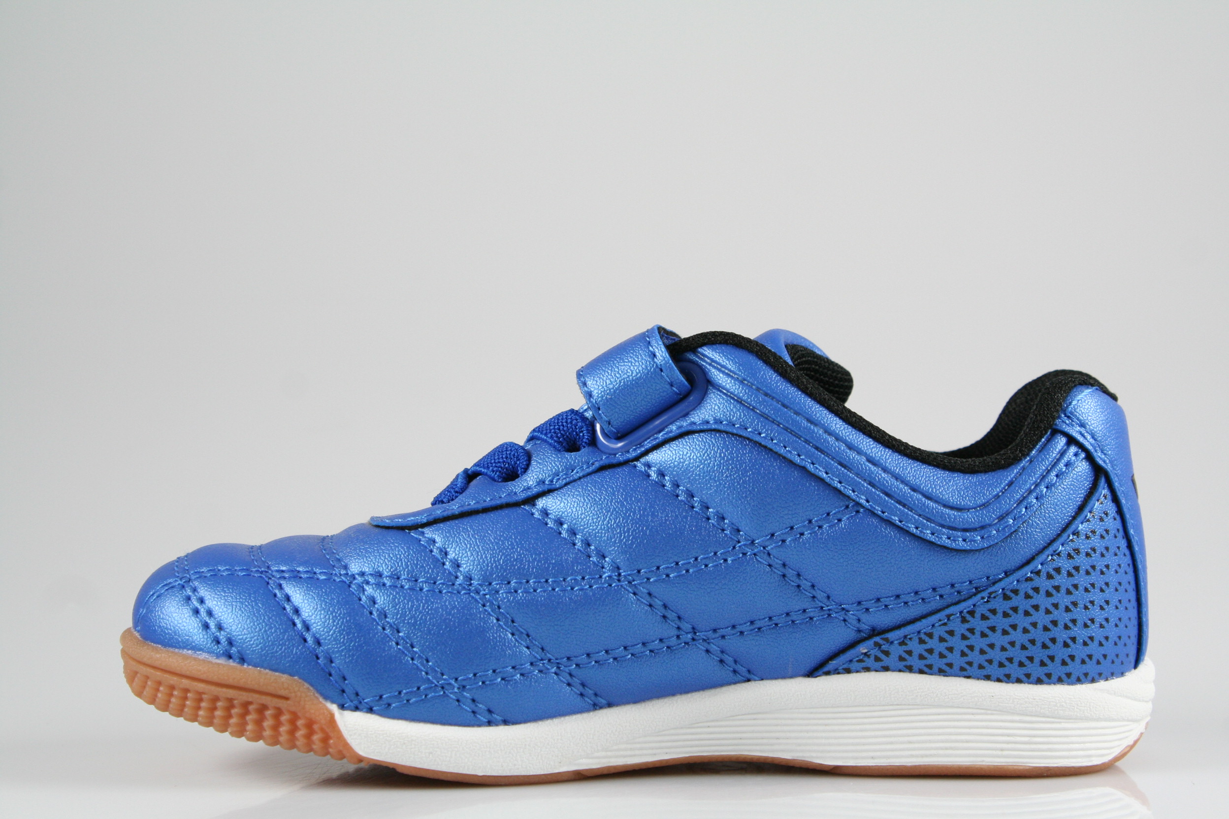 Typ: Hallenschuh; Farbe "blau/schwarz"; Ausstattung:; - Obermaterial: Synthetik; - herausnehmbare Decksohle; - rutschfeste Laufsohle; - gepolsterter Schaftrand; - Klettverschluss zur Weitenregulierung