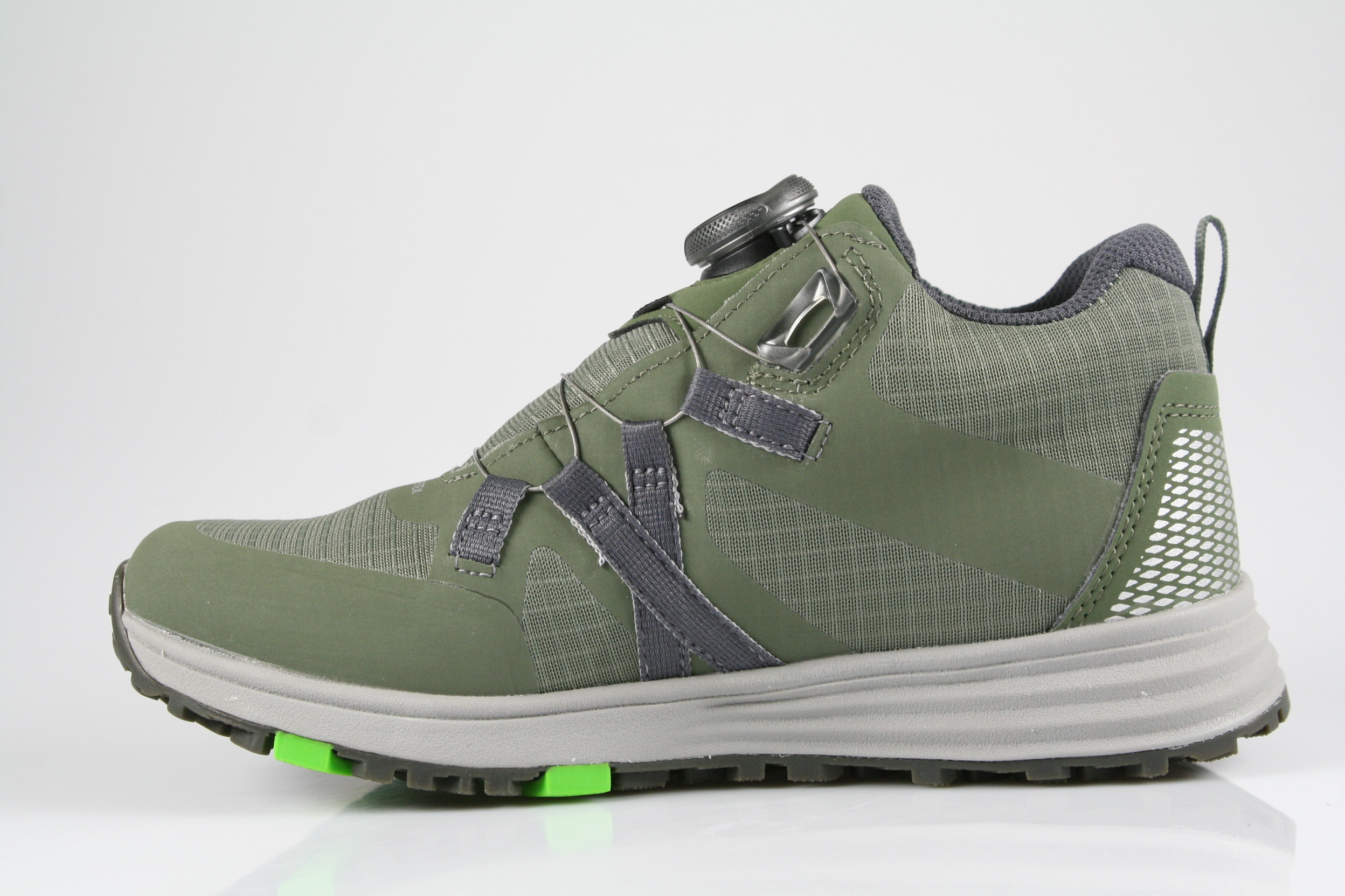 Typ: Boots; Farbe "olive"; Ausstattung:; - Obermaterial: Synthetik; - herausnehmbares Fußbett; - flexible Gummilaufsohle; - gepolsterter Schaftrand; - Drehverschluss zur Weitenregulierung; - "GoreTex"-Membrane;