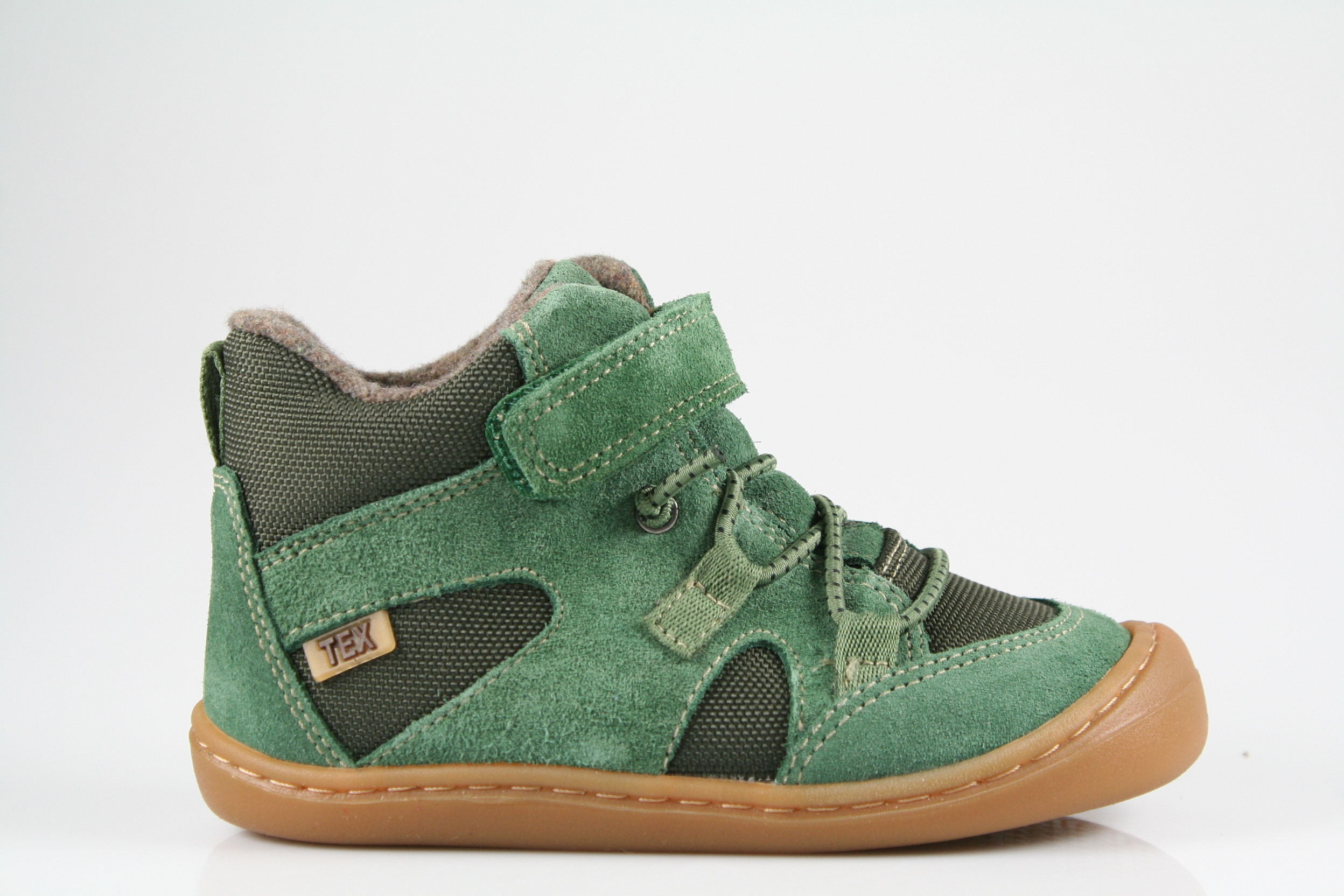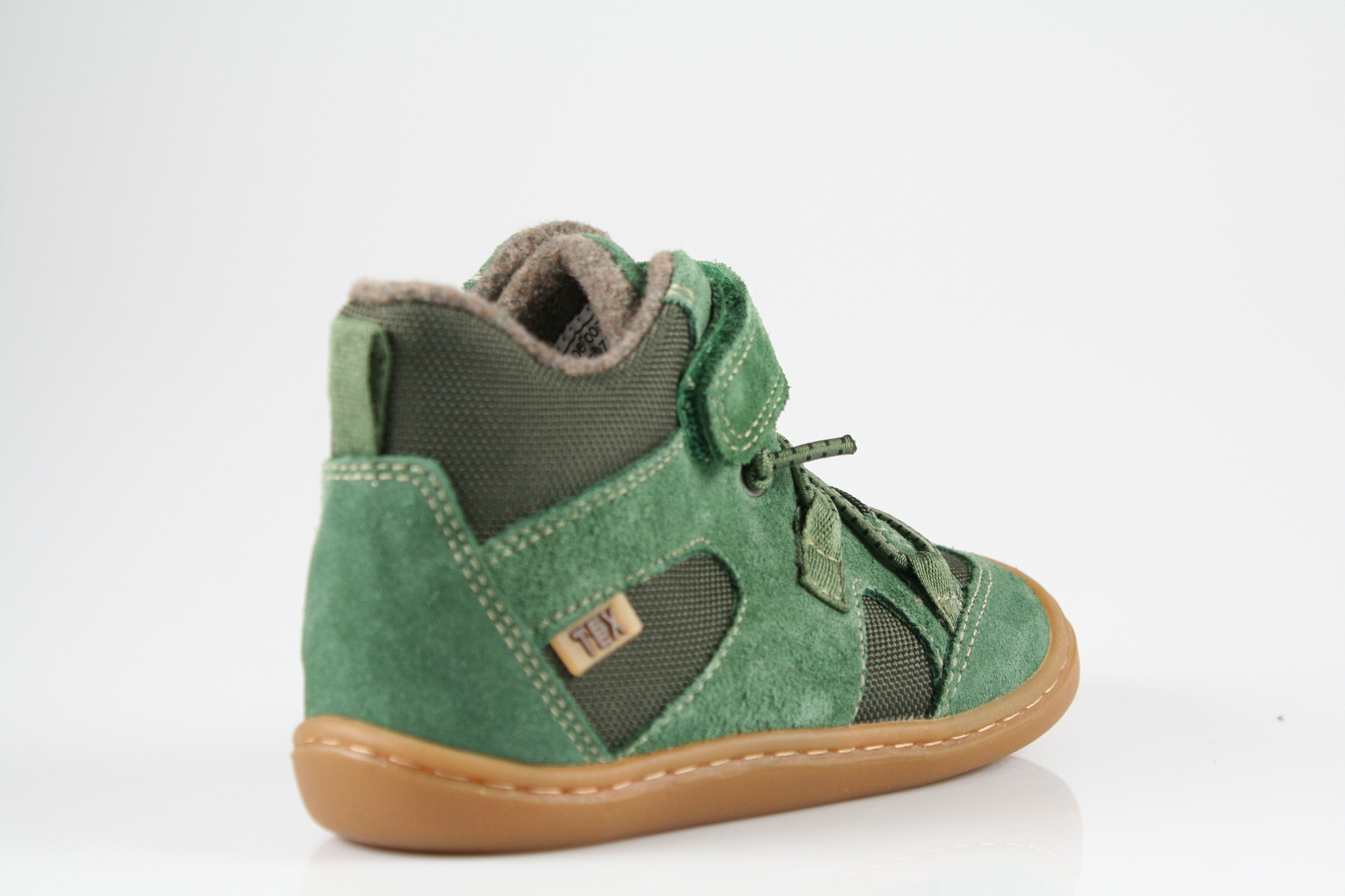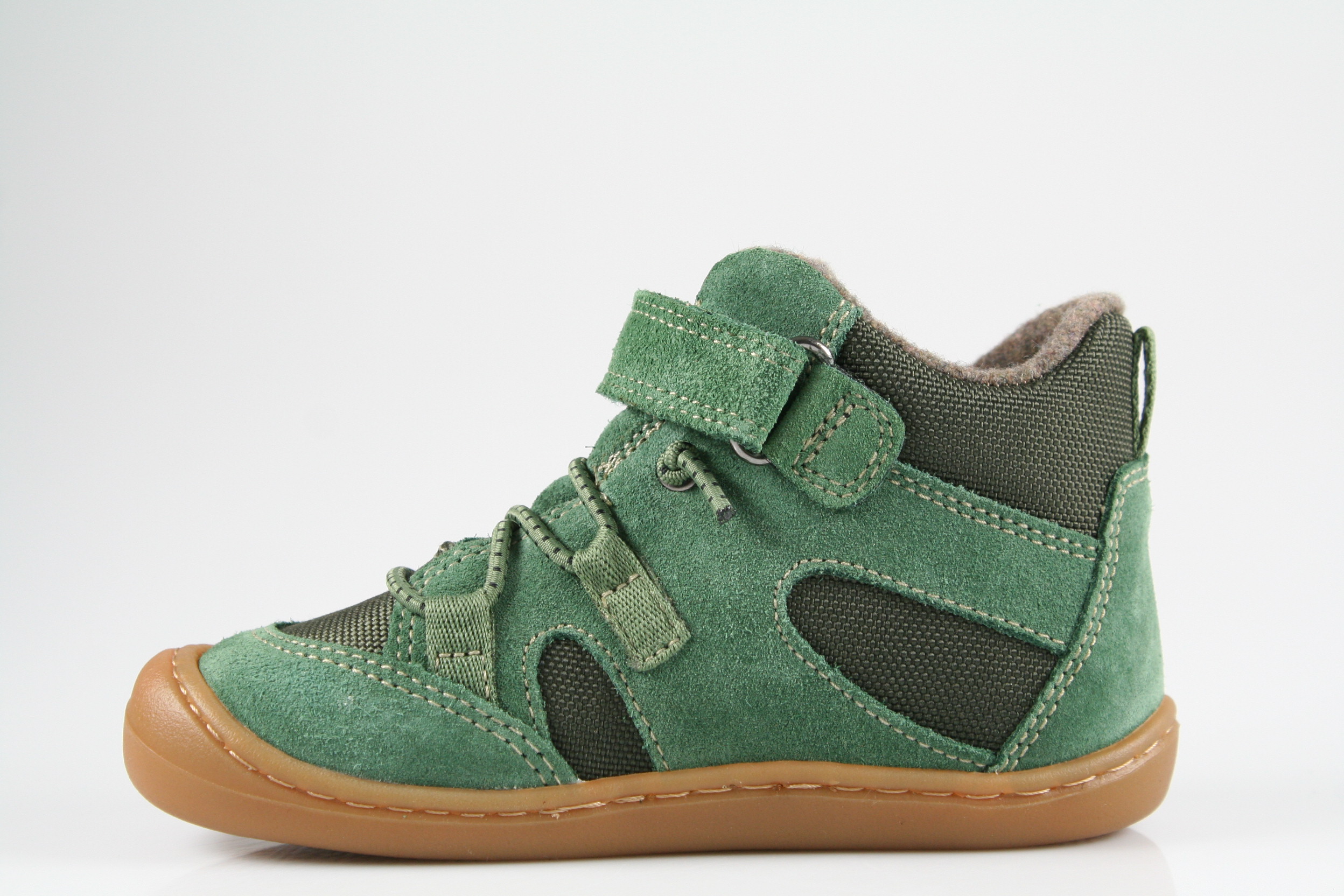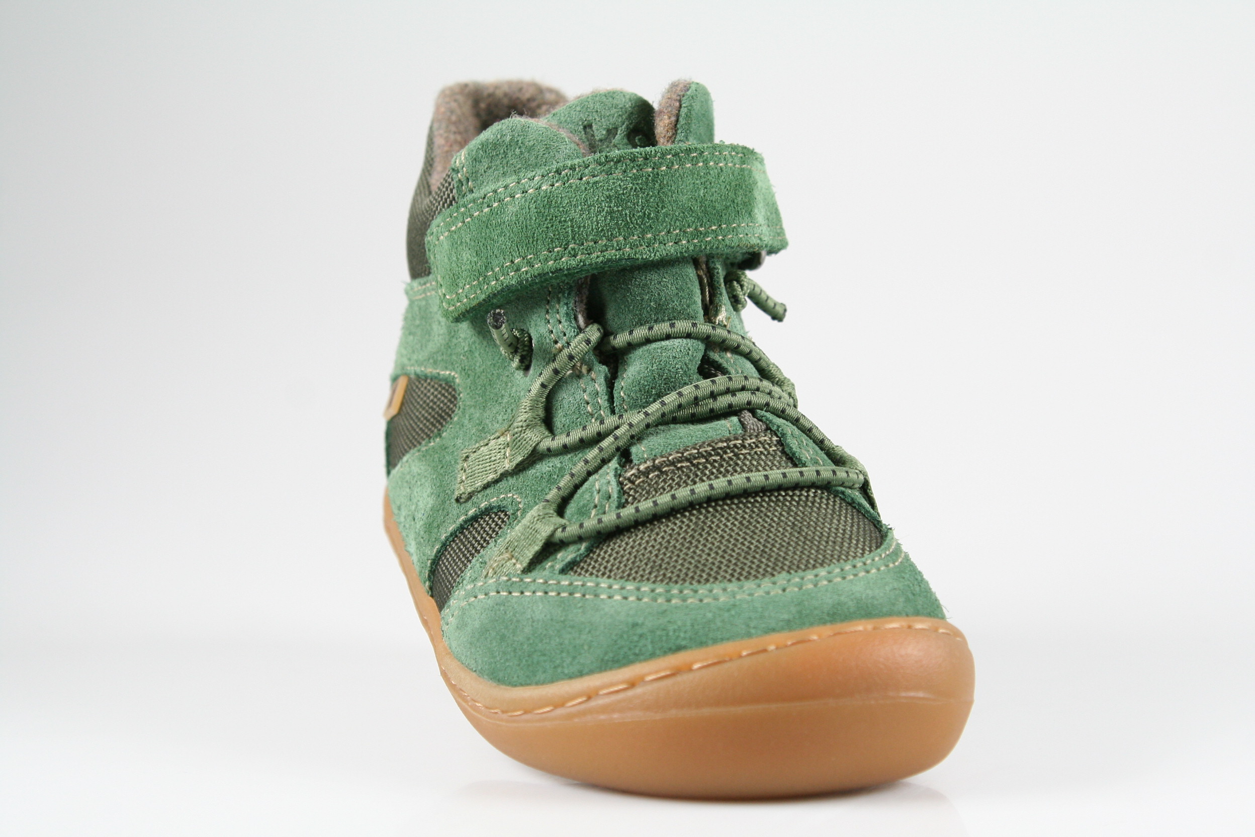 Typ: Boots/Barfußschuh; Farbe "olive"; Ausstattung:; - Obermaterial: Velourleder, Mesh; - Warmfutter; - weiches Fußbett; - flexible Laufsohle; - gepolsterter Schaftrand; - Klettverschluss zur Weitenregulierung; - "Tex"-Membrane