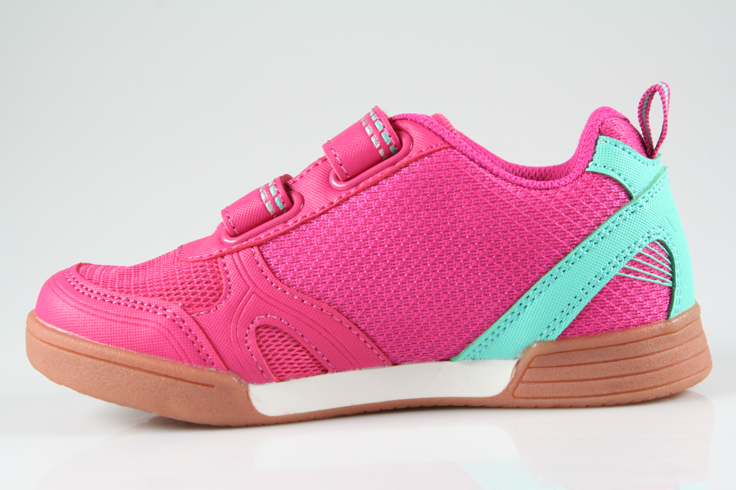 Typ: Turnschuh; Farbe "pink/türkis"; Ausstattung:; - Obermaterial: Mesh, Synthetik; - herausnehmbares Fußbett; - rutschfeste Laufsohle; - gepolsterter Schaftrand; - Doppelklette zur Weitenregulierung