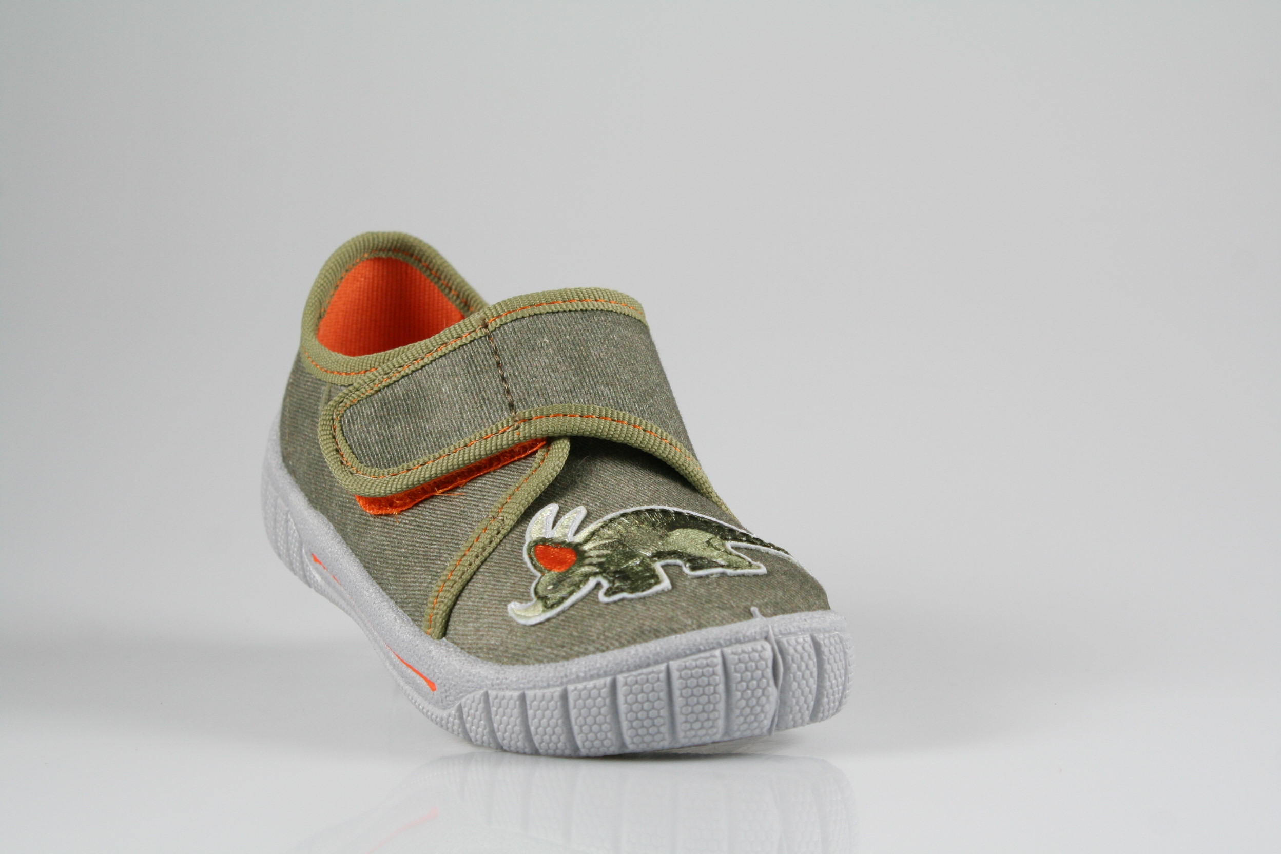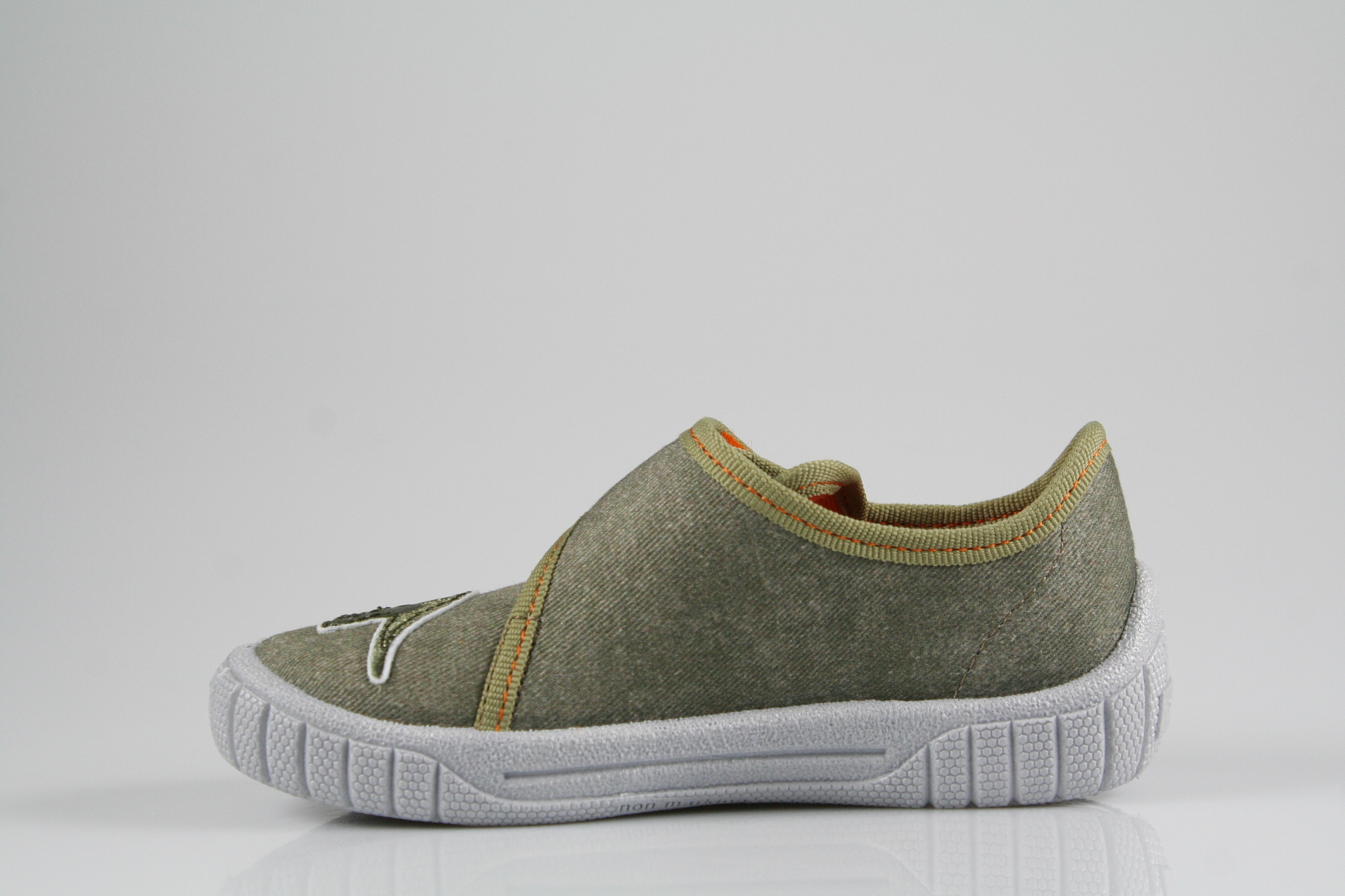 Typ: Hausschuh; Farbe: grün/grau; Ausstattung:; - Obermaterial Textilien; - weiches Fußbett; - leichte und flexible Laufsohle; - atmungsaktiv durch perforierte Laufsohle; - Klettverschluss zur Weitenregulierung; - Modell "Bill"