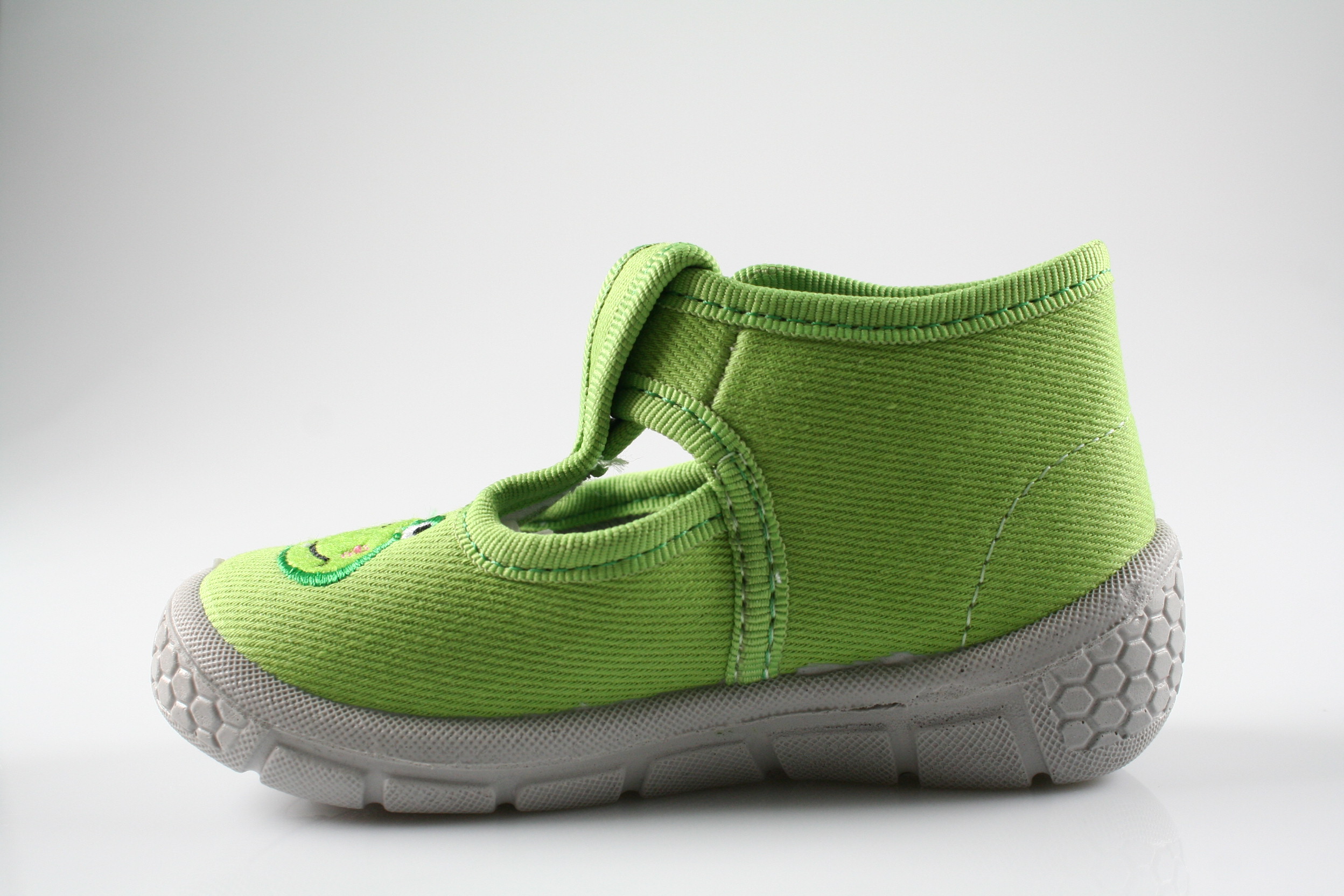 Typ: Hausschuh; Farbe "gras"; Ausstattung:; - Obermaterial: Leinen; - Frotteefutter; - leichte und flexible Laufsohle; - Klettverschluss zur Weitenregulierung; - Weite M