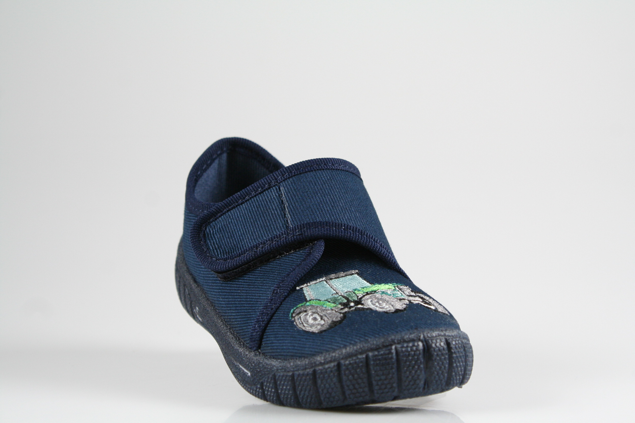 Typ: Hausschuh; Farbe "ocean"; Ausstattung:; - Obermaterial und Innenfutter: Baumwolle; - weiches Fußbett; - flexible, perforierte Laufsohle; - Klettverschluss zur Weitenregulierung