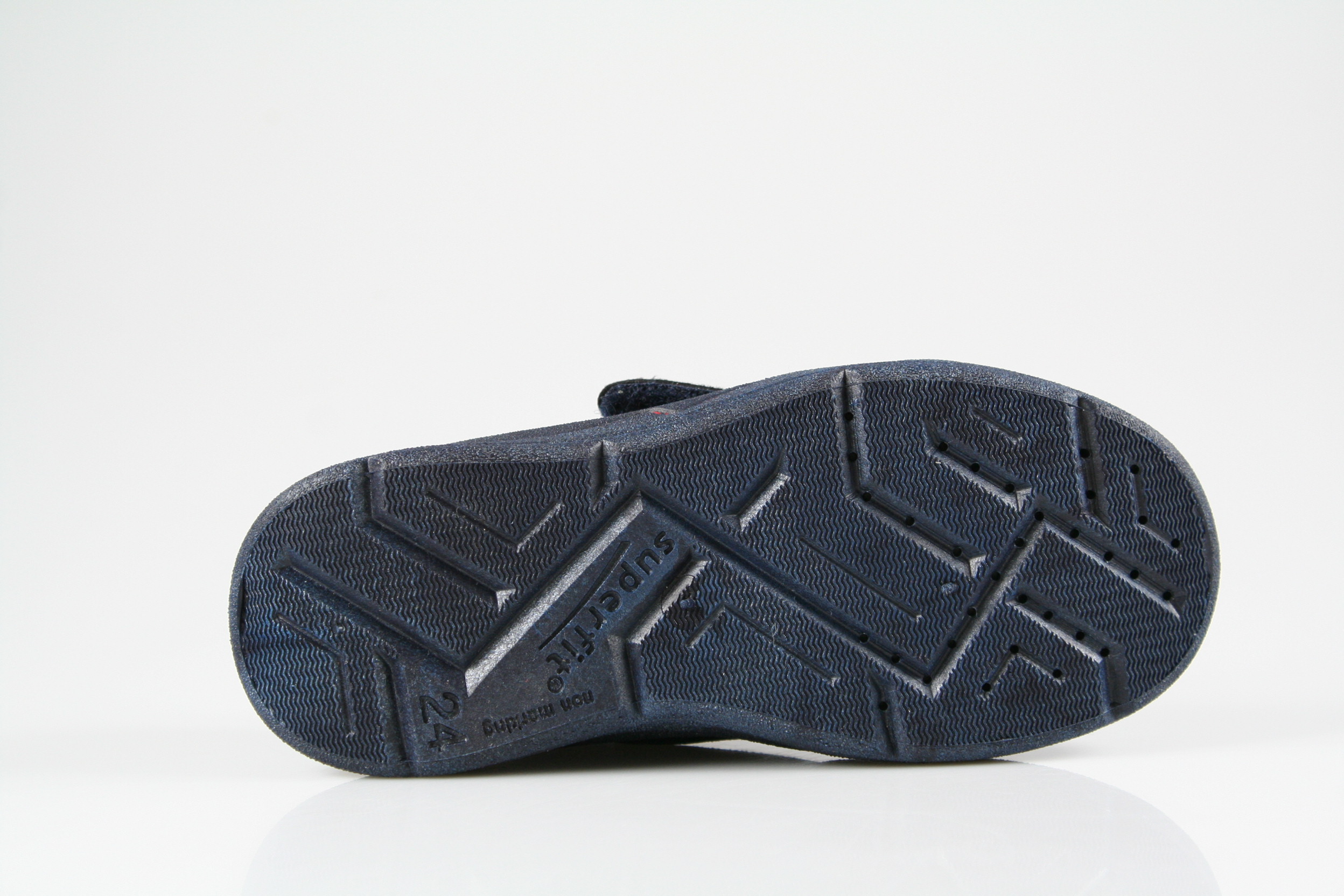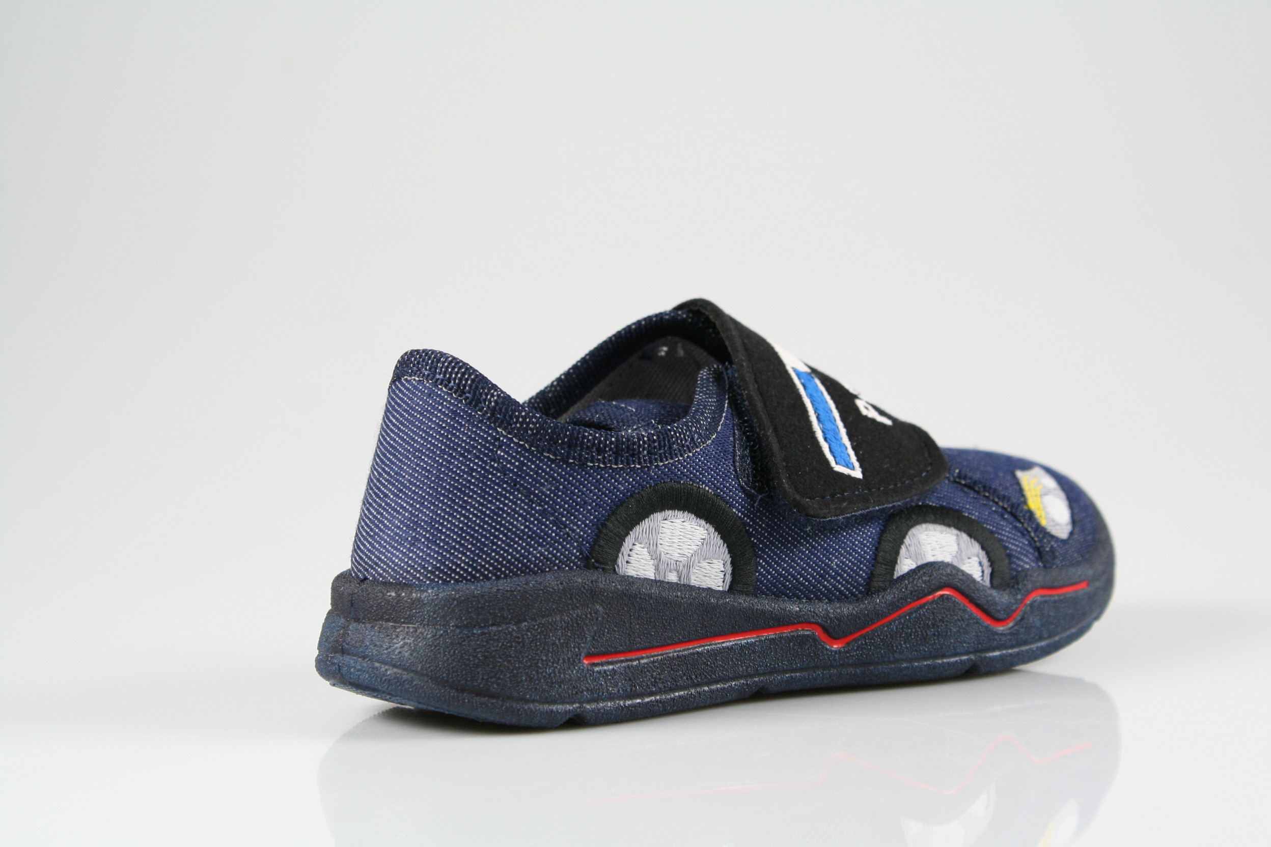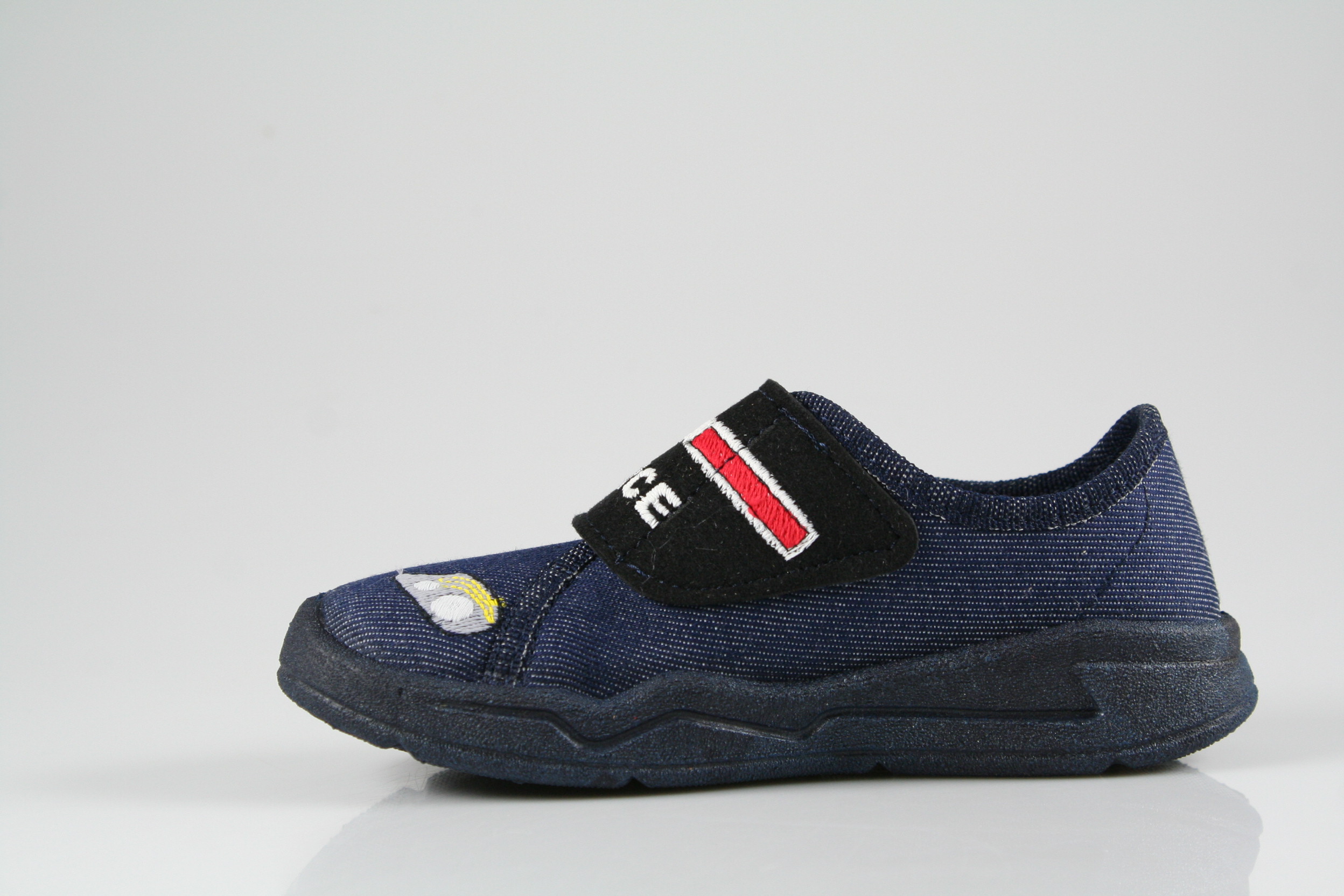 Typ: Hausschuh; Farbe "blau"; Ausstattung:; - Obermaterial und Innenfutter: Baumwolle; - weiche Decksohle; - flexible Laufsohle; - atmungsaktiv durch Perforation; - gepolsterter Schaftrand; - Klettverschluss zur Weitenregulierung
