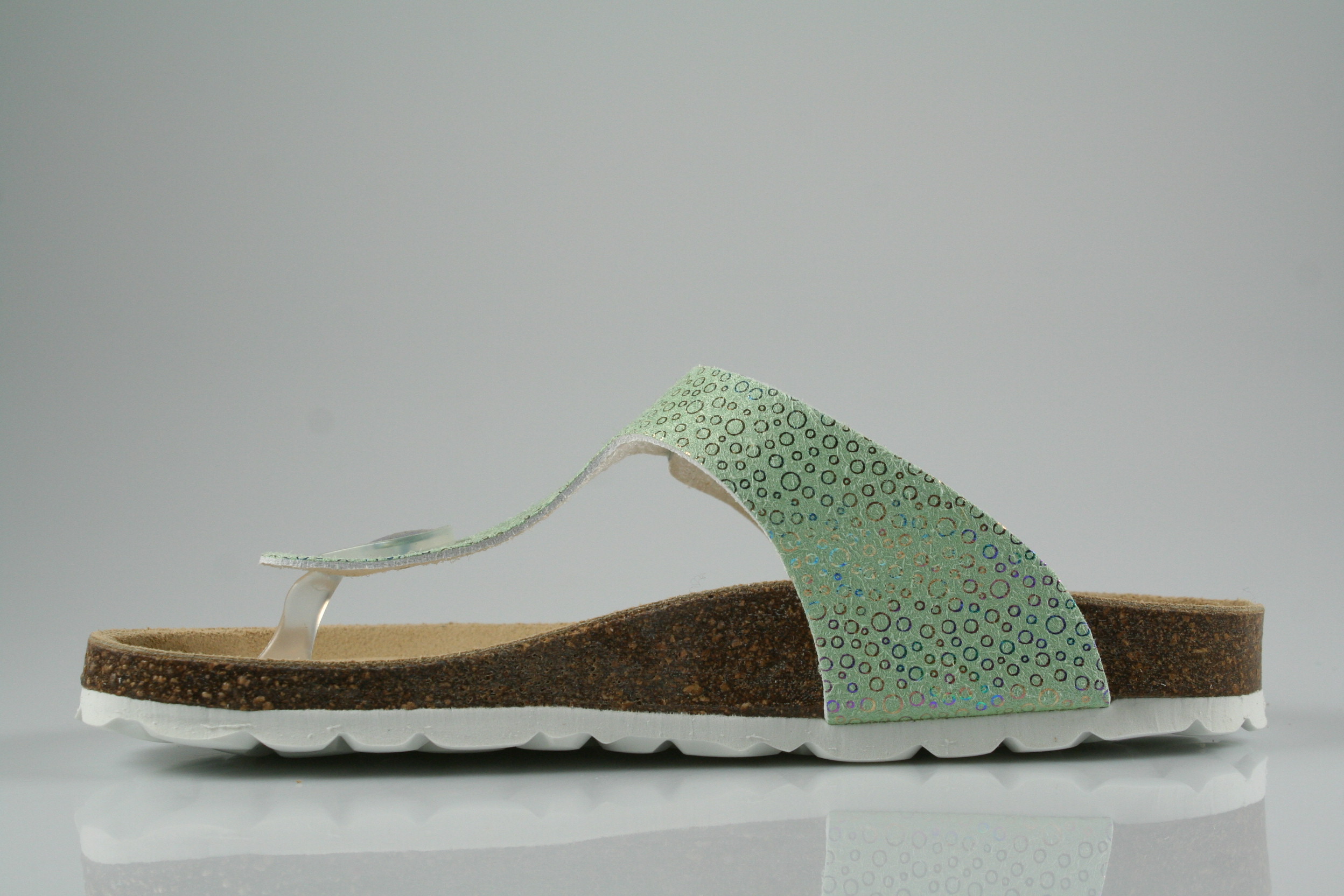 Typ: Pantolette; Farbe "mint"; Ausstattung:; - Obermaterial: Textil; - weiches Fußbett; - leichte Laufsohle; - Riemchen zur Weitenregulierung