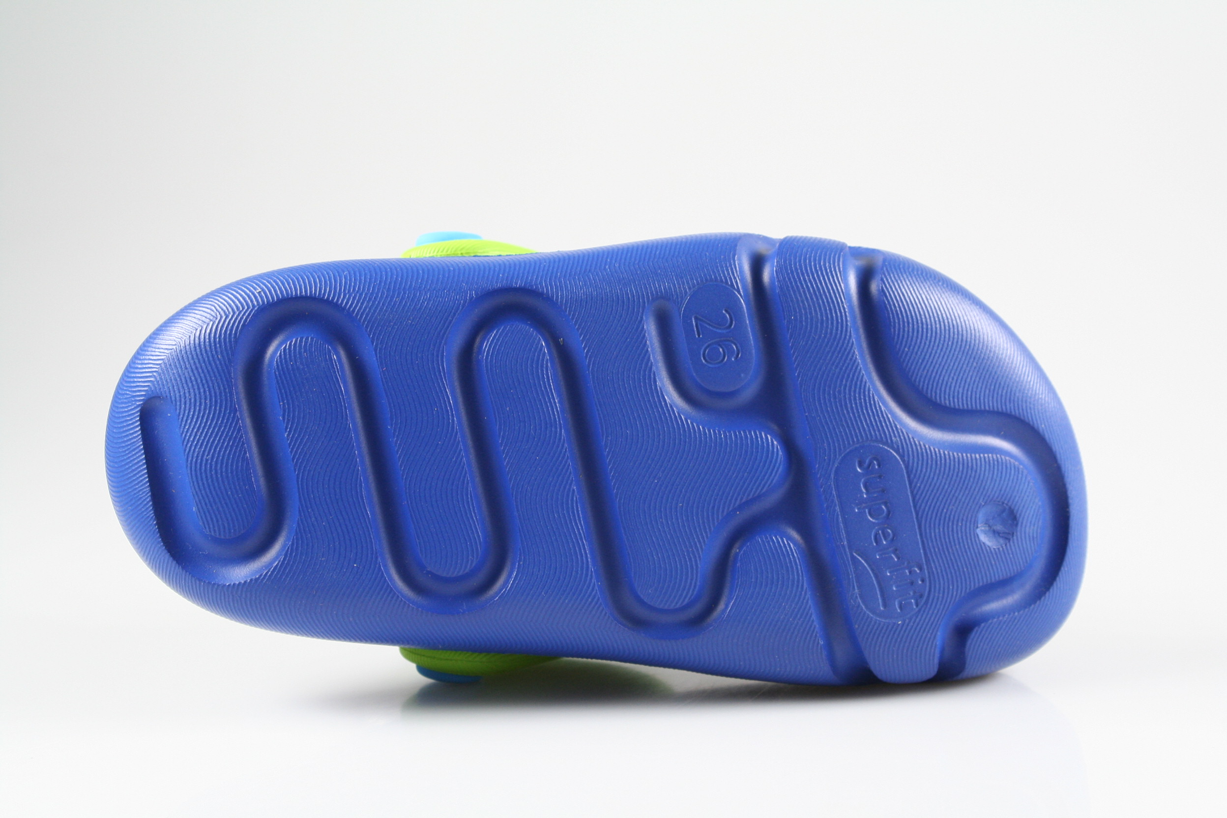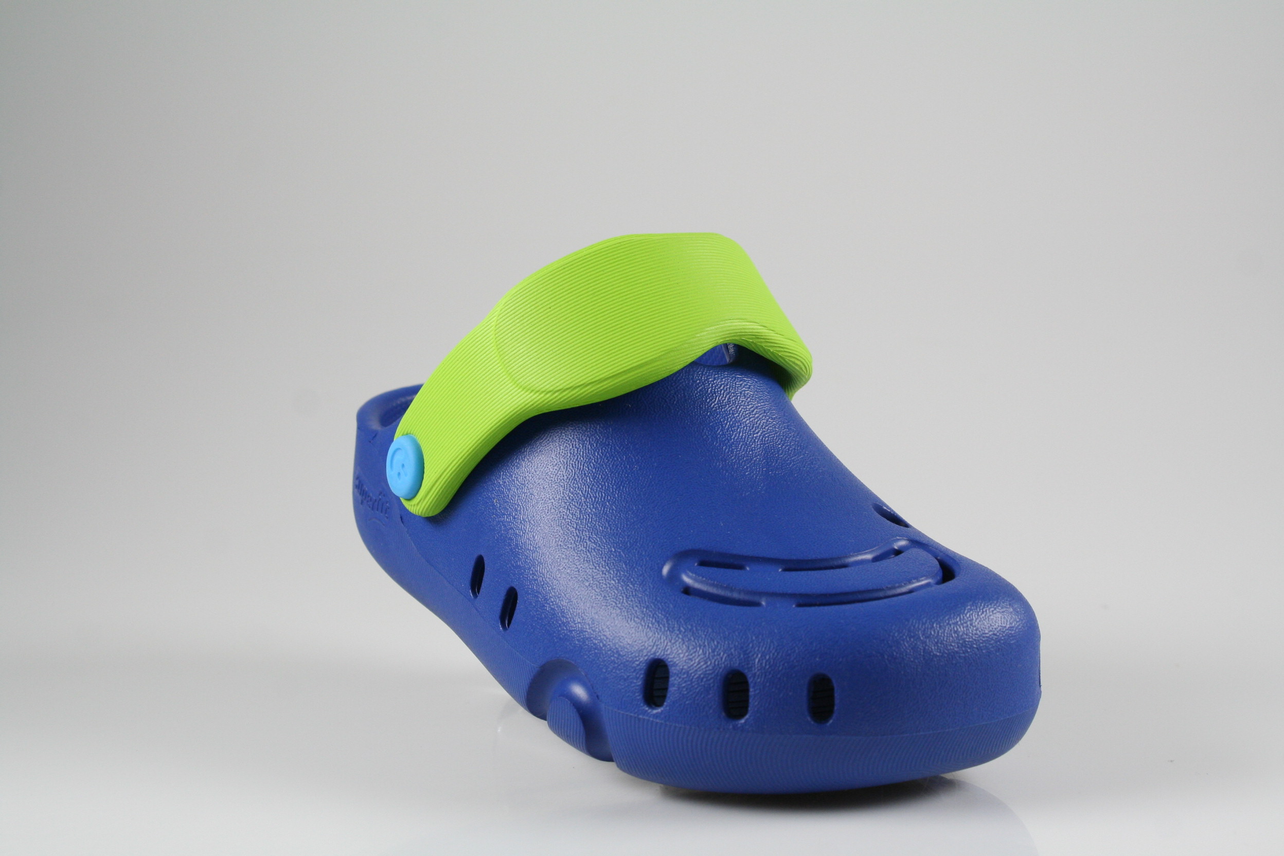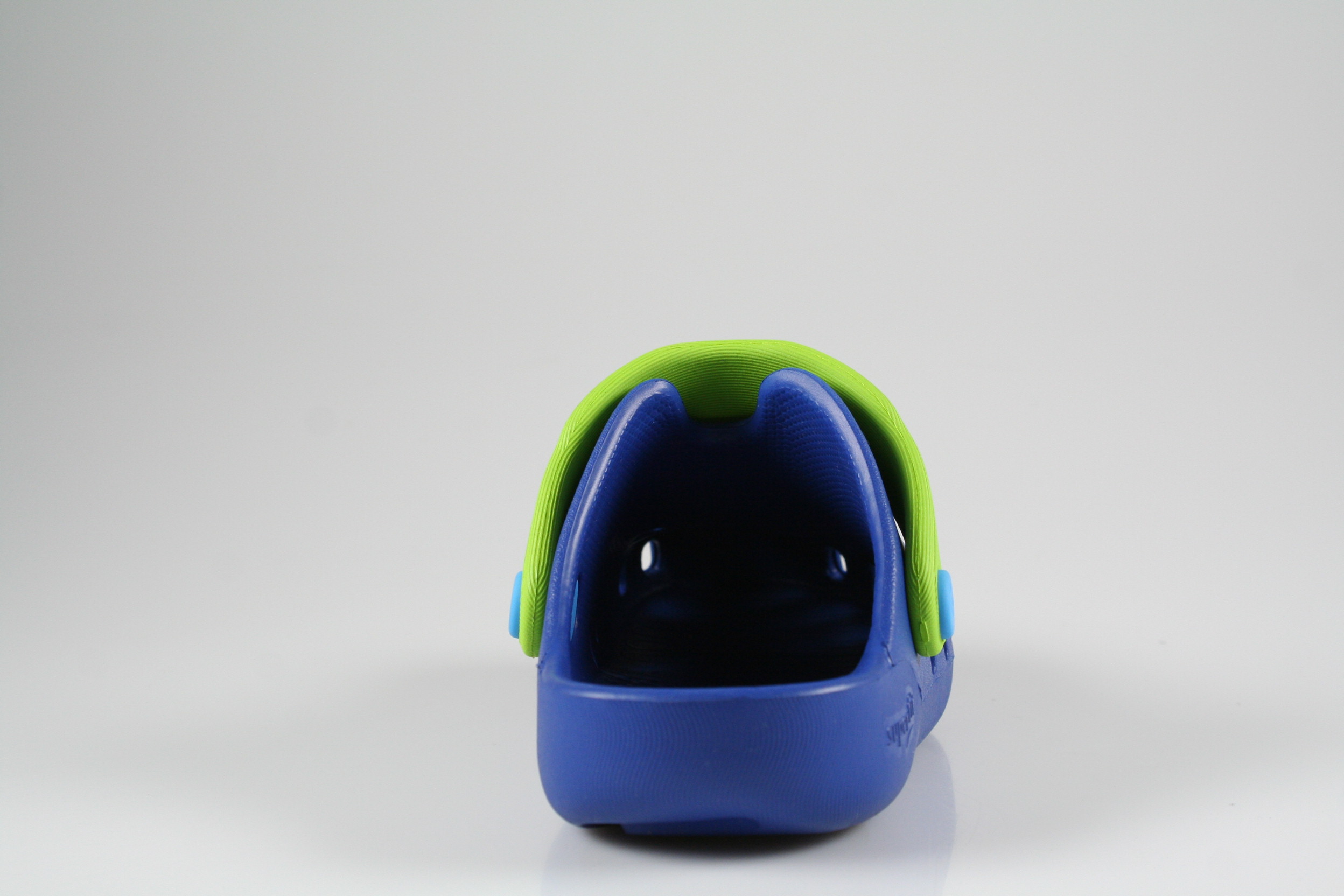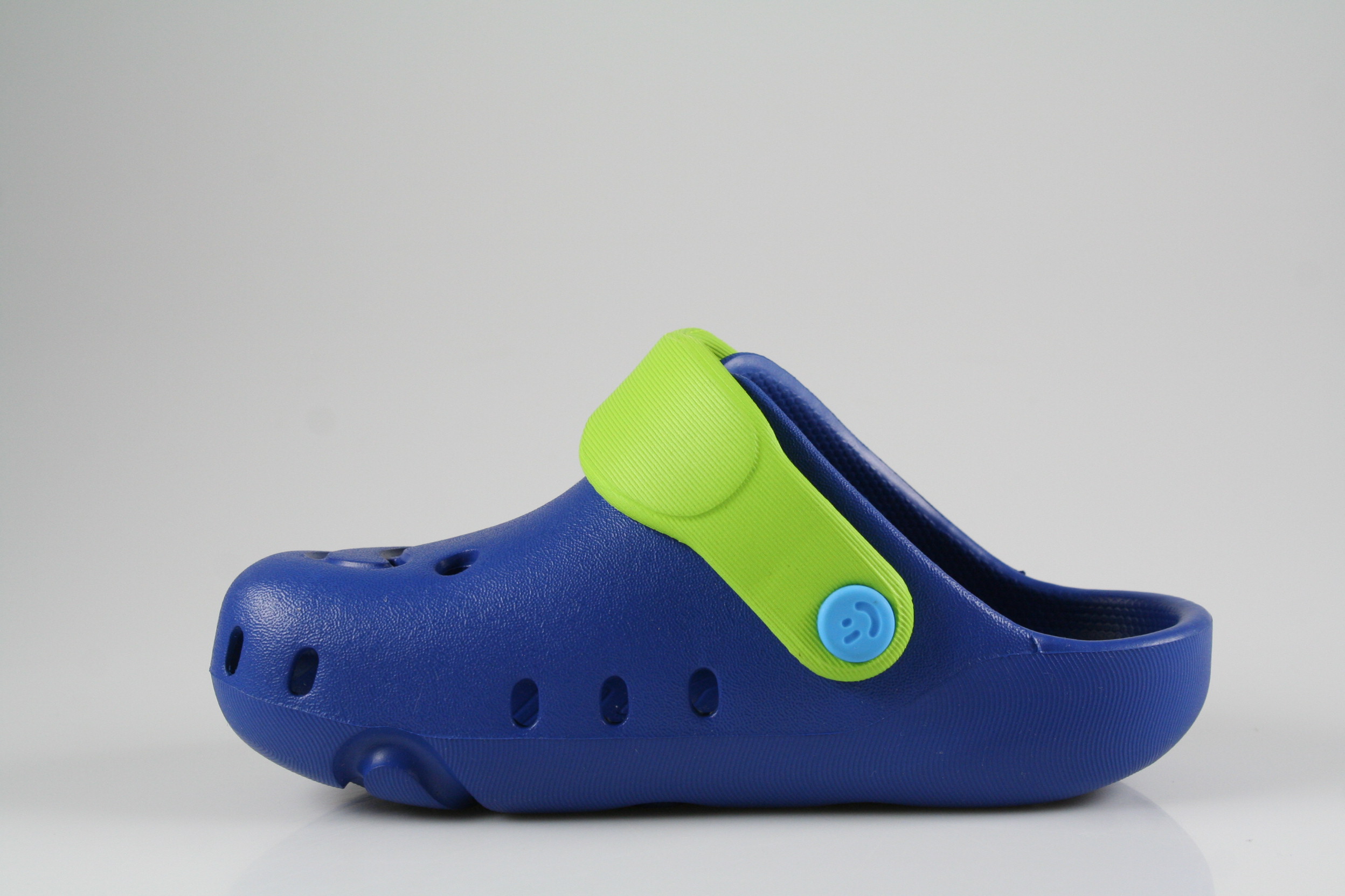 Typ: Hausschuh/Slipper; Farbe "blau/hellgrün"; Ausstattung:; - Obermaterial: EVA; - weiches Fußbett; - flexible Laufsohle; - bewegliches Fersenriemchen