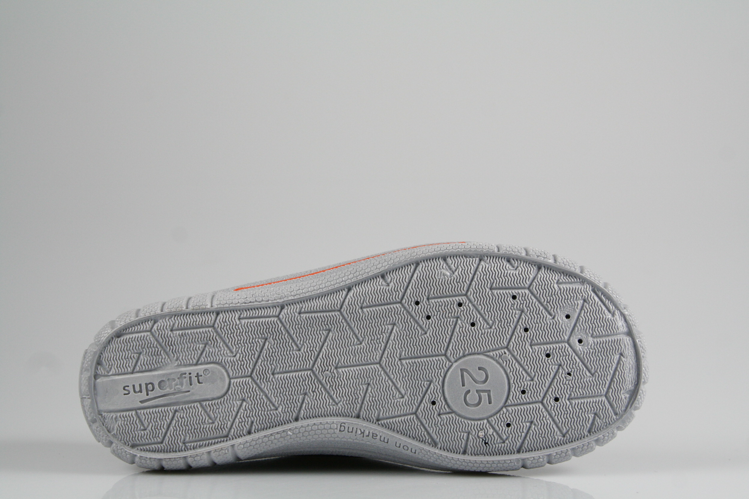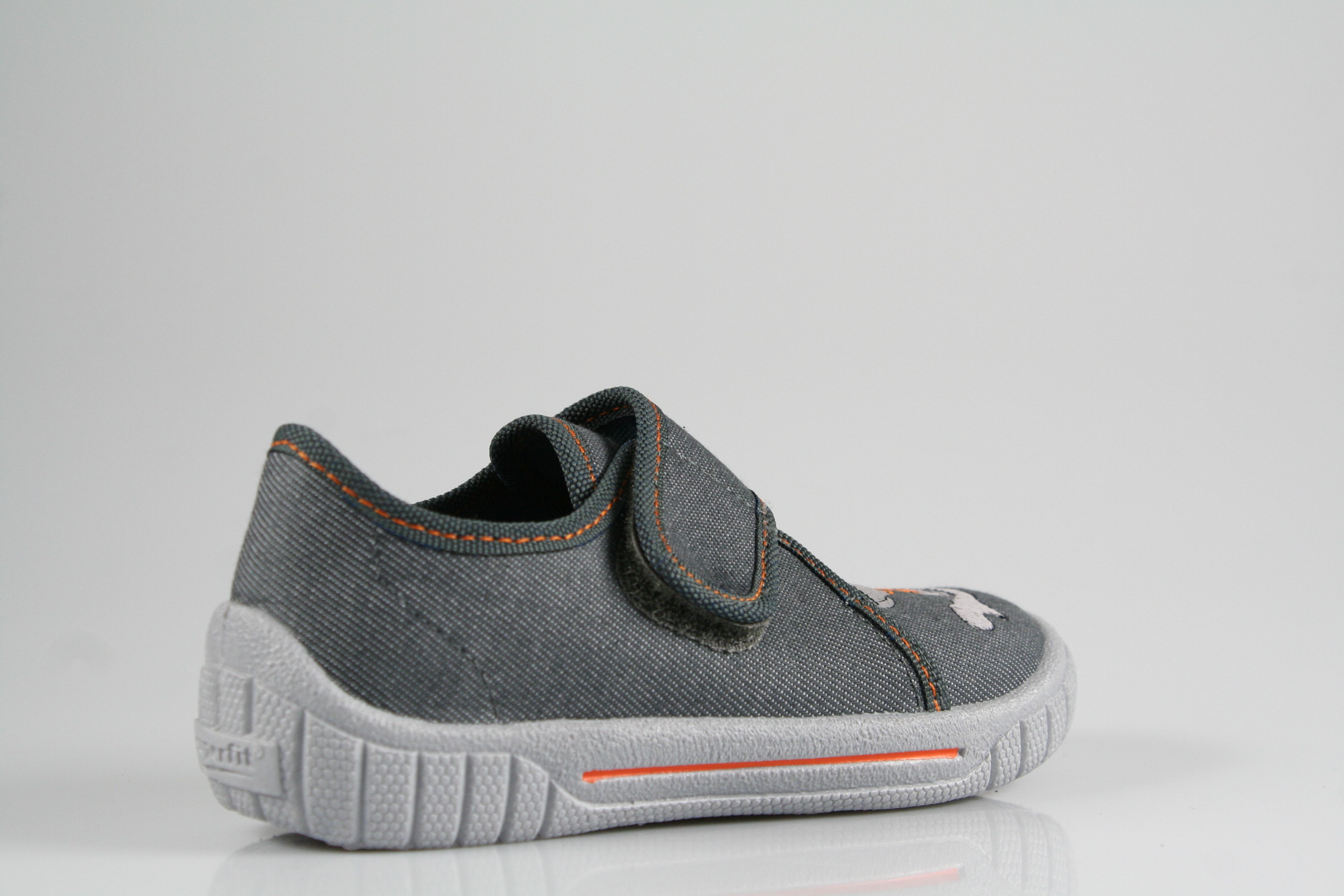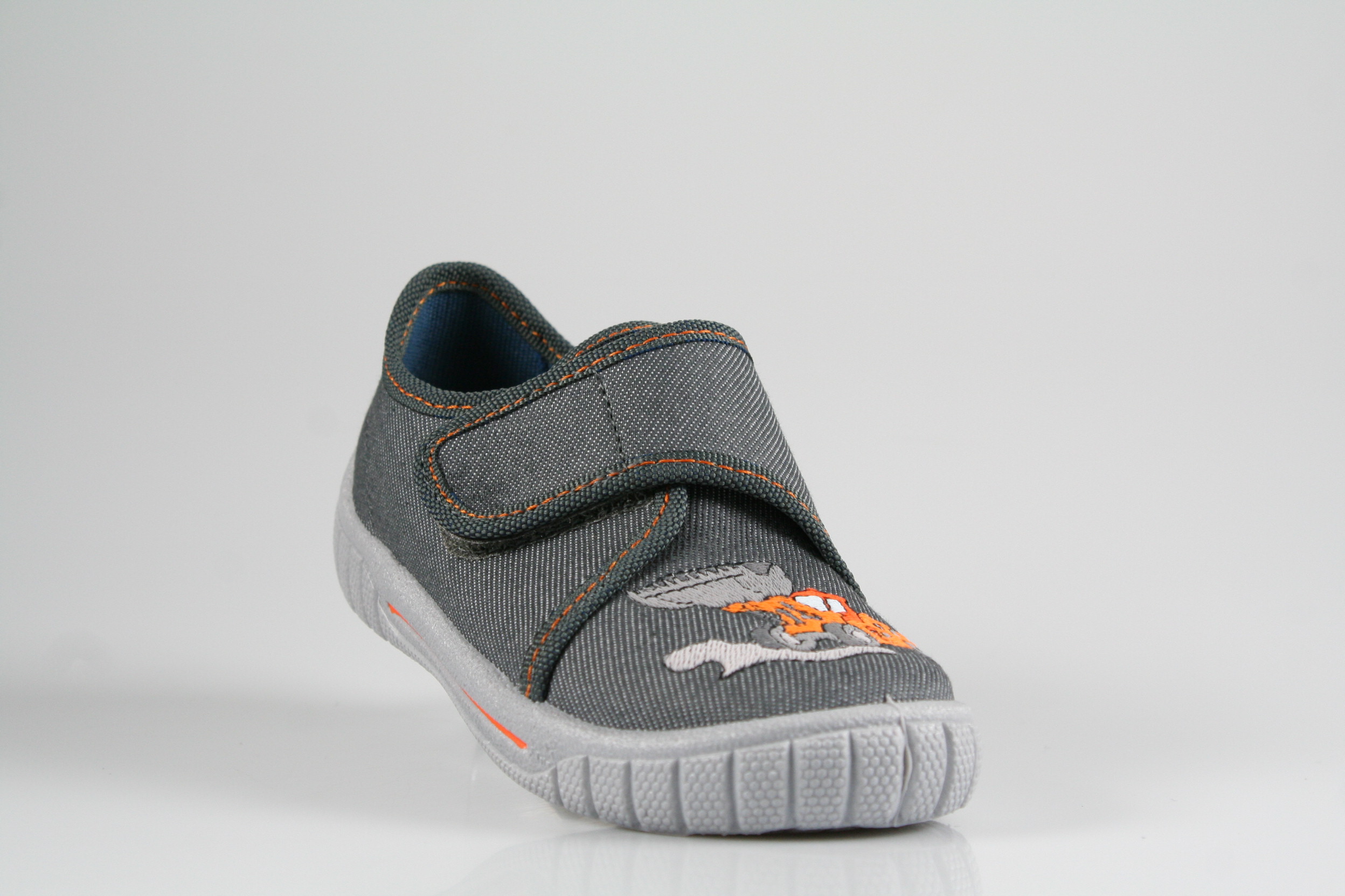 Typ: Hausschuh; Farbe "grau/orange"; Ausstattung:; - Obermaterial und Innenfutter: Baumwolle; - weiches Fußbett; - leichte, perforierte Laufsohle; - gepolsterter Schaftrand; - Klettverschluss zur Weitenregulierung;