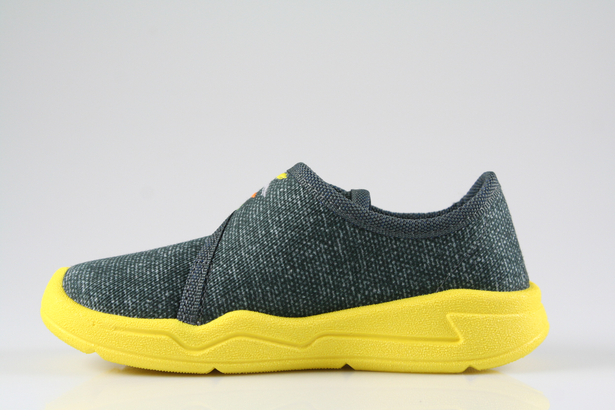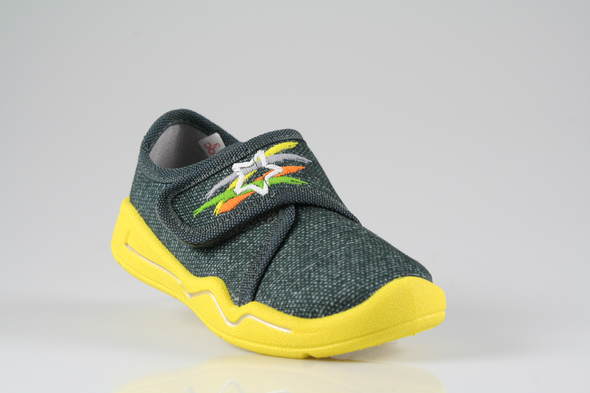 Typ: Hausschuh; Farbe: "grau"; Ausstattung:; - weiches Obermaterial; - Klettverschluss zur Weitenregulierung; - atmungsaktiv durch perforierte Laufsohle; - Modell "Benny"