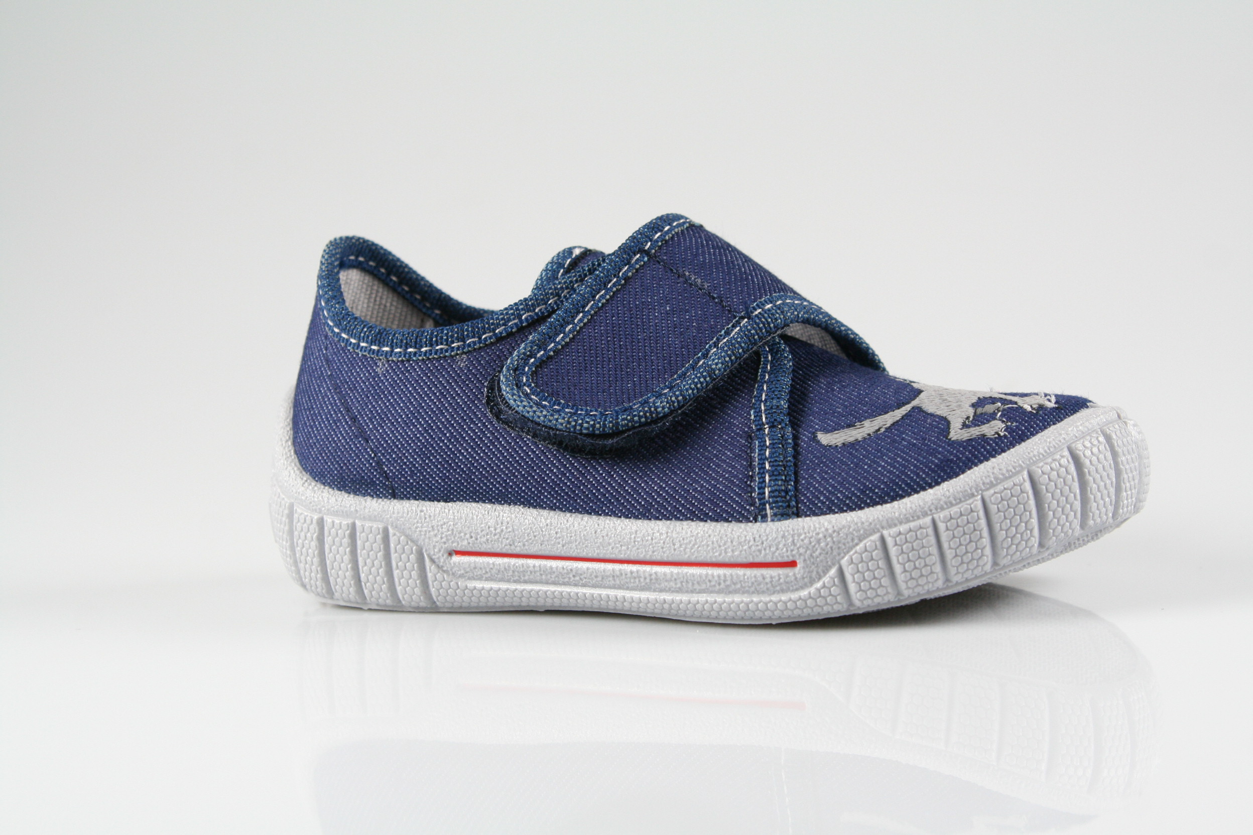 Typ: Hausschuh; Farbe: blau; Ausstattung:; - weiches Obermaterial; - Futter: 100% Baumwolle; - leichte und flexible Sohle; - atmungsaktiv durch Löcher in der Laufsohle; - Klettverschluss zur Weitenregulierung; - Modell "BILL"
