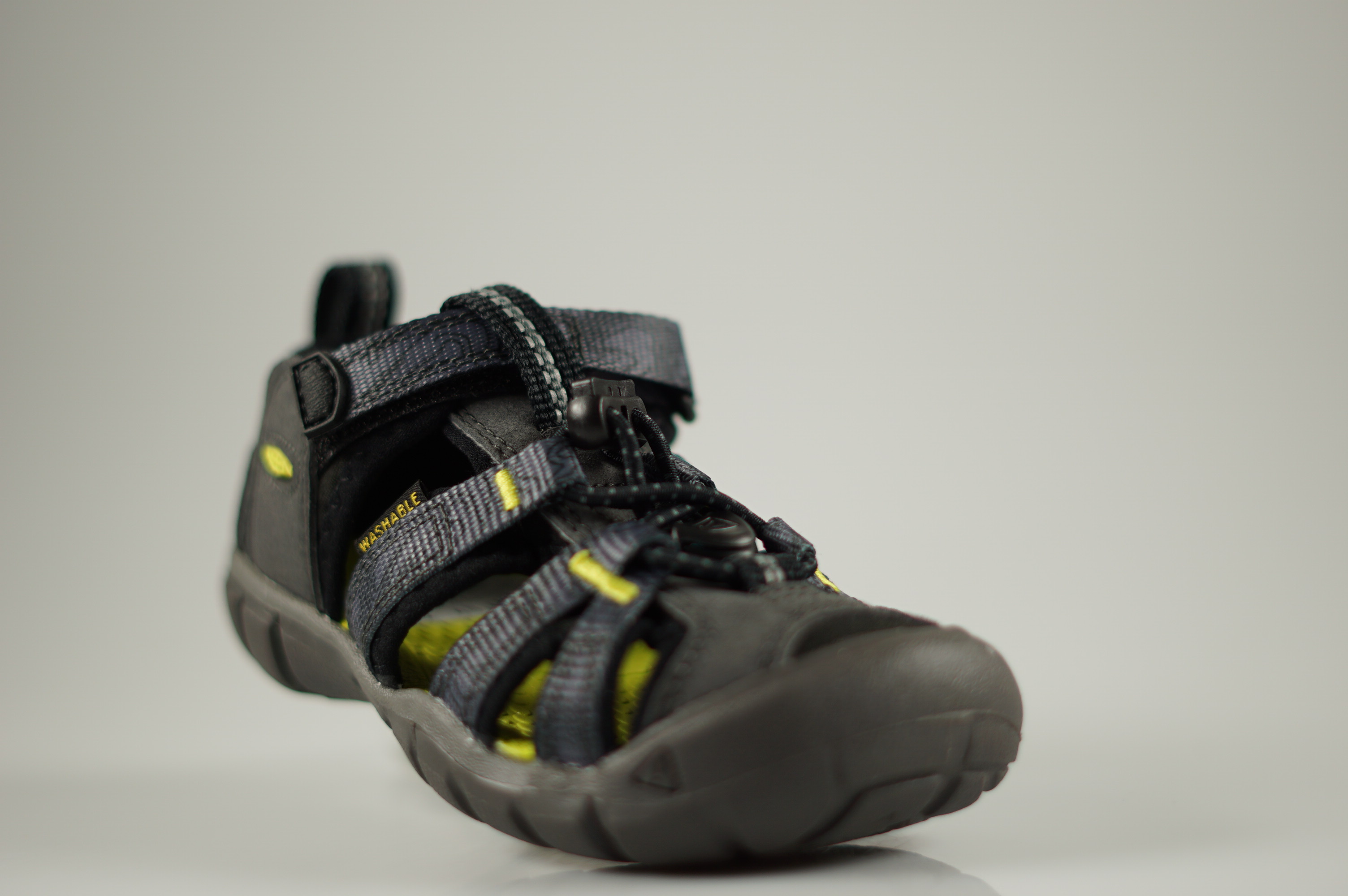 - robuste Laufsohle mit gummierter Vorderkappe