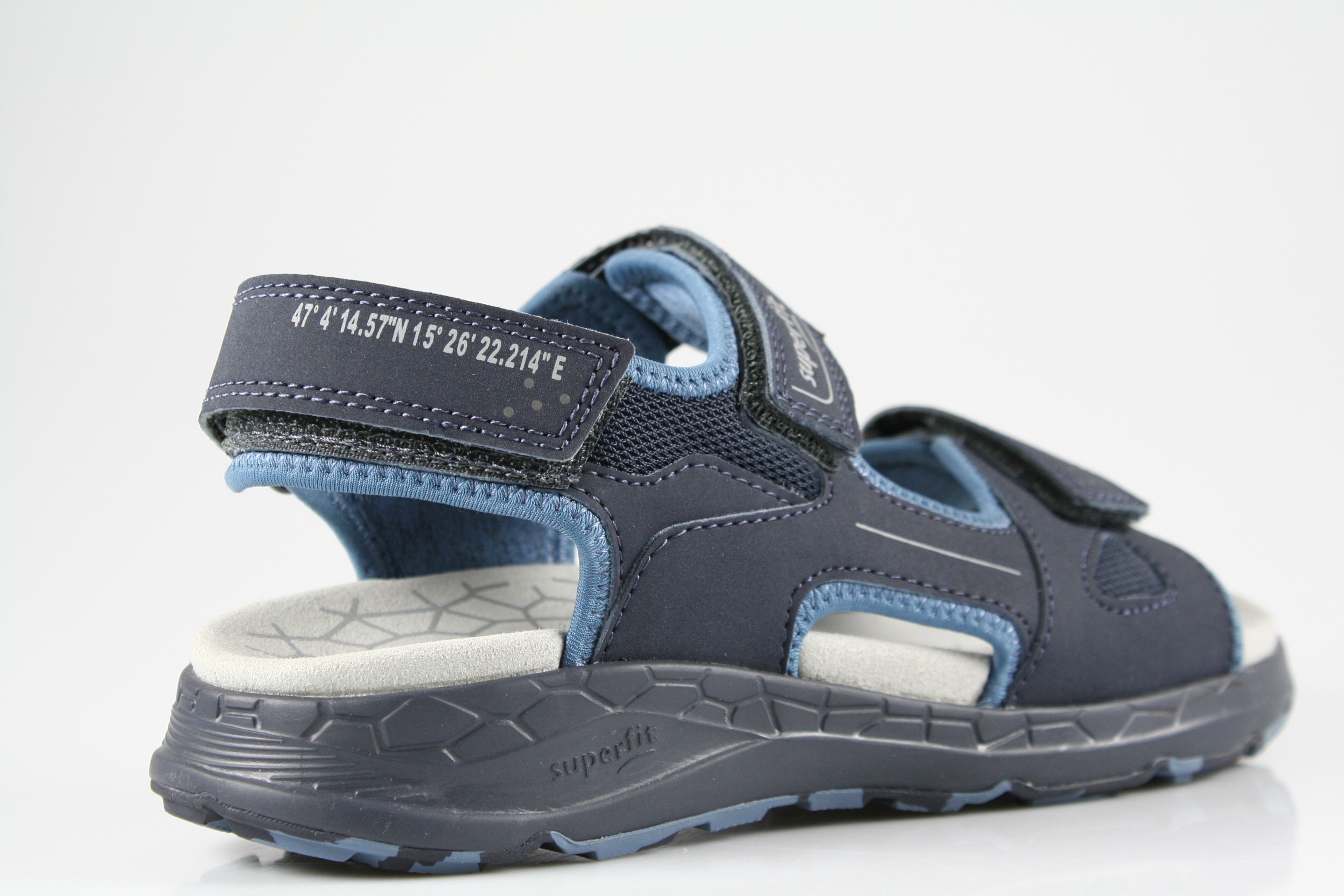 Typ: Sandale; Farbe "blau/hellgrau"; Ausstattung:; - Obermaterial: Synthetik; - weiche Decksohle; - flexible Laufsohle; - gepolsterter Schaftrand; - Klettverschluss zur Weitenregulierung
