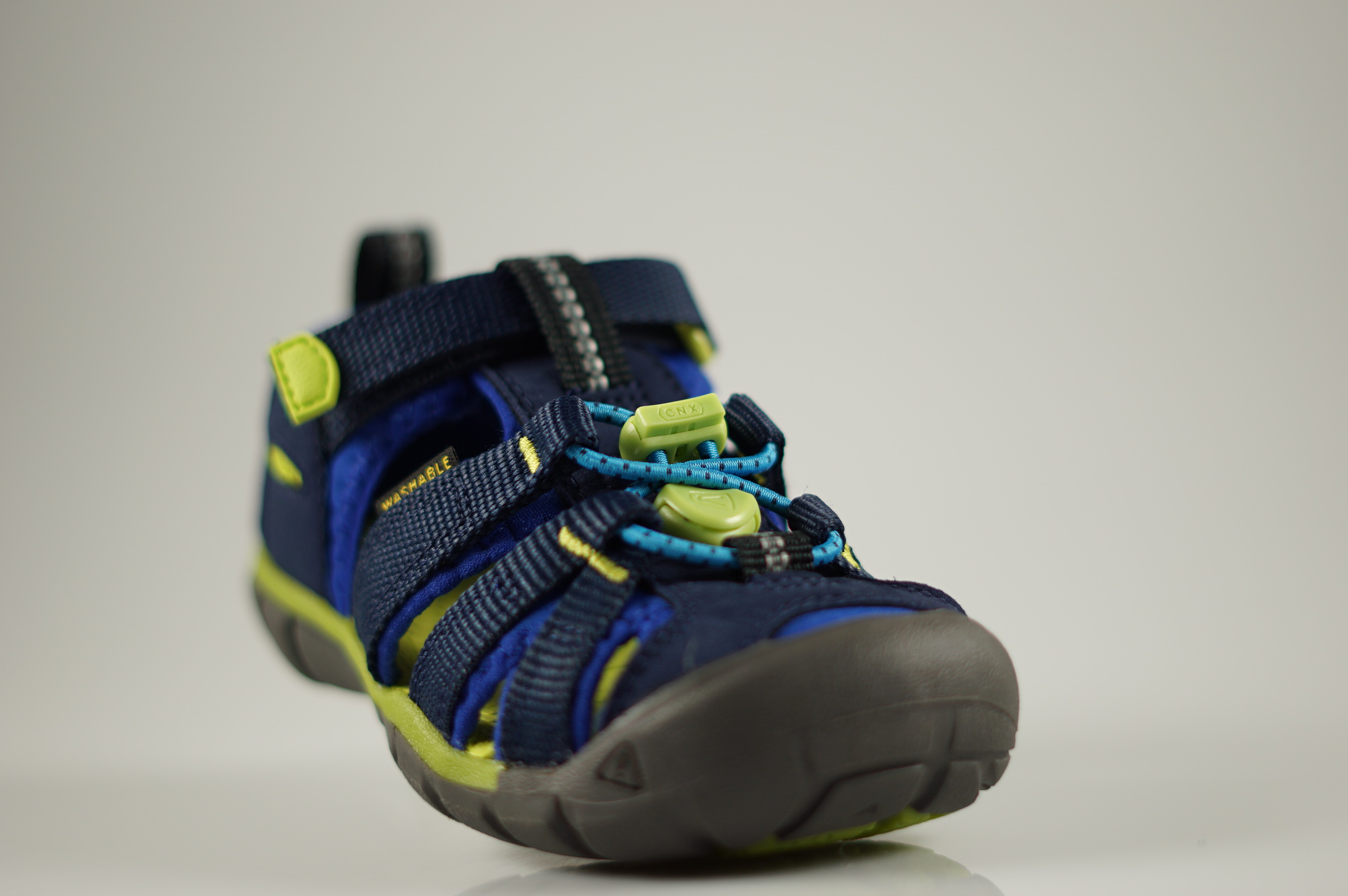 - robuste Laufsohle mit gummierter Vorderkappe
