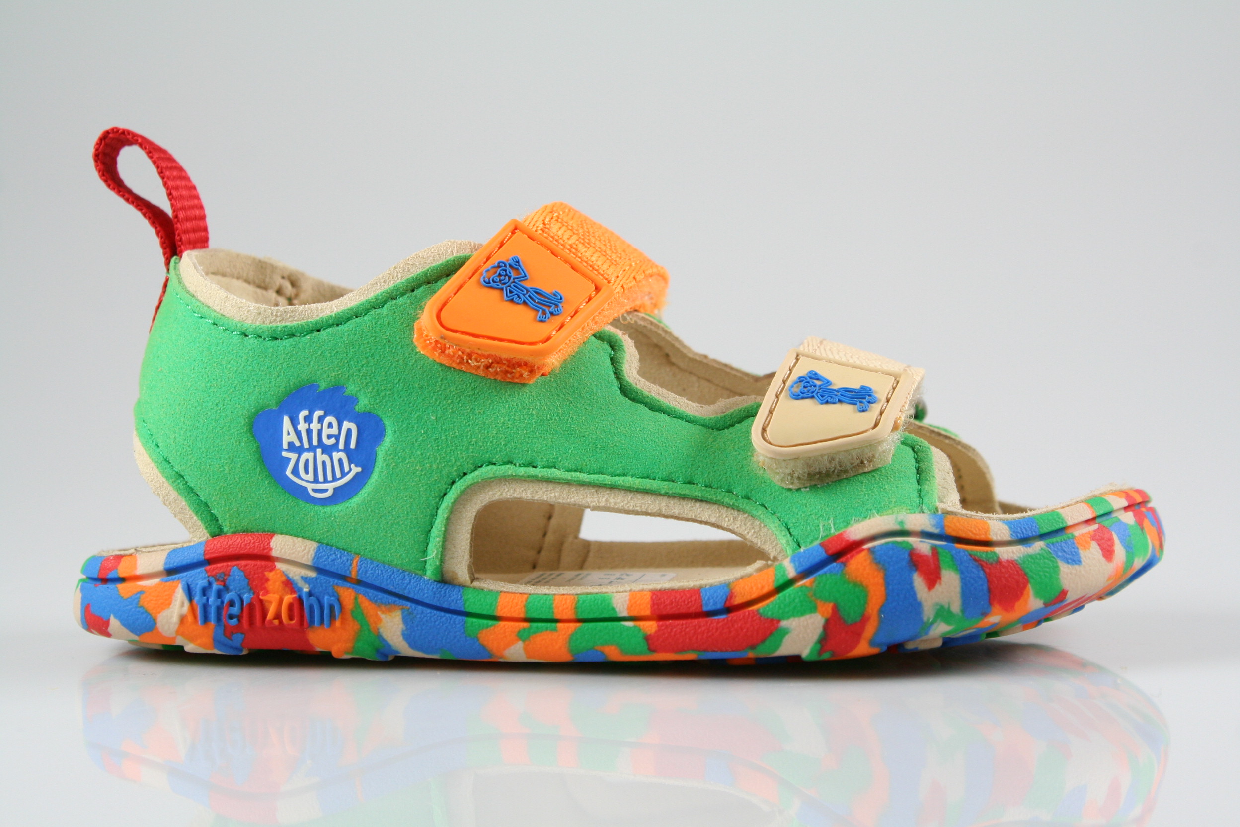 Typ: Sandale, Barfußschuh; Farbe: grün/bunt; Ausstattung:; - Obermaterial: Mix; - Funktionsfutter; - Doppelklette; - leichte Laufsohle; - "Vegan Airy Affenzahn 10 Jahre"