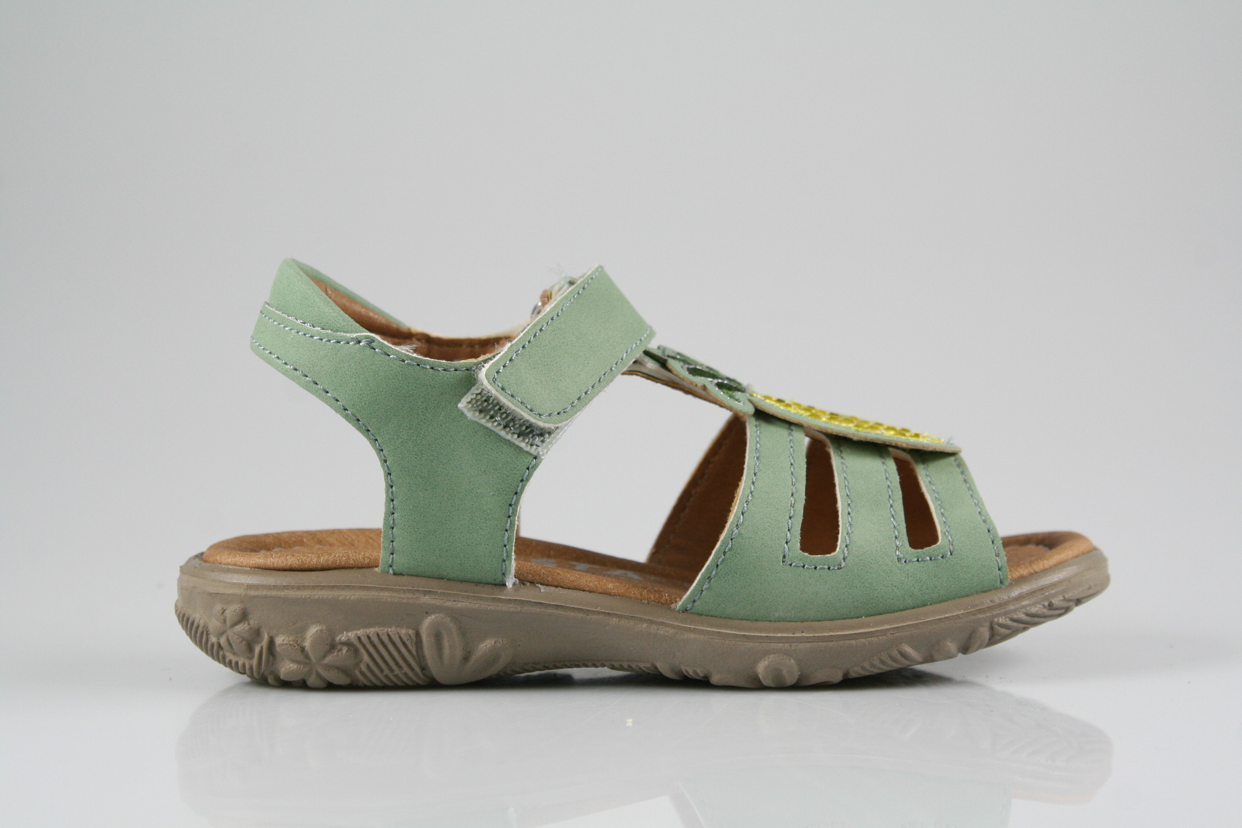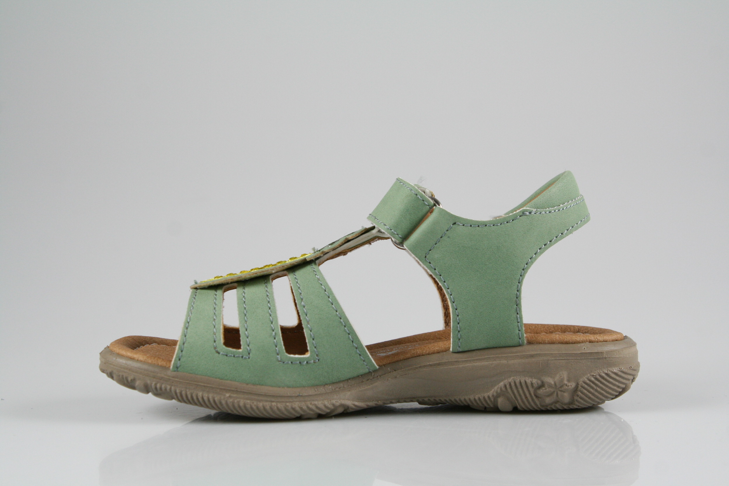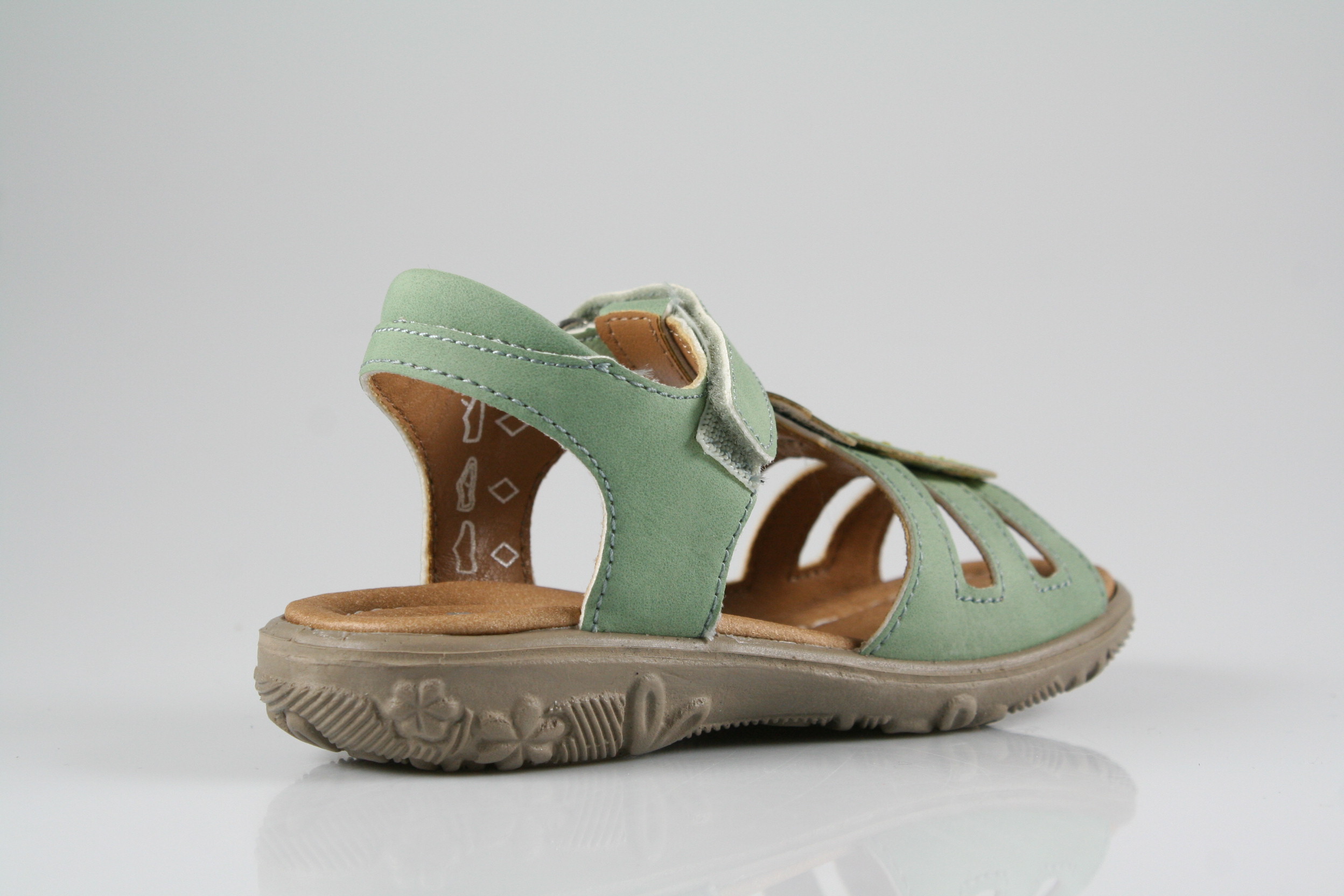 Typ: Sandale; Farbe: "eukalyptus"; Ausstattung:; - Obermaterial: Kantara; - Microfaserfutter; - gepolstertes Fußbett; - flexible Gummilaufsohle; - Riemchen mit Klettverschluss; - Modell "CLARISSA"; - Weite "M";