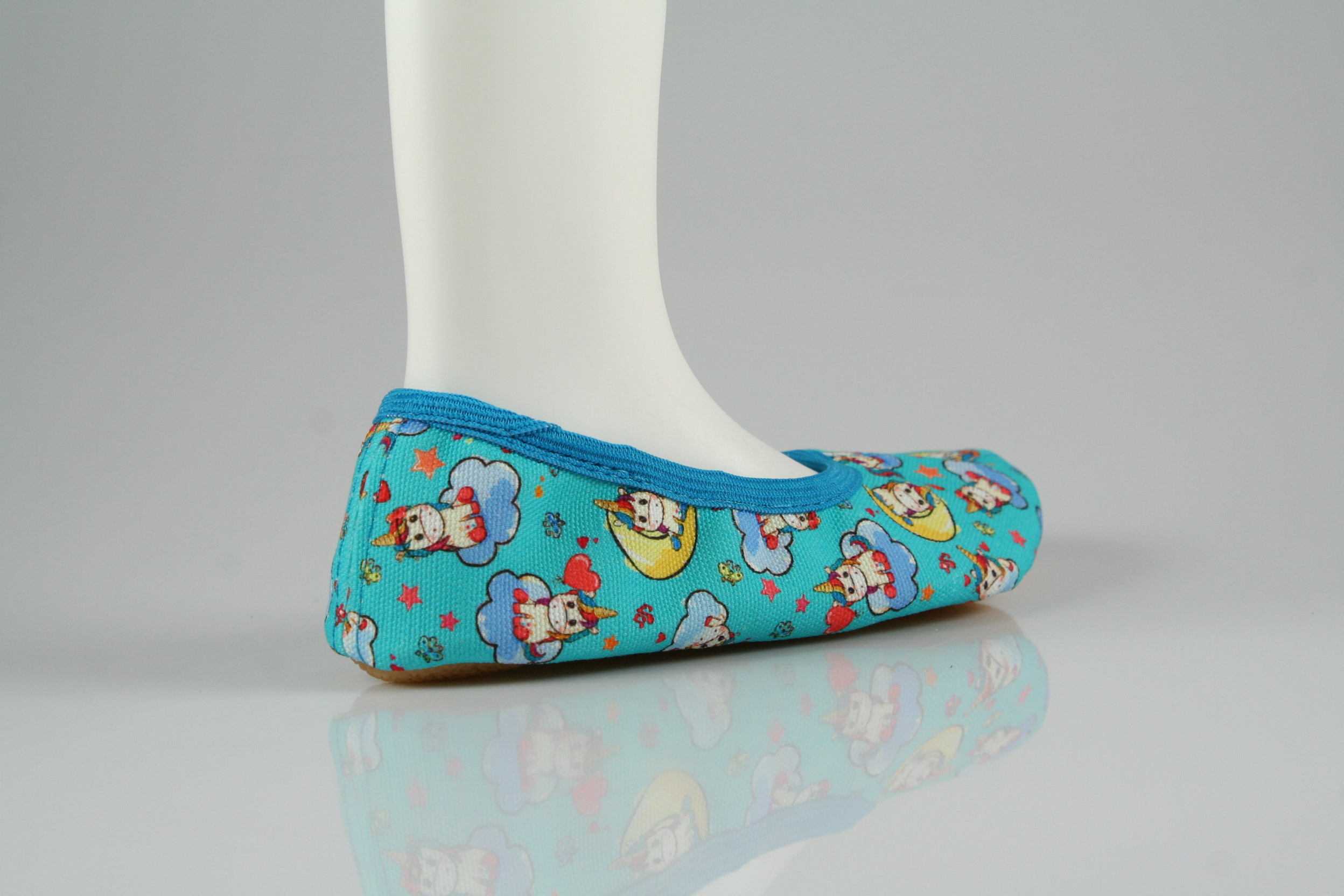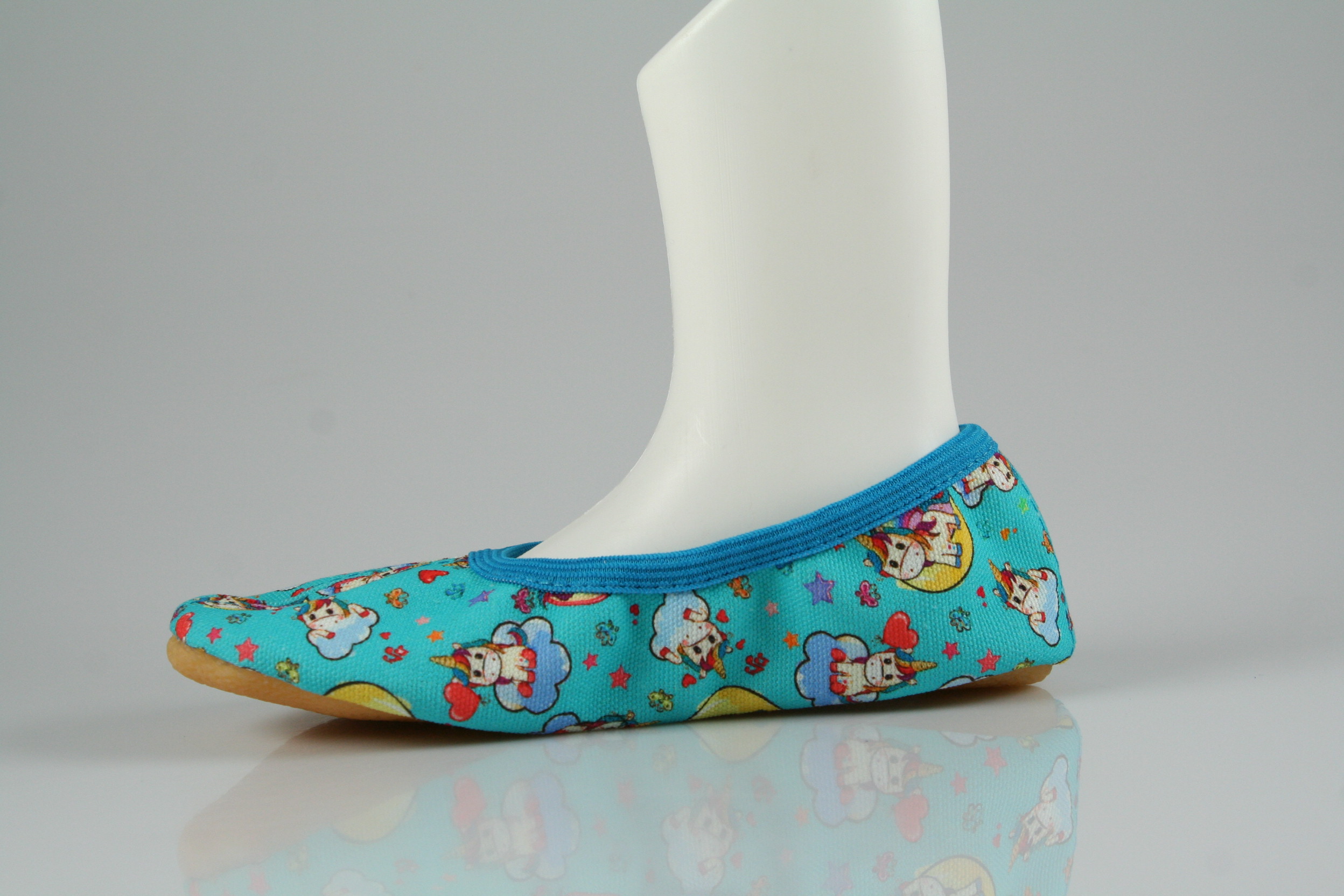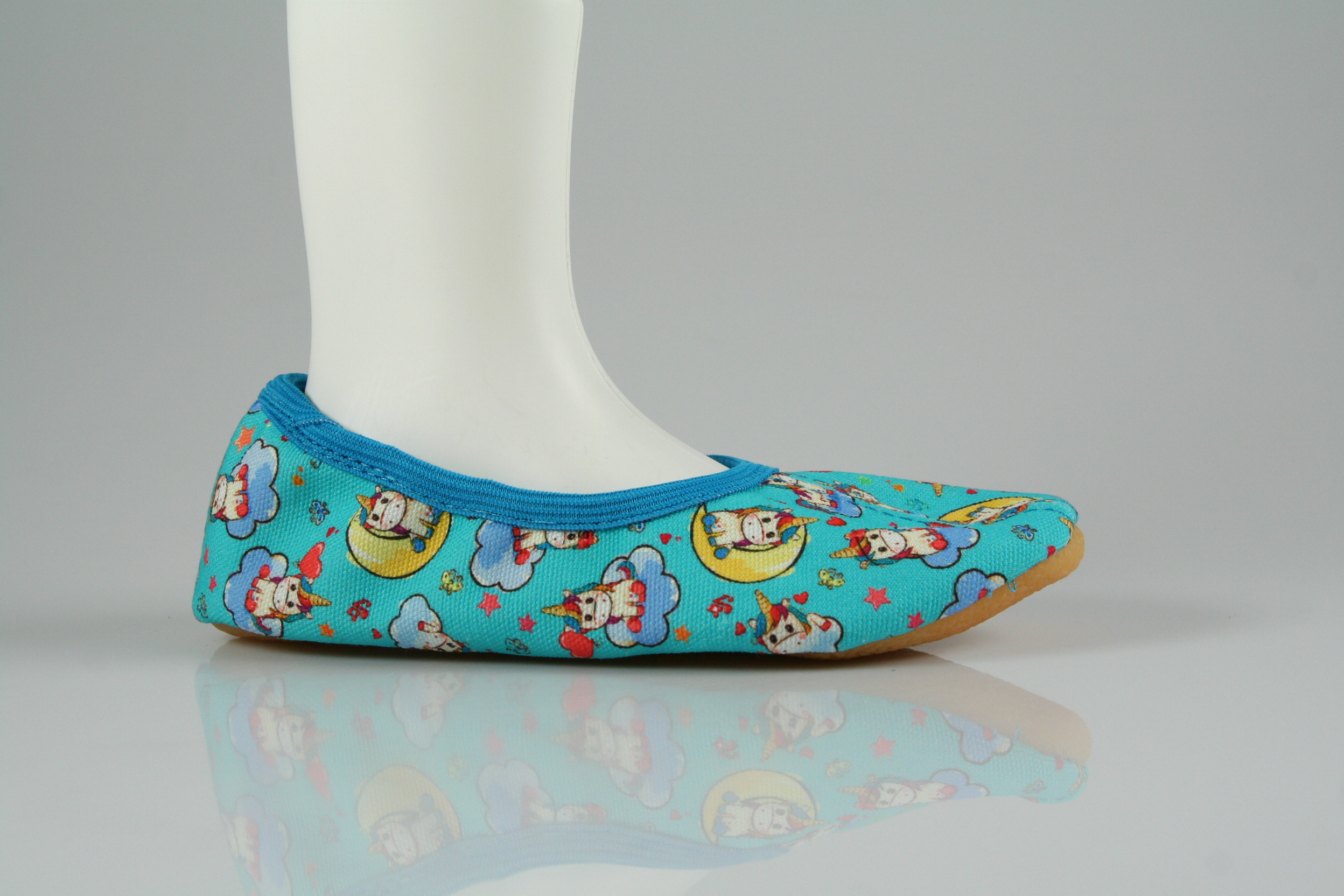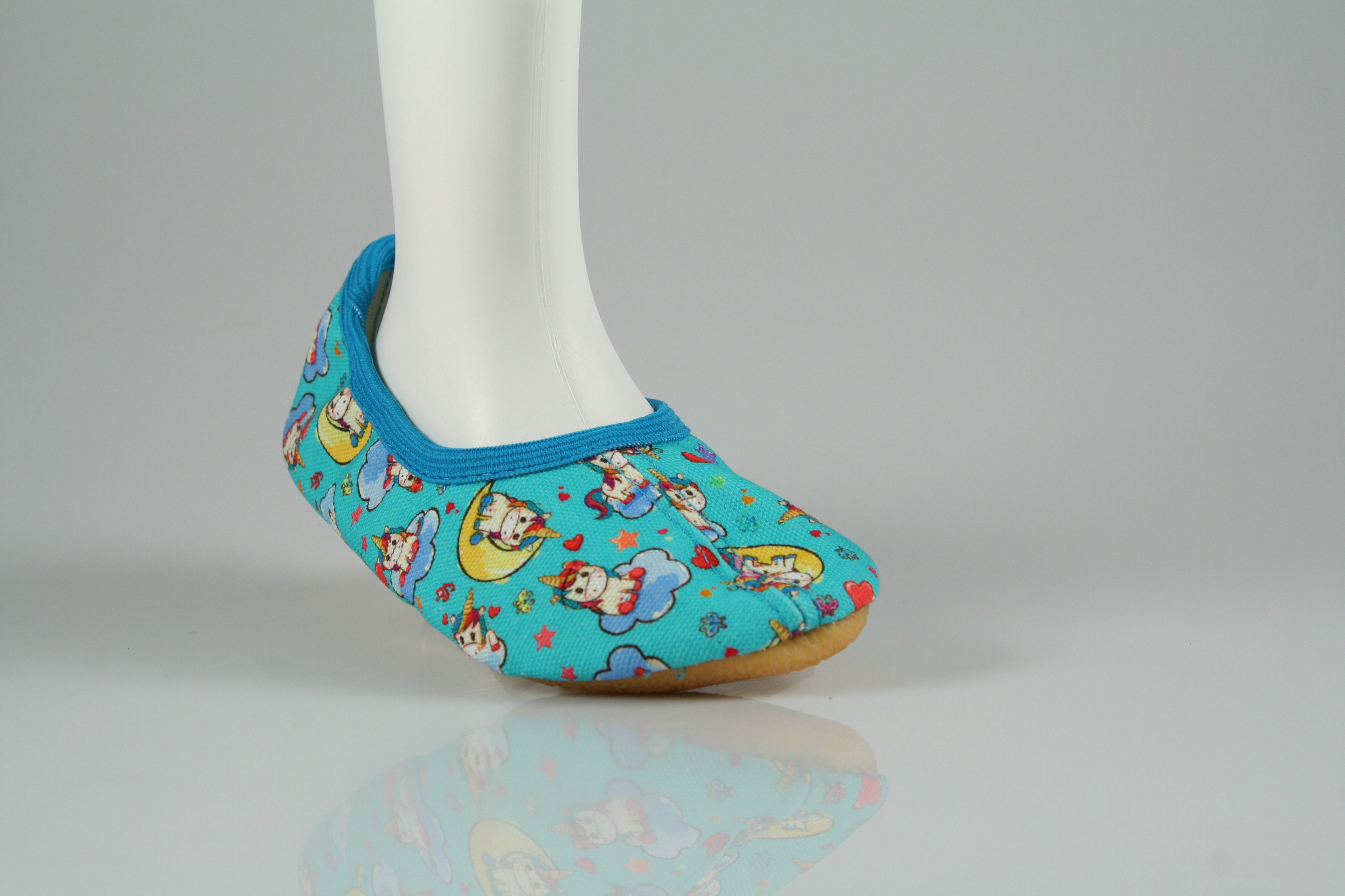 Typ: Turnschläppchen; Farbe "Dreamworld türkis"; Ausstattung:; - Obermaterial: Baumwolle; - weiche Decksohle; - rutschfeste Gummilaufsohle; - dehnbarer Einschlupf