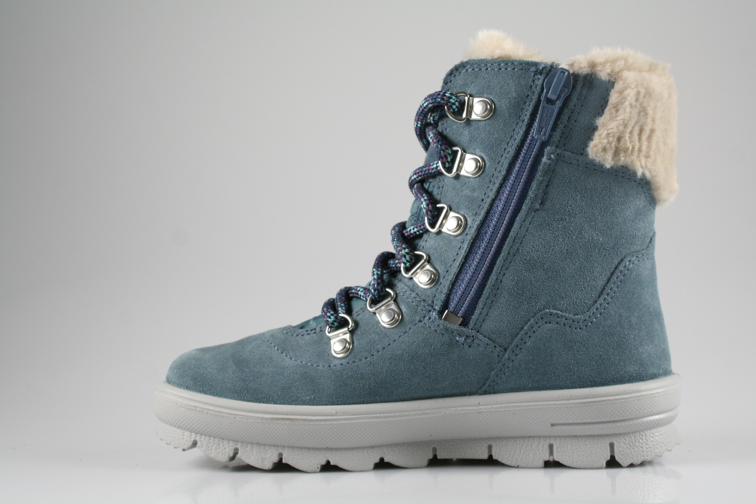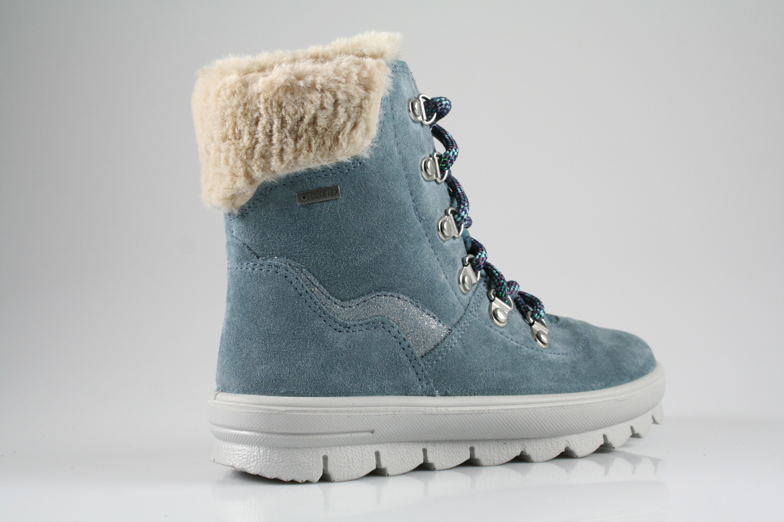 Typ: Boots; Farbe: blau; Ausstattung:; - Obermaterial: Velour/Effektleder, kombiniert; - Warmfutter; - herausnehmbares Fußbett; - superleichte Laufsohle; - gepolsterter Schaftrand; - Schnürung und Reißverschluss; - wasserfest durch "GoreTex"-Membrane; - Weite "M"