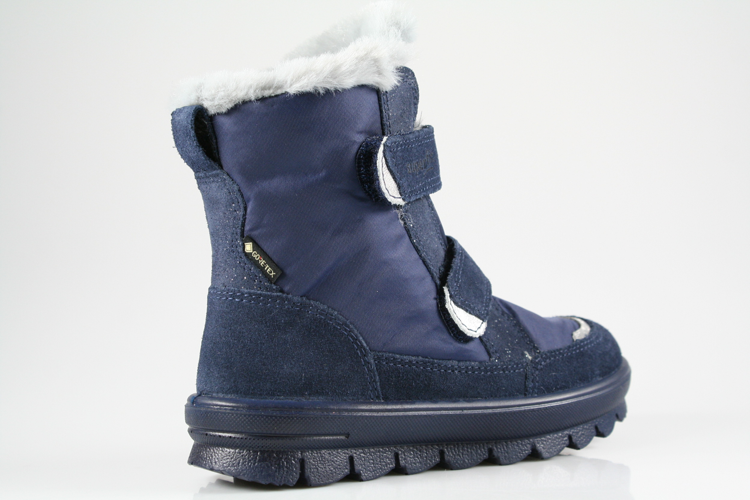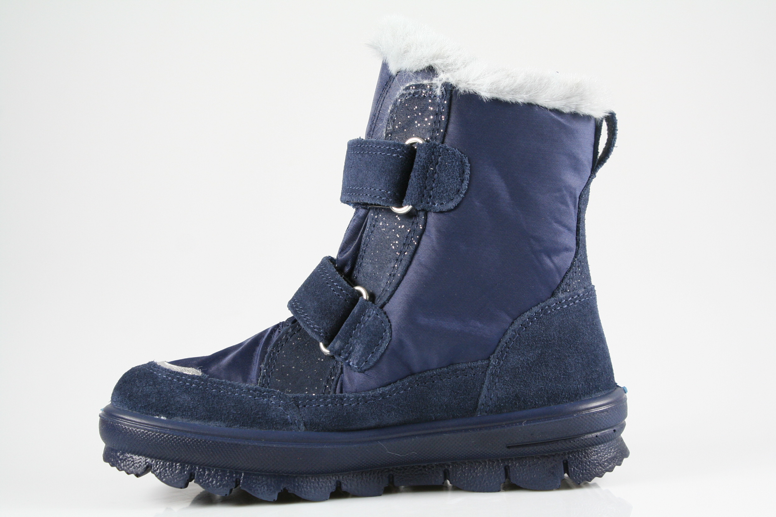 Typ: Boots; Farbe: blau/silber; Ausstattung:; - Obermaterial: Velour/Effektleder/HighTech; - Warmfutter; - herausnehmbares Fußbett; - superleichte Laufsohle; - gepolsterter Schaftrand; - Doppeklette zur Weitenregulierung; - wasserfest durch "GoreTex"-Membrane; - Weite "M"