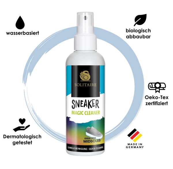 Der Solitaire Magic Cleaner ist wasserbasiert, frei von Lösungsmitteln und zu 98% biologisch abbaubar. Er ist pH-hautneutral, dermatologisch getestet und Made in Germany.;
