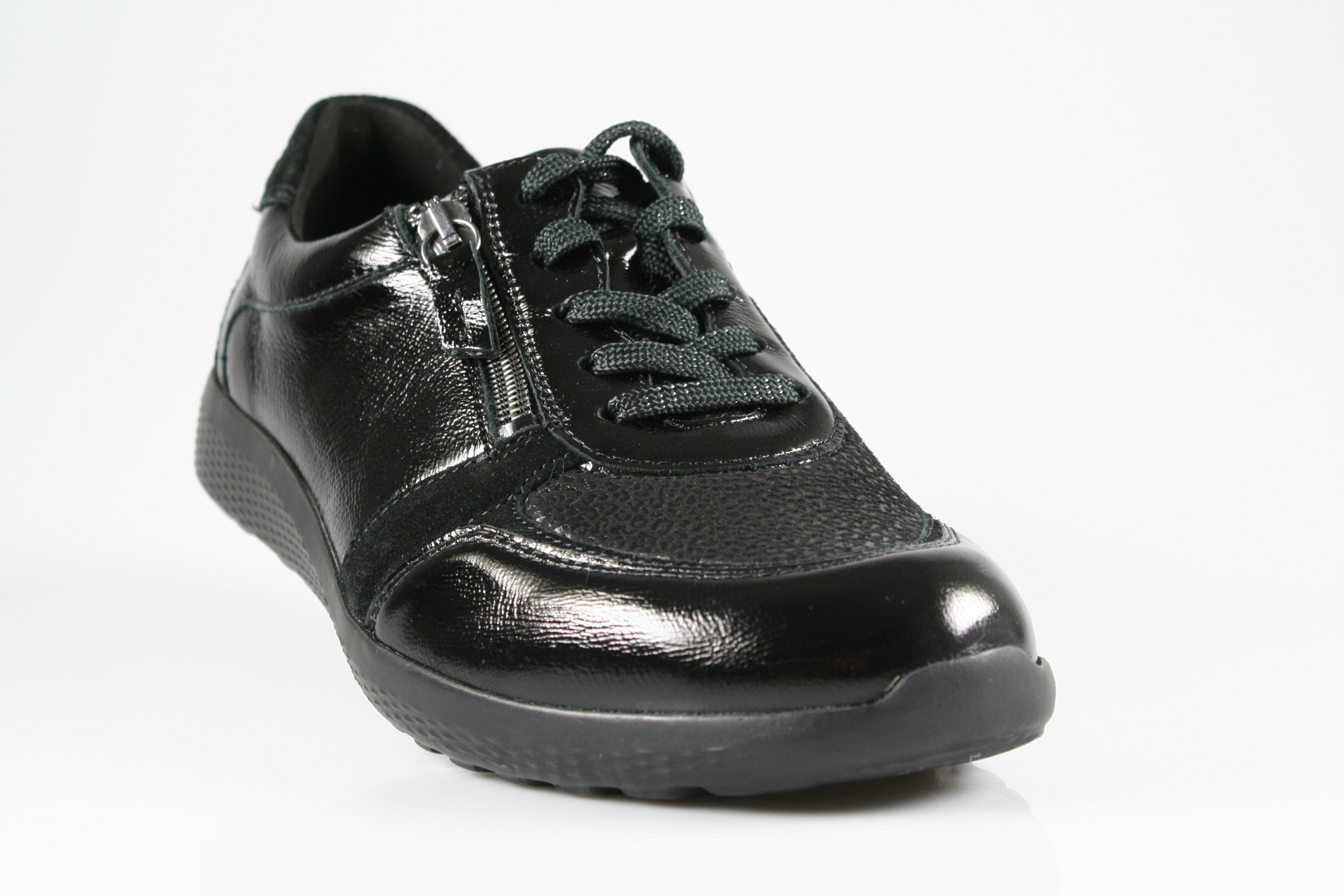 - Schnürsenkel und Reißverschluss zur Weitenregulierung